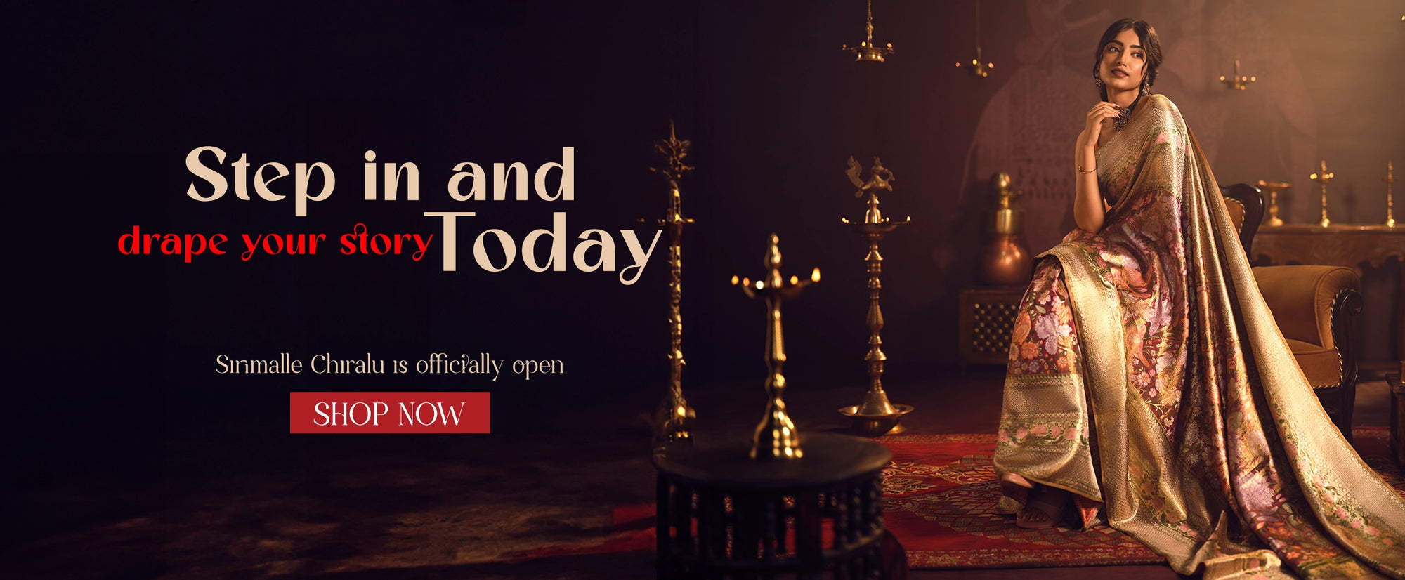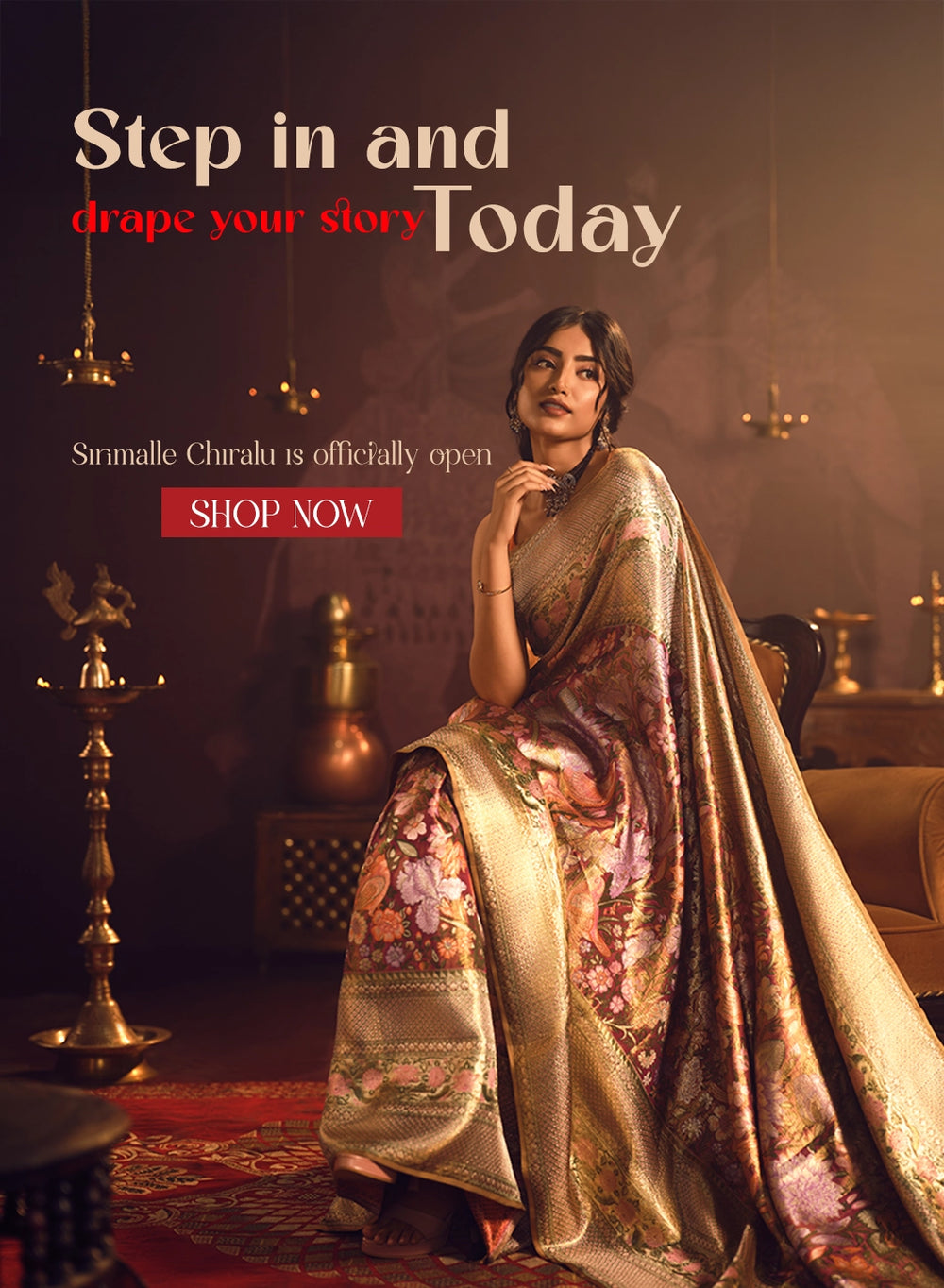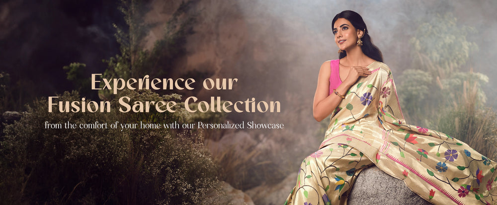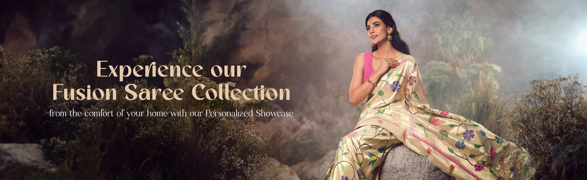 Kota Silk Saree with Floral Print and Knot Work-Beige