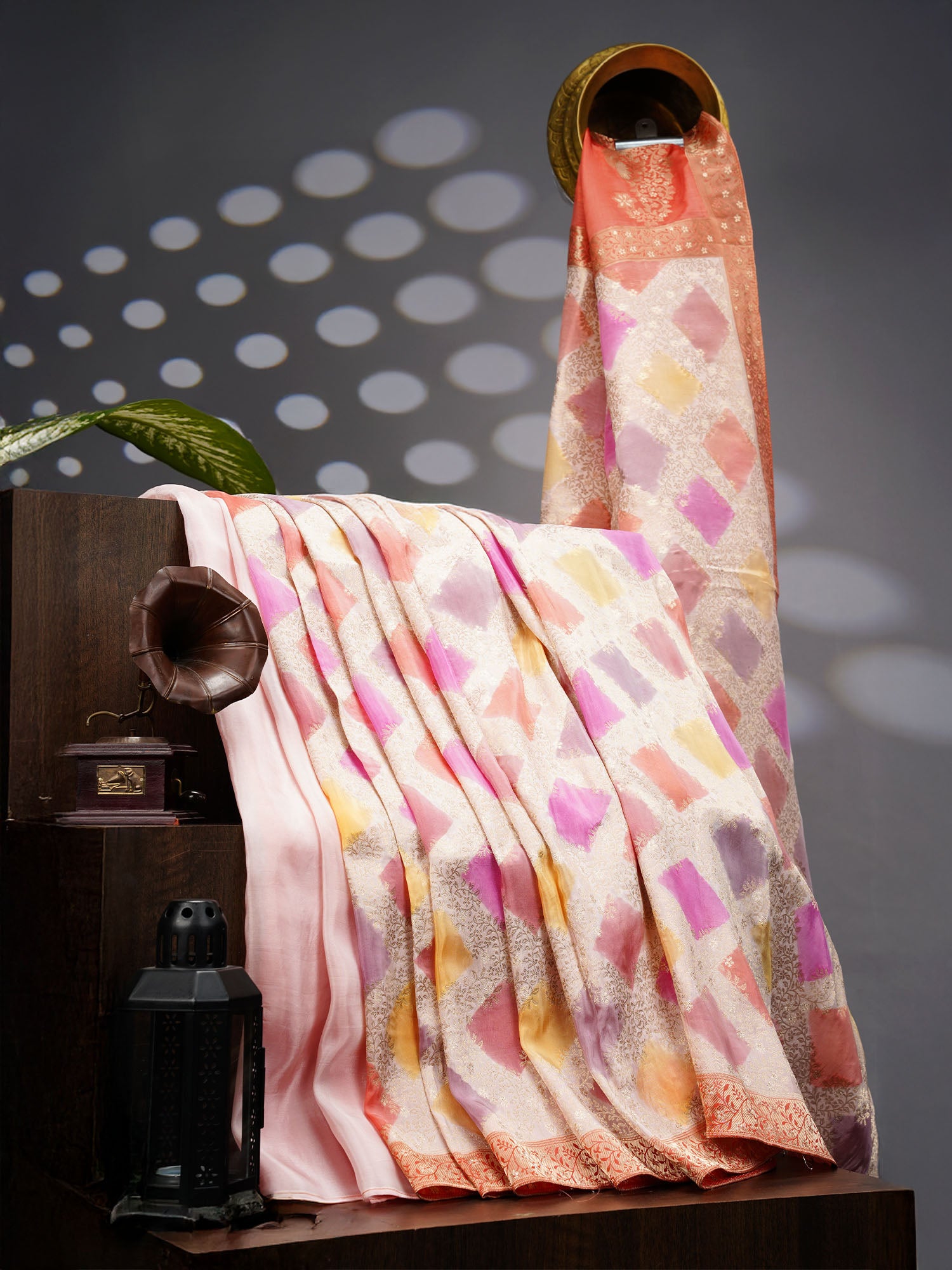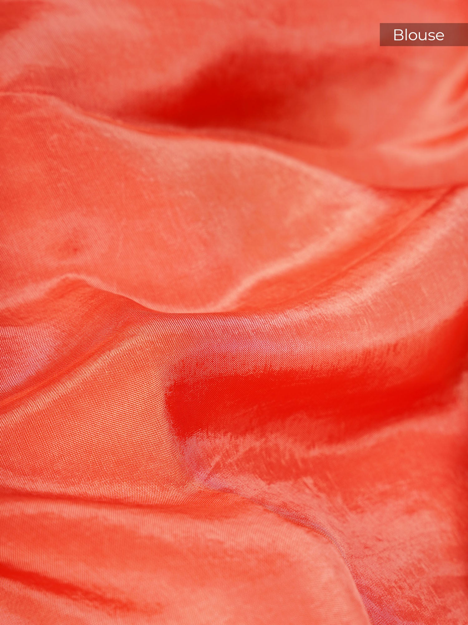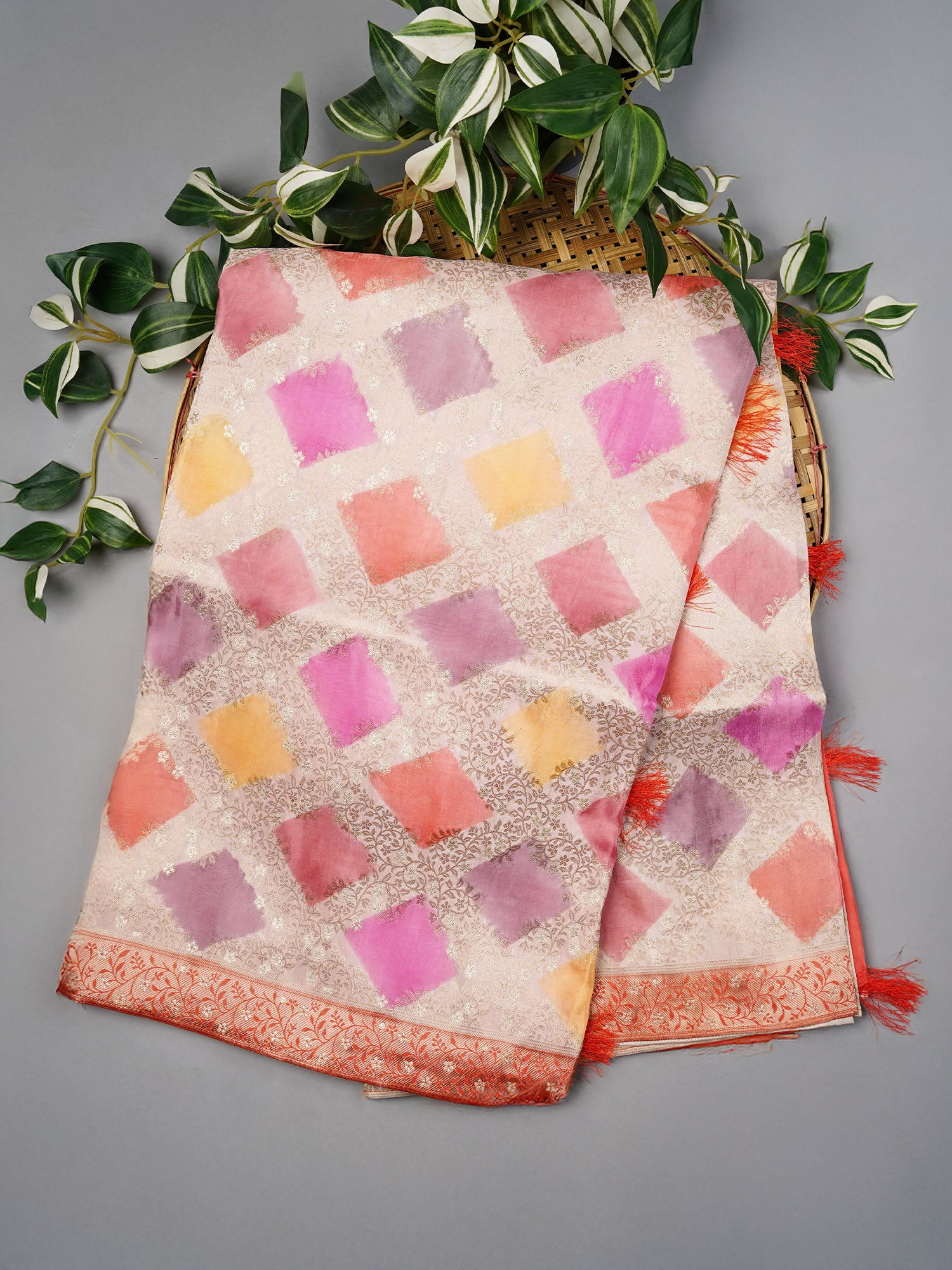 Elevate your ethnic wardrobe with this stunning Banaras Rancut saree that's pure elegance with a playful twist. The creamy base beautifully contrasts with a vibrant orange border, creating a look that's both timeless and eye-catching. Crafted with traditional Banaras weaving techniques, this saree drapes gracefully and works perfectly for festivals, celebrations, or when you want to turn heads. The rich color combination makes it versatile enough to pair with various blouse styles and jewelry. A wardrobe essential that brings together heritage craftsmanship and contemporary style.