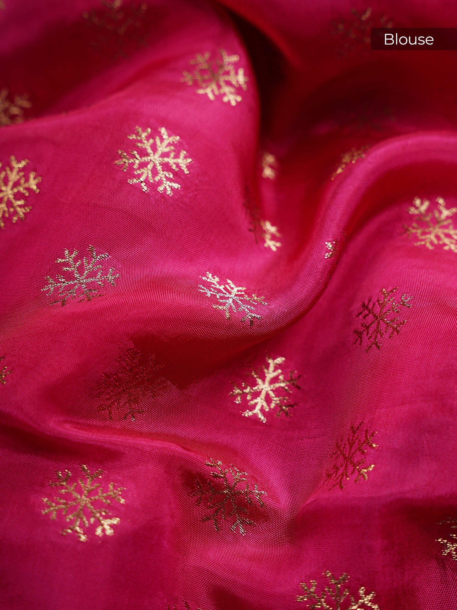Drape yourself in timeless elegance with this stunning Banaras silk saree, where tradition meets shimmer! Adorned with intricate gold and silver zari butties scattered across the fabric, this saree catches light with every movement. The ornate zari border frames the piece beautifully, adding that perfect touch of grandeur for weddings, festivals, or special celebrations. Crafted from luxurious silk, it promises comfort without compromising on that show-stopping sparkle. Perfect for the woman who loves to make a statement while honoring classic Indian craftsmanship!