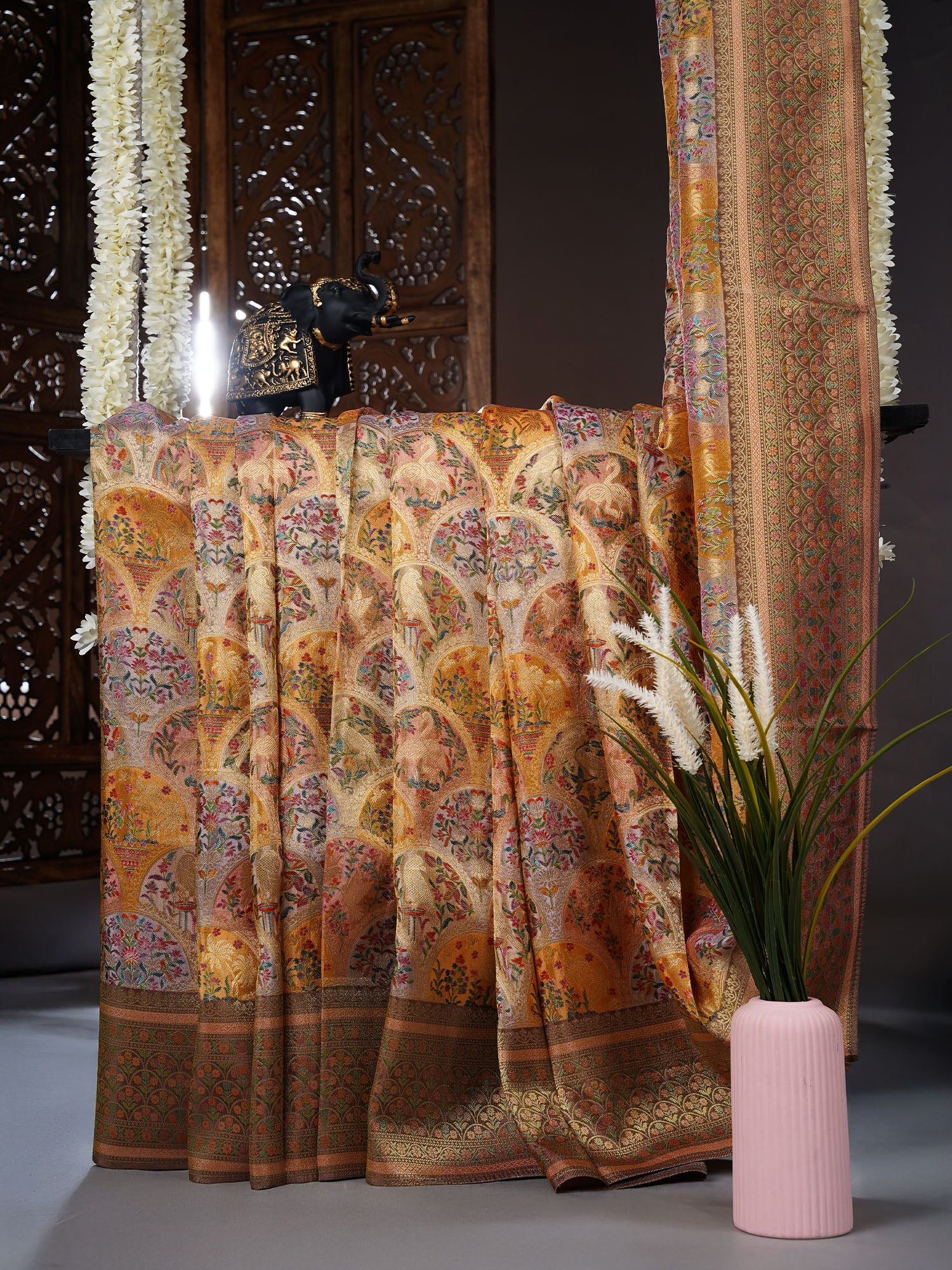 Banaras Silk saree With allover Meenakari - Peach