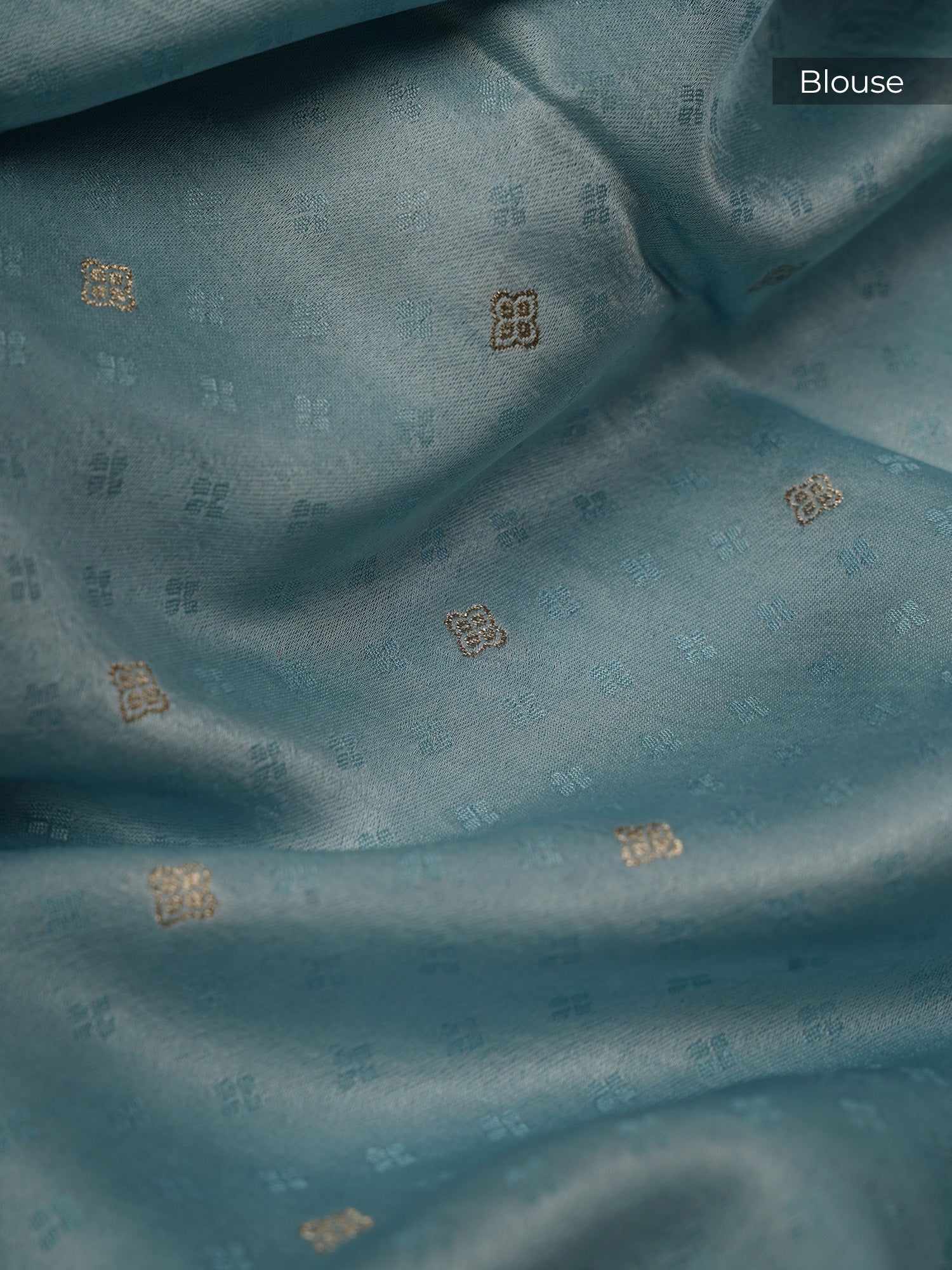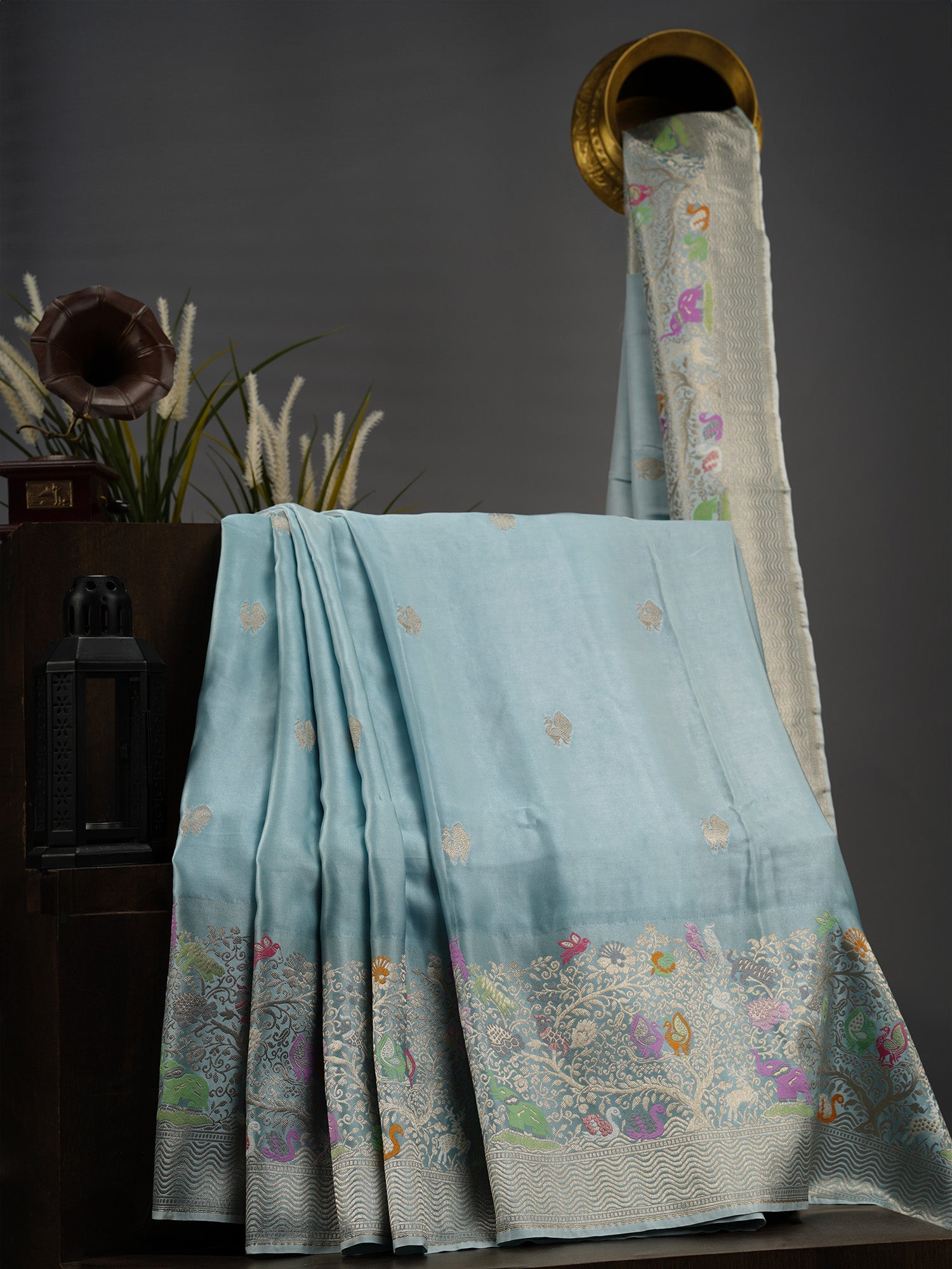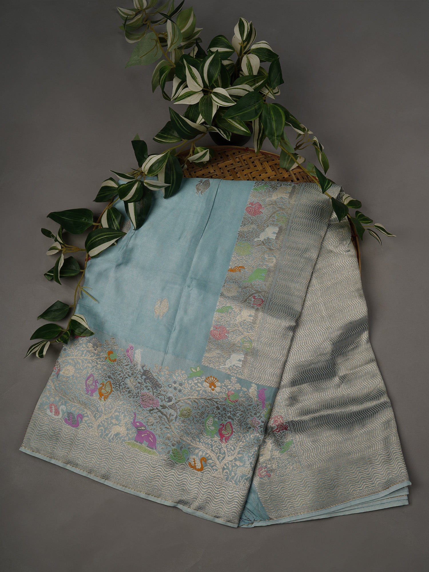 Banaras Silk Silver Butti Meenakari Border with Silver Zari - Blue