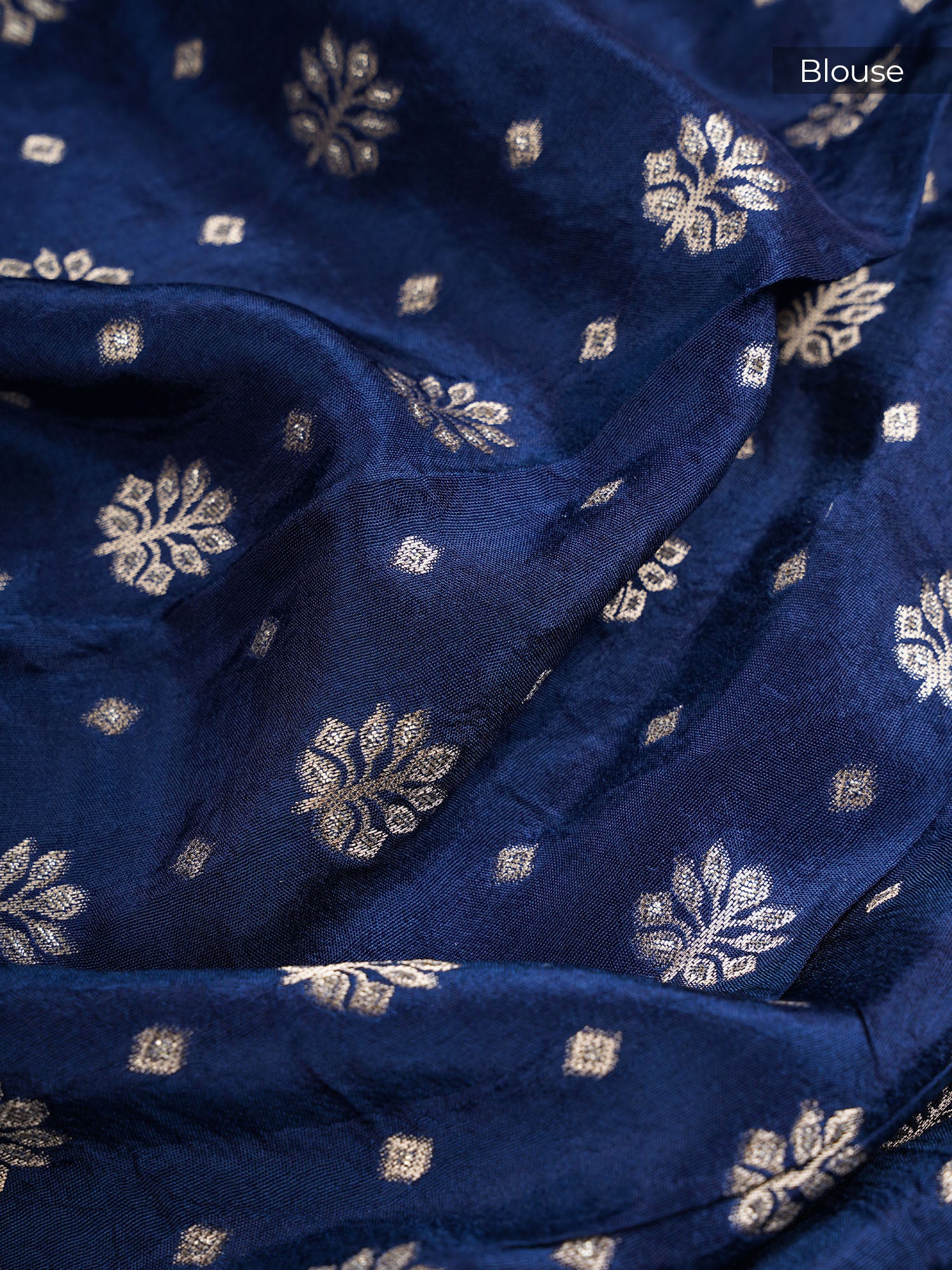 Dive into timeless elegance with this stunning Banarasi Kaddi Georgette saree in rich blue. Adorned with shimmering gold and silver...