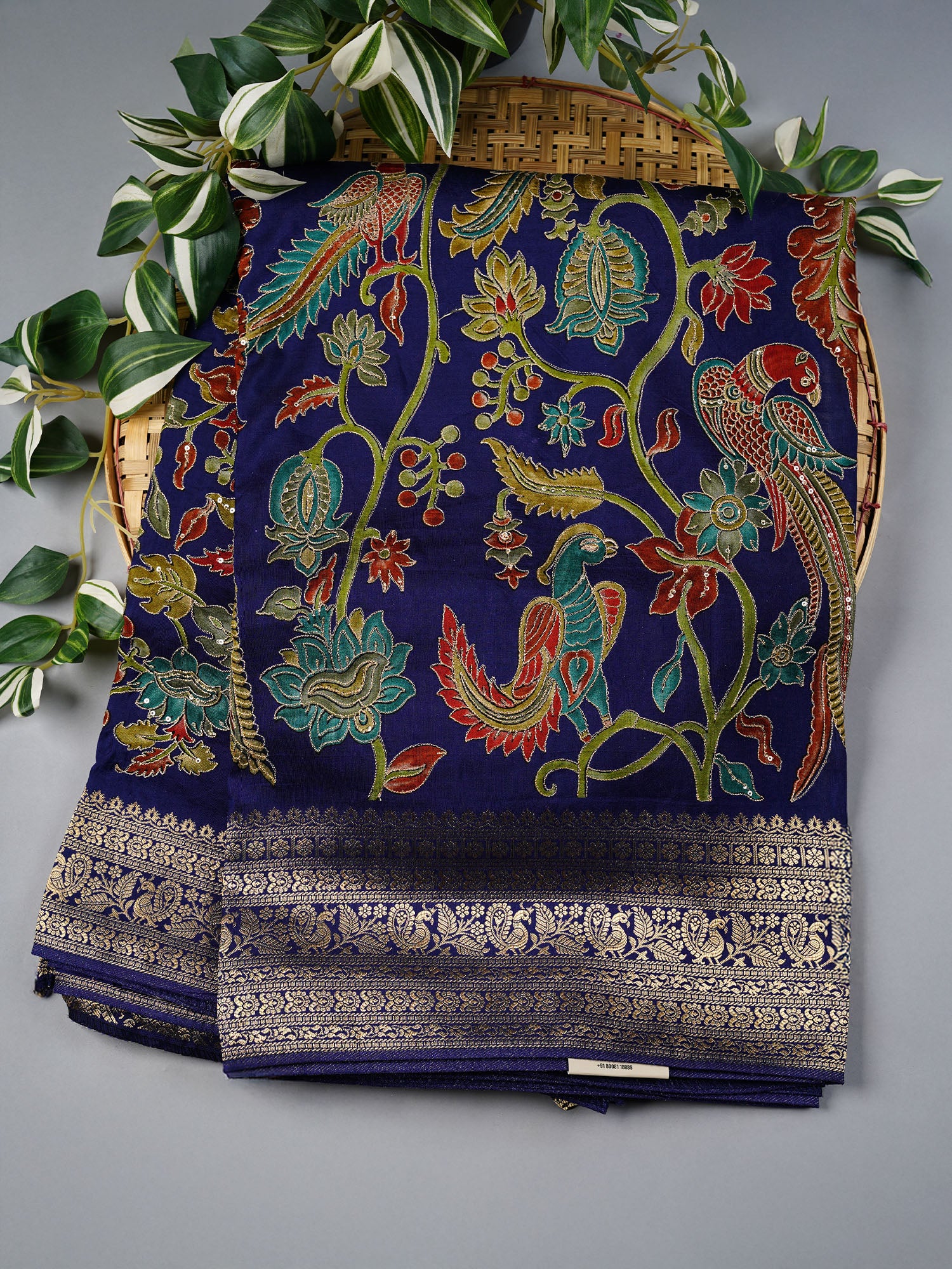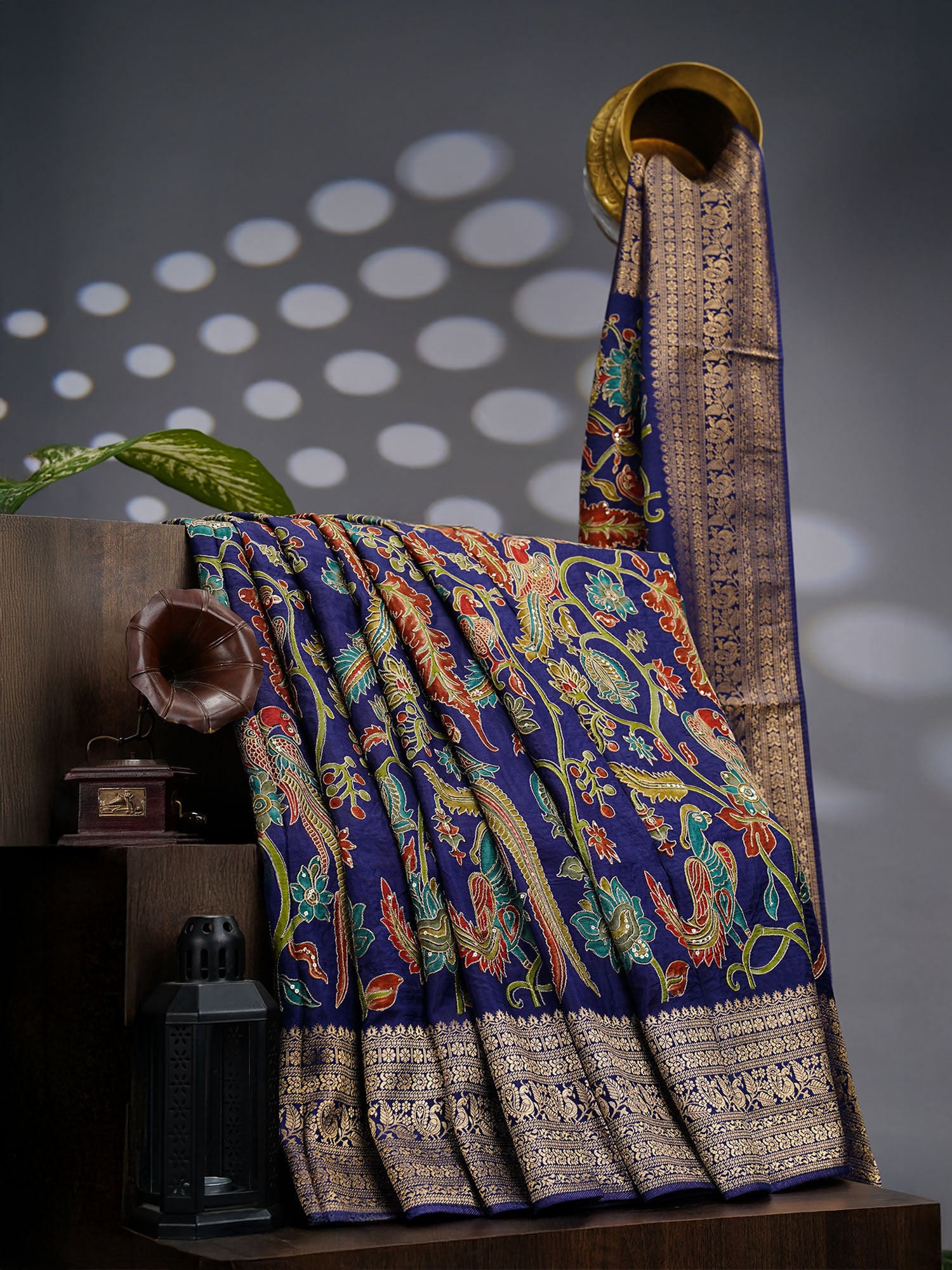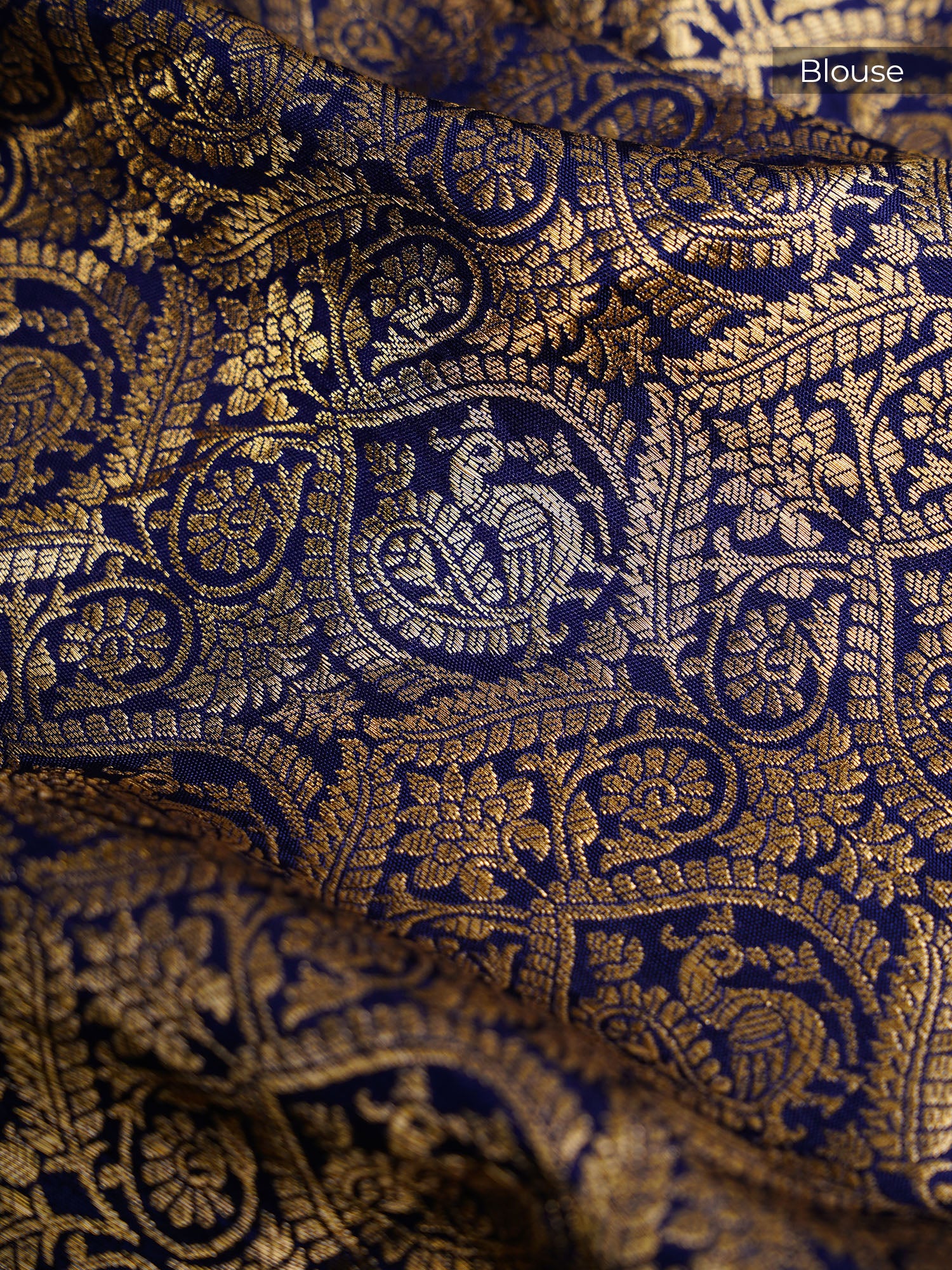 Banarasi Silk Saree With Allover Meenakari With Ari Work - Navy Blue
