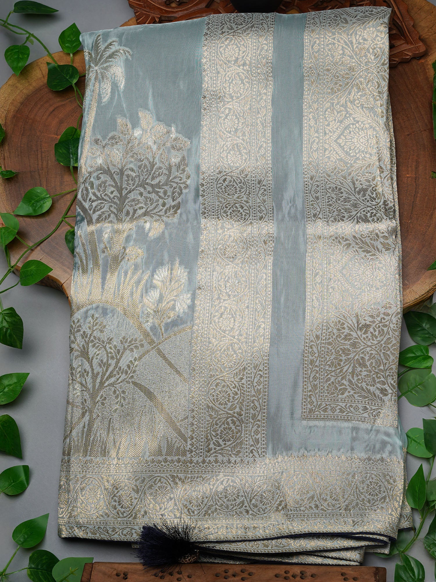 Banarasi Silk Saree with Gold Zari Weaving- Grey
