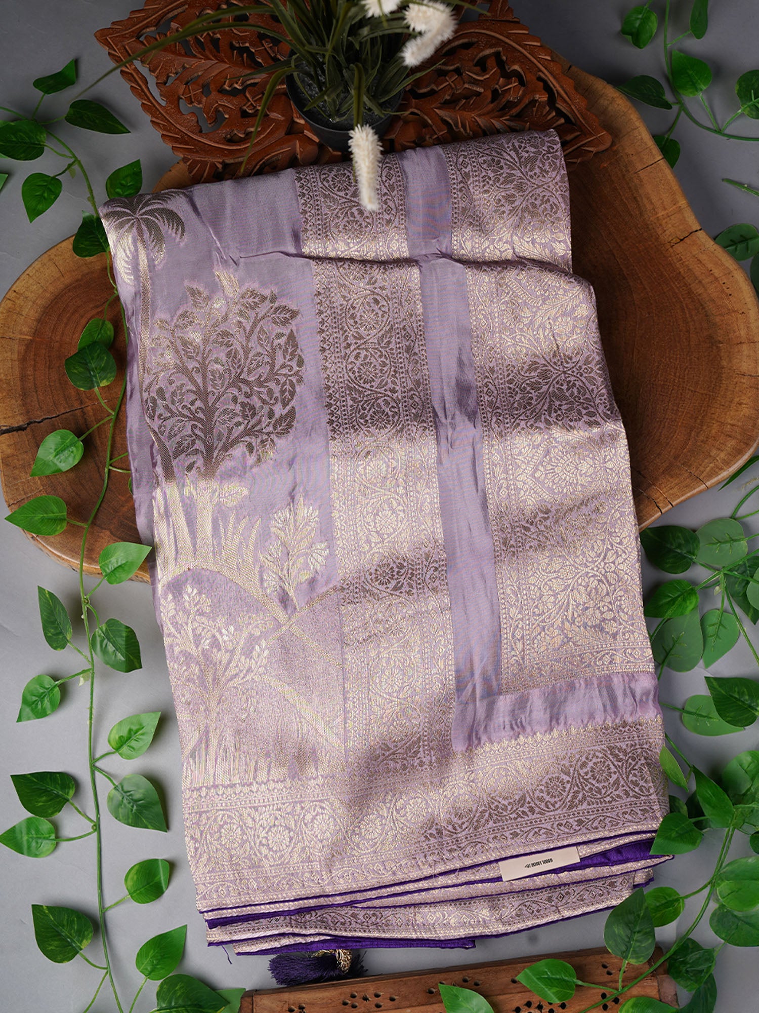 Banarasi Silk Saree with Gold Zari Weaving- Light Lavender