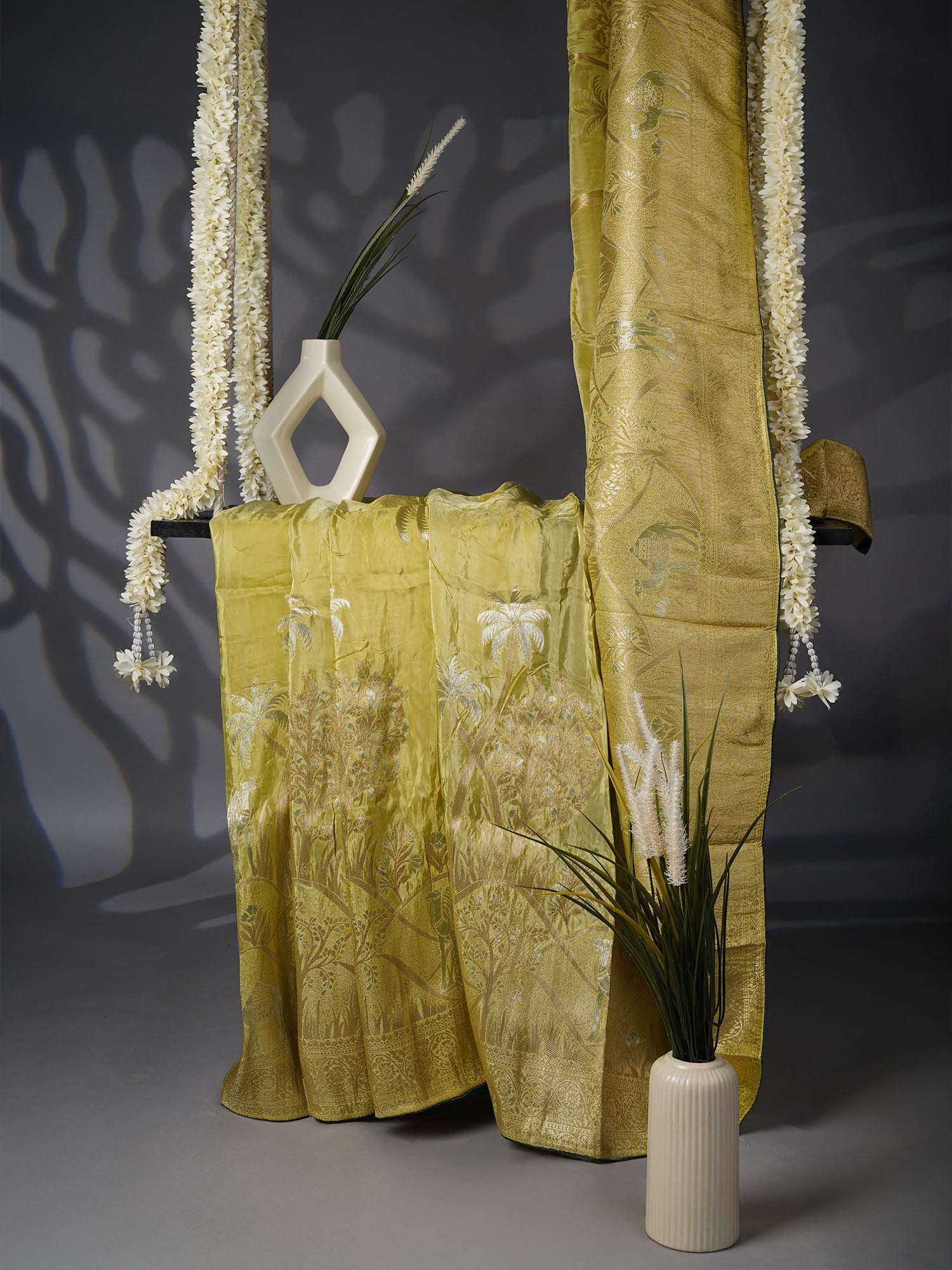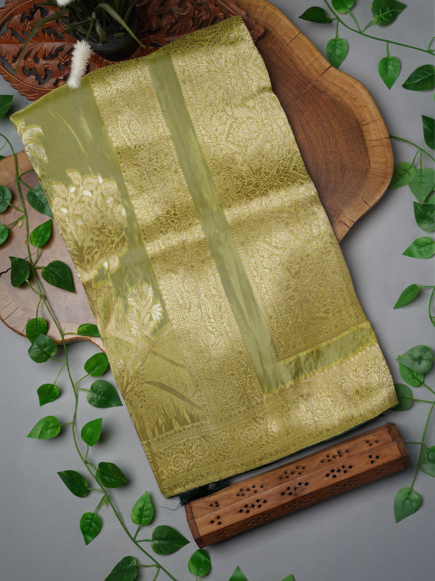 Banarasi Silk Saree with Gold Zari Weaving- Pista Green