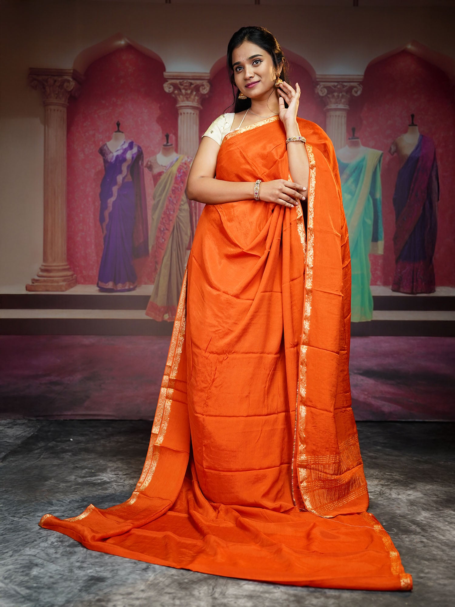 Drape yourself in elegance with this stunning Benny Crepe Silk Saree, where luxurious crepe silk meets a shimmering golden border that catches every eye. The fluid fabric flows beautifully, creating graceful silhouettes while the rich golden detailing adds that perfect touch of glamour. Perfect for celebrations, festivals, or whenever you want to feel absolutely radiant. This timeless piece combines comfort with sophistication, making it a wardrobe essential for the modern woman who loves traditional charm with a contemporary twist.
