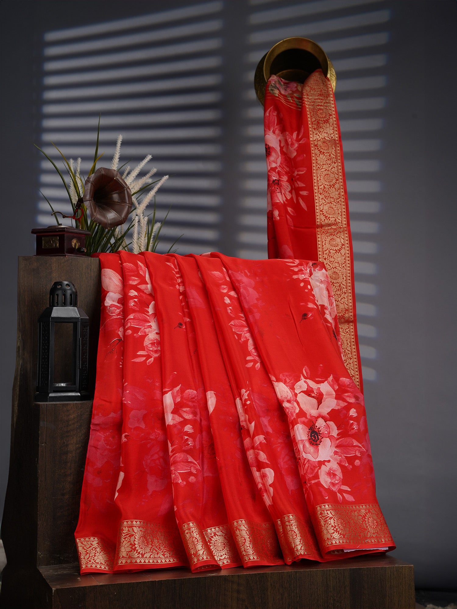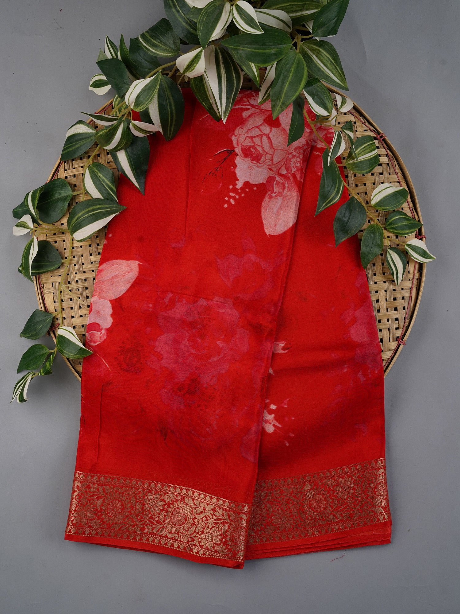 Elevate your ethnic wardrobe with this stunning Binny crepe saree that's pure magic! The vibrant red base comes alive with delicate floral prints, while the shimmering golden zari border adds that perfect touch of glamour. Whether you're heading to a festive celebration or a casual gathering, this versatile beauty transitions effortlessly from day to night. The soft crepe fabric drapes beautifully and feels incredibly comfortable against the skin. Perfect for those who love traditional charm with a modern twist!