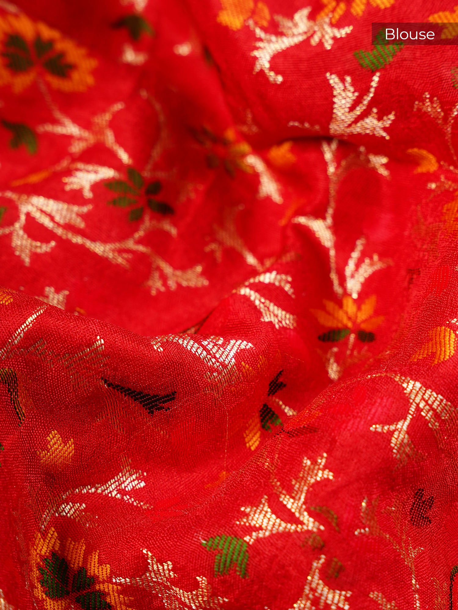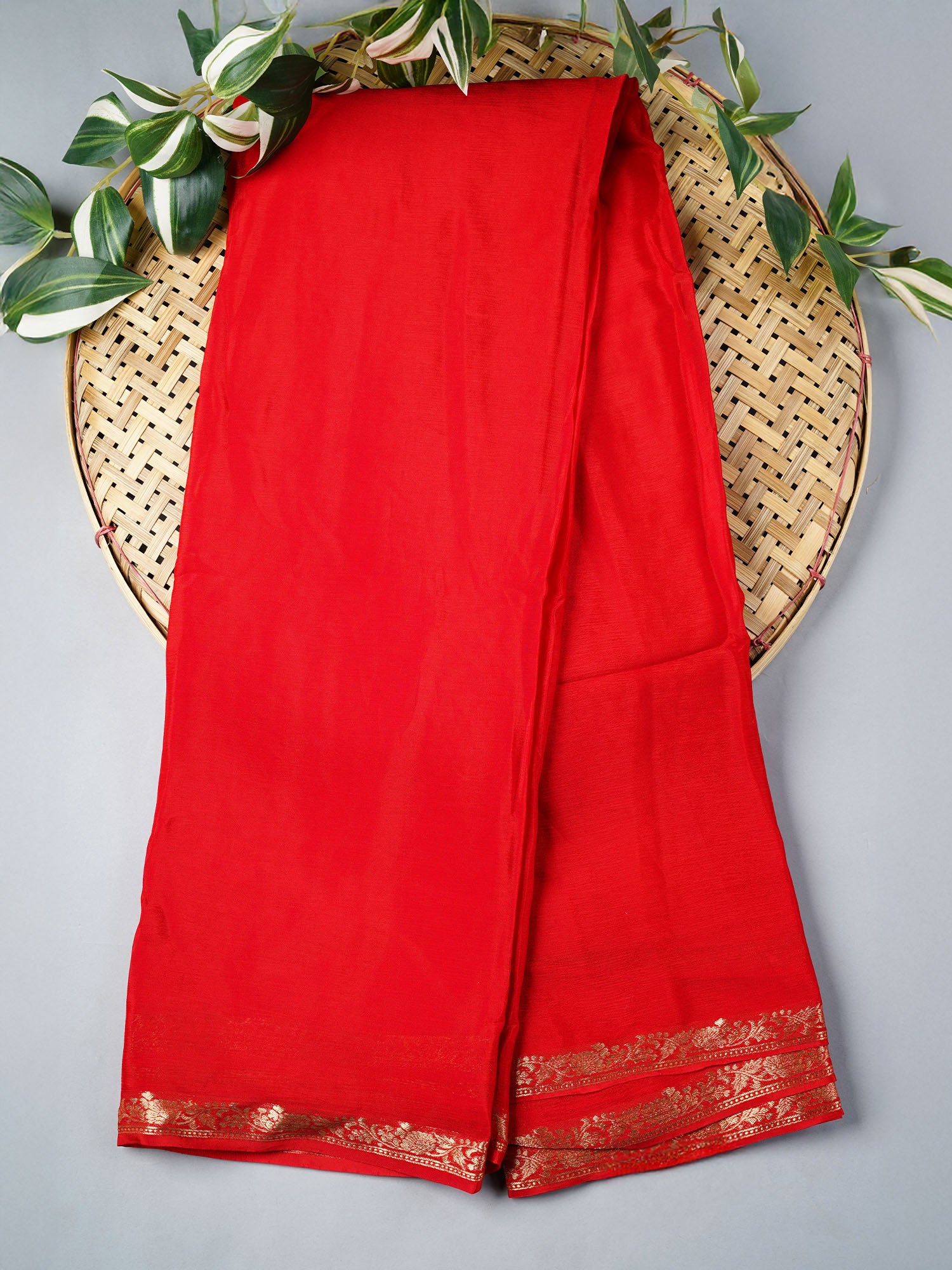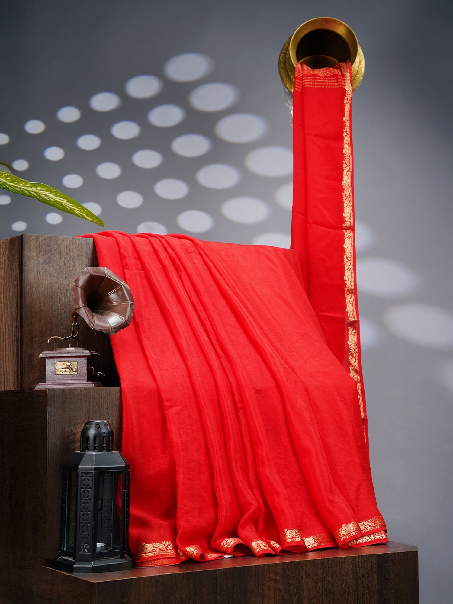 Elevate your saree game with this gorgeous Benny crepe silk saree, where luxe fabric meets dazzling golden borders. The crepe texture adds beautiful movement and drape, while the striking red base creates instant impact at any occasion. Those shimmering golden accents? They catch the light beautifully and add just the right amount of sparkle without being over the top. Lightweight yet elegant, this saree feels as good as it looks, making it your go-to choice for festivals, family gatherings, or whenever you want to feel absolutely fabulous. A modern twist on classic style that celebrates your unique flair.