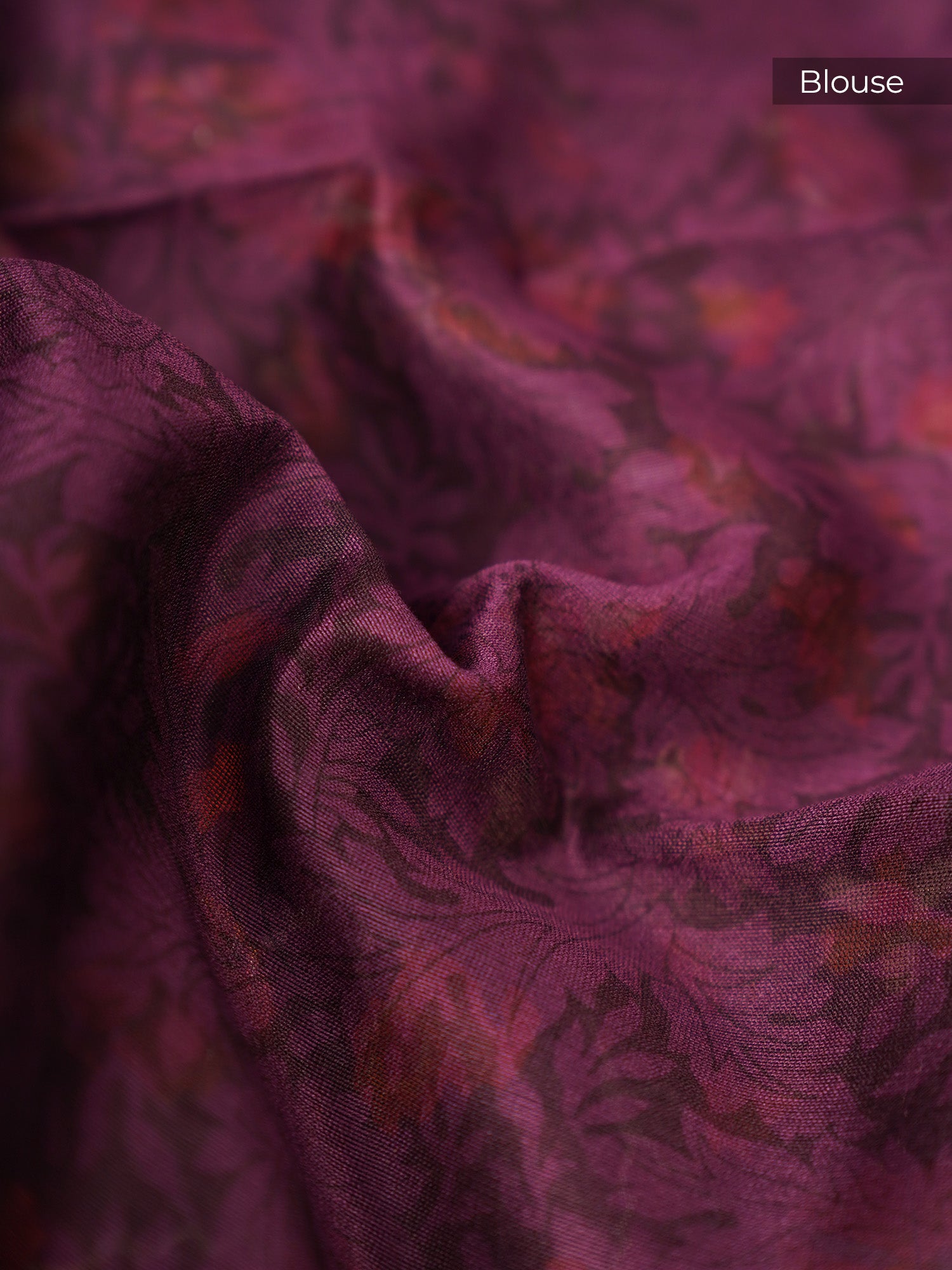 Chanderi Silk Digital Print Antique Zari Border - Wine