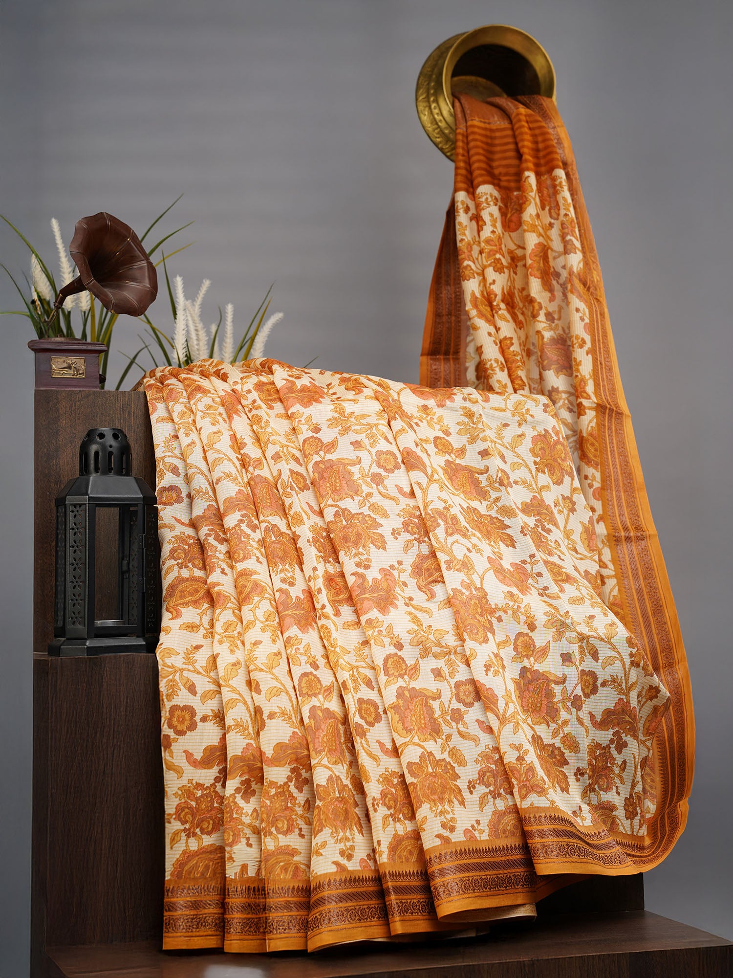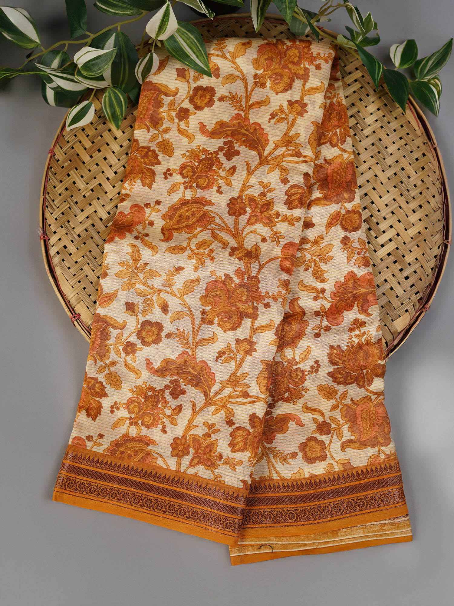 Elevate your ethnic wardrobe with this exquisite Chanderi silk saree, featuring an intricate allover print that showcases traditional craftsmanship. The saree is adorned with an antique zari border that adds timeless elegance and sophistication. Chanderi silk is renowned for its lightweight yet durable fabric, offering a graceful drape that flatters every silhouette. The rich green hue complements various skin tones, making it versatile for festivals, celebrations, and special occasions. Perfect for those who appreciate authentic handwoven textiles and refined design details.
