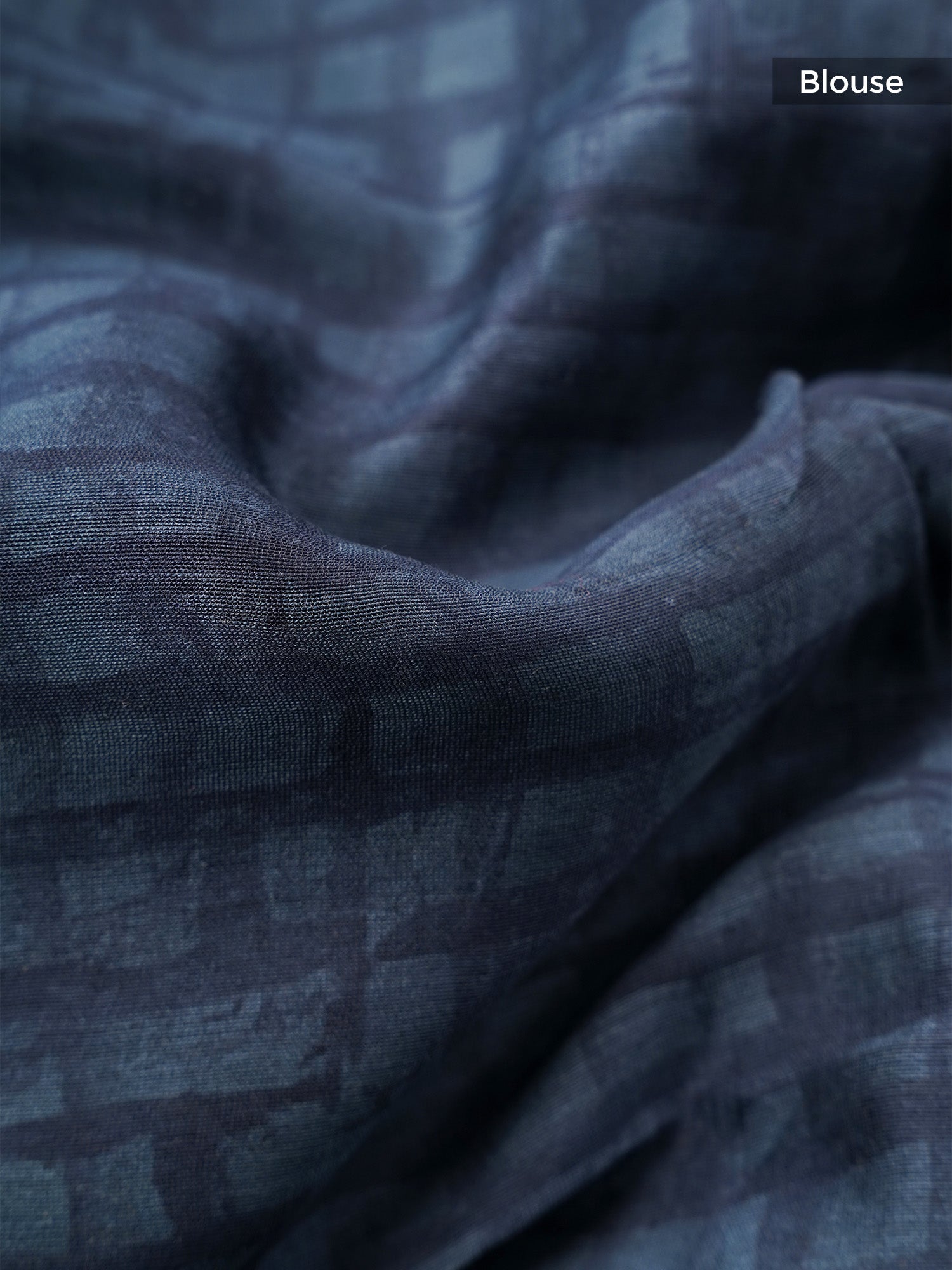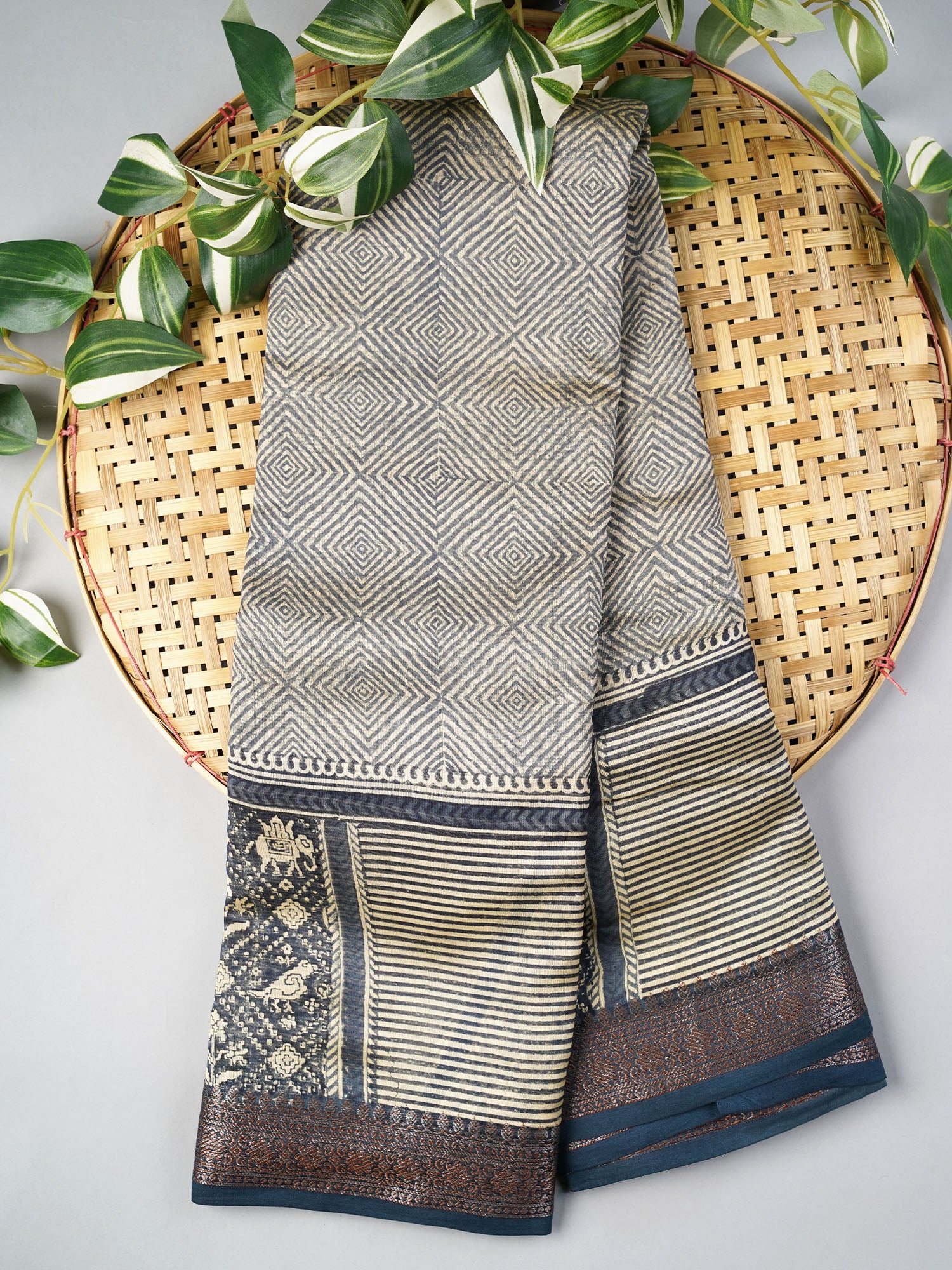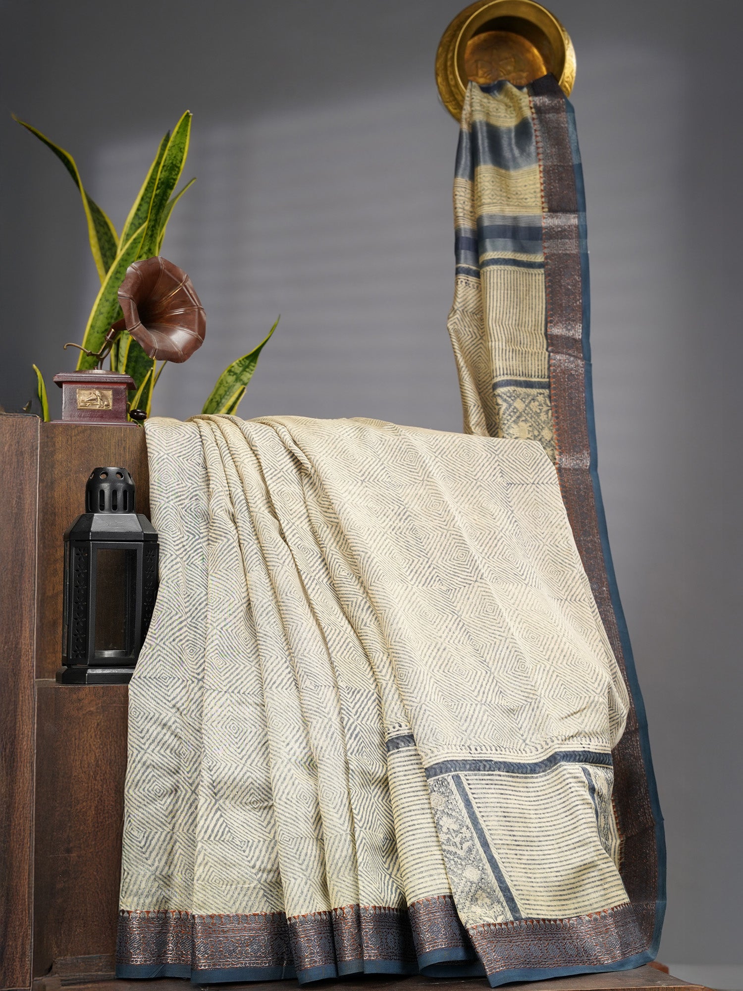 Chanderi Silk Saree With Antique Zari Border - Navi Blue