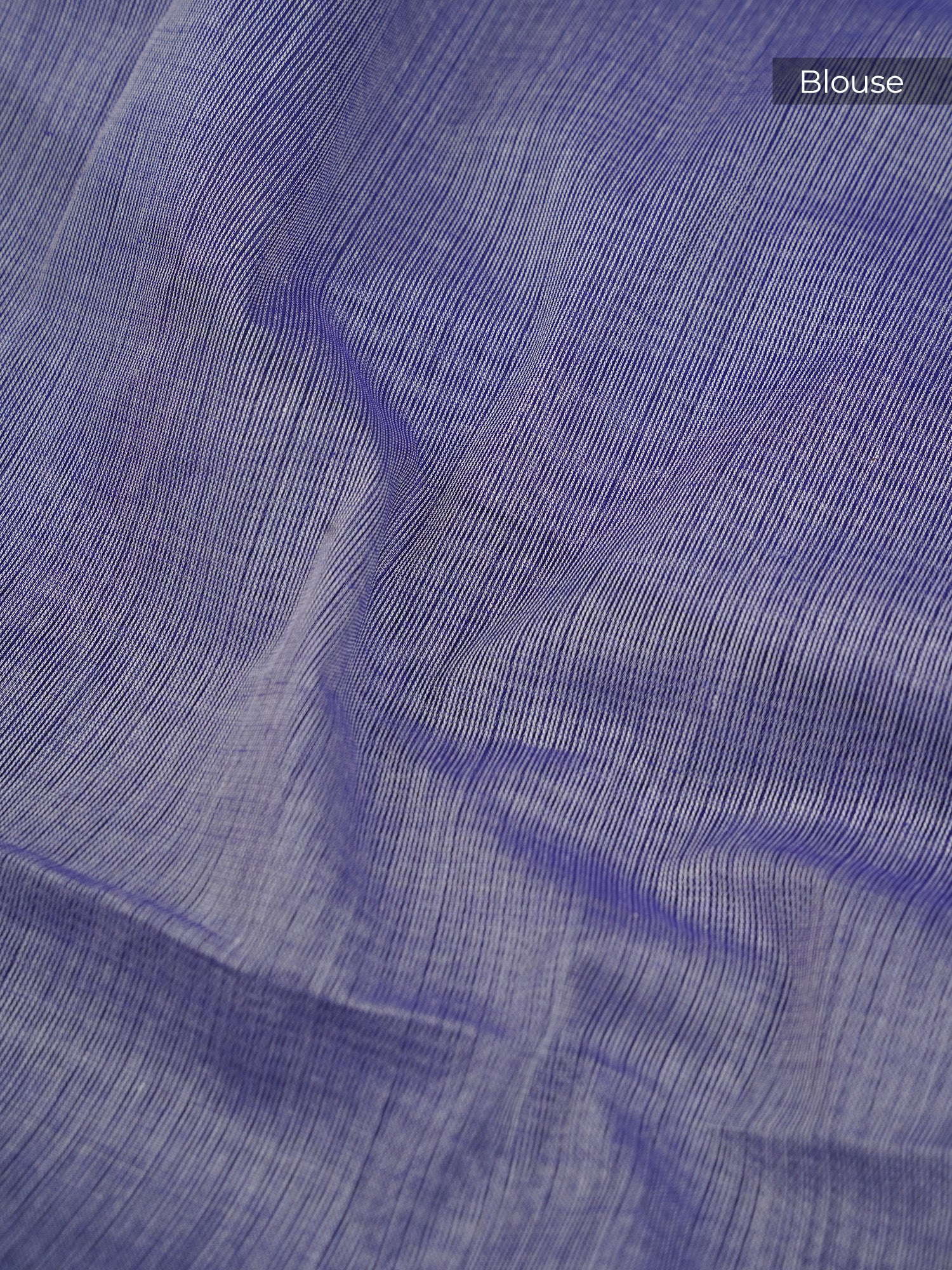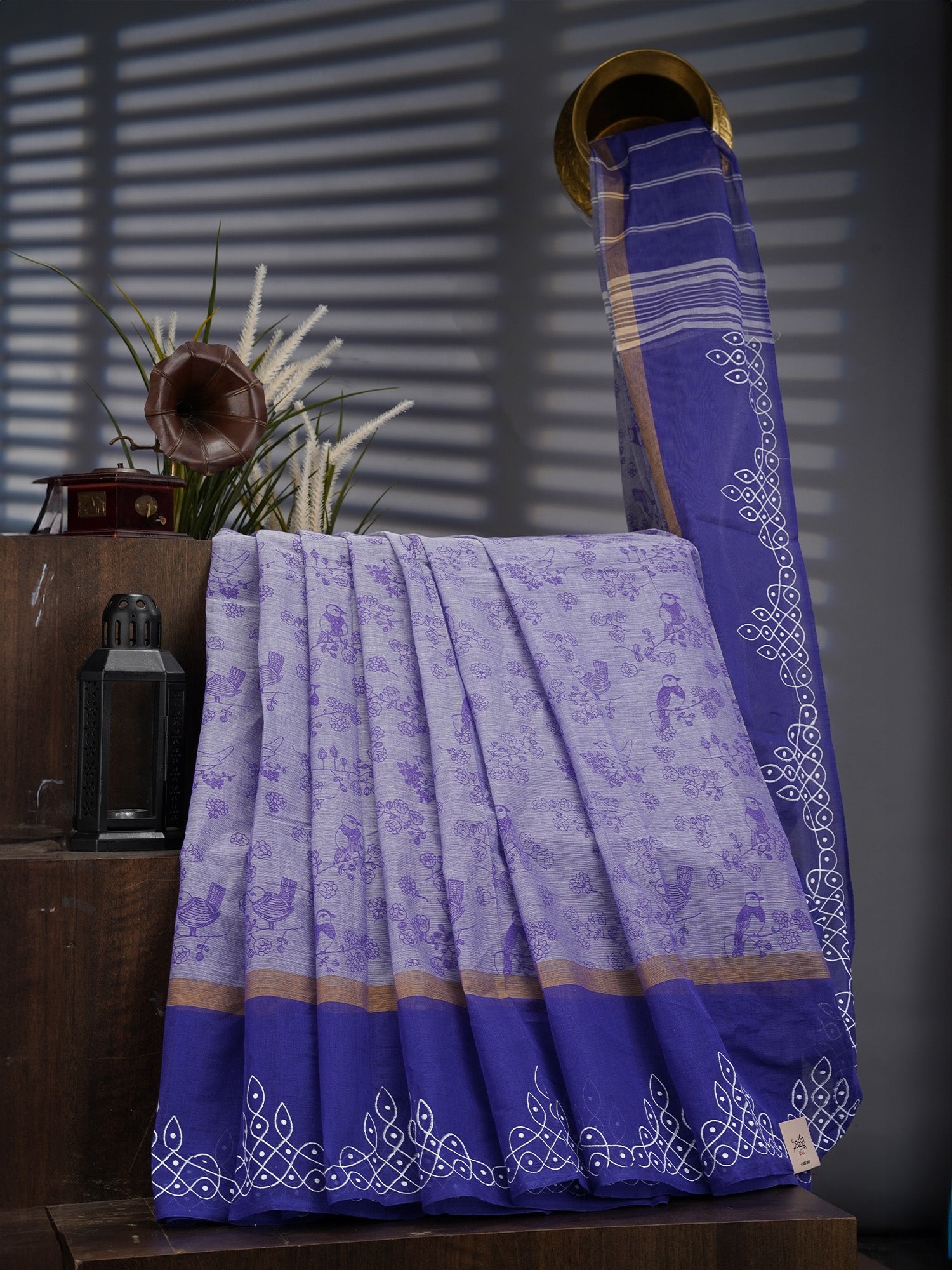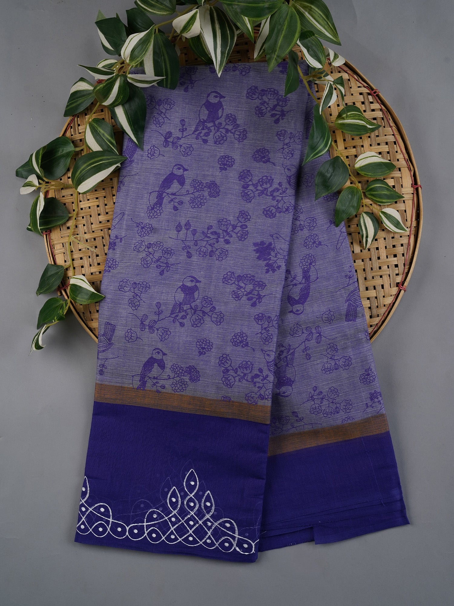 Chanderi Silk Saree with Floral Print and Contrast Border- Blue