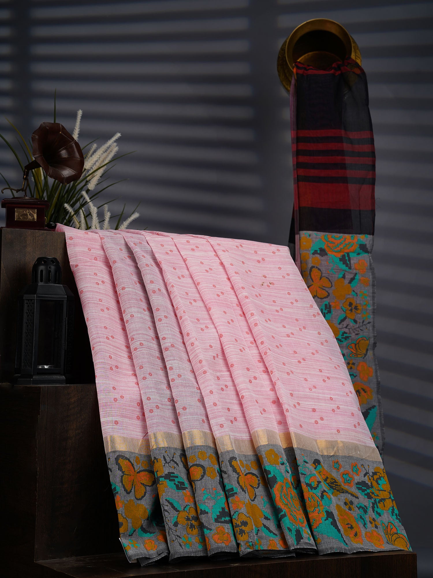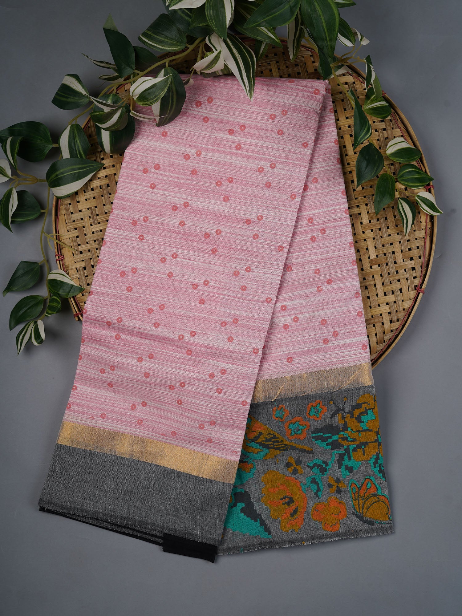 Drape yourself in delicate elegance with this charming Chanderi silk saree, where soft baby pink meets intricate floral print borders. Chanderi silk is celebrated for its lightweight, breathable texture—perfect for staying cool and comfortable while looking absolutely stunning. The graceful floral border adds a touch of traditional artistry that works beautifully for both everyday wear and special occasions. Whether you're heading to a celebration or simply want to feel fabulous, this saree brings that perfect blend of timeless sophistication and modern charm. A wardrobe essential that never goes out of style.