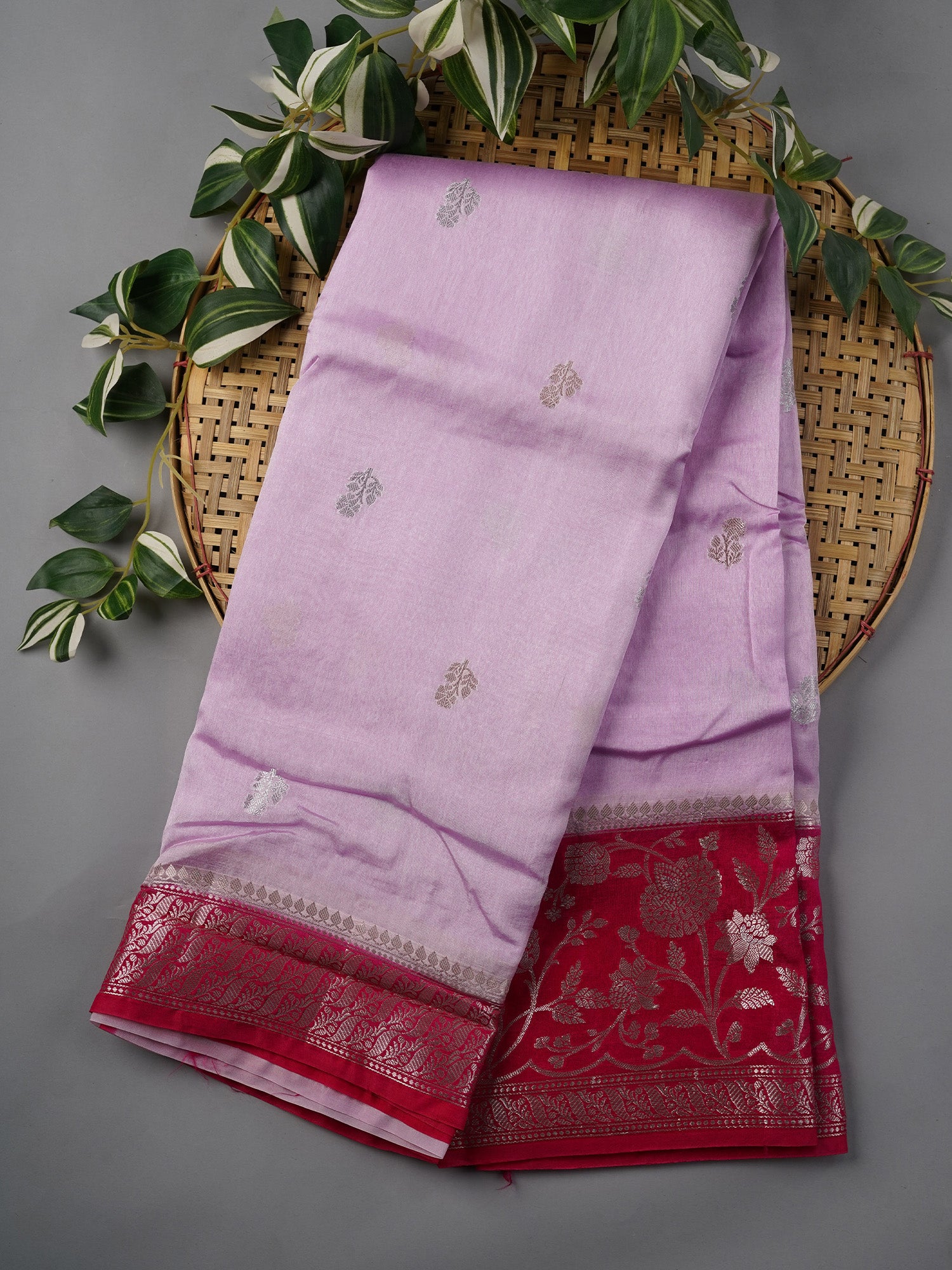 Chanderi Silk With Golden & Silver Zari Butties And Contrast Border - Lavender