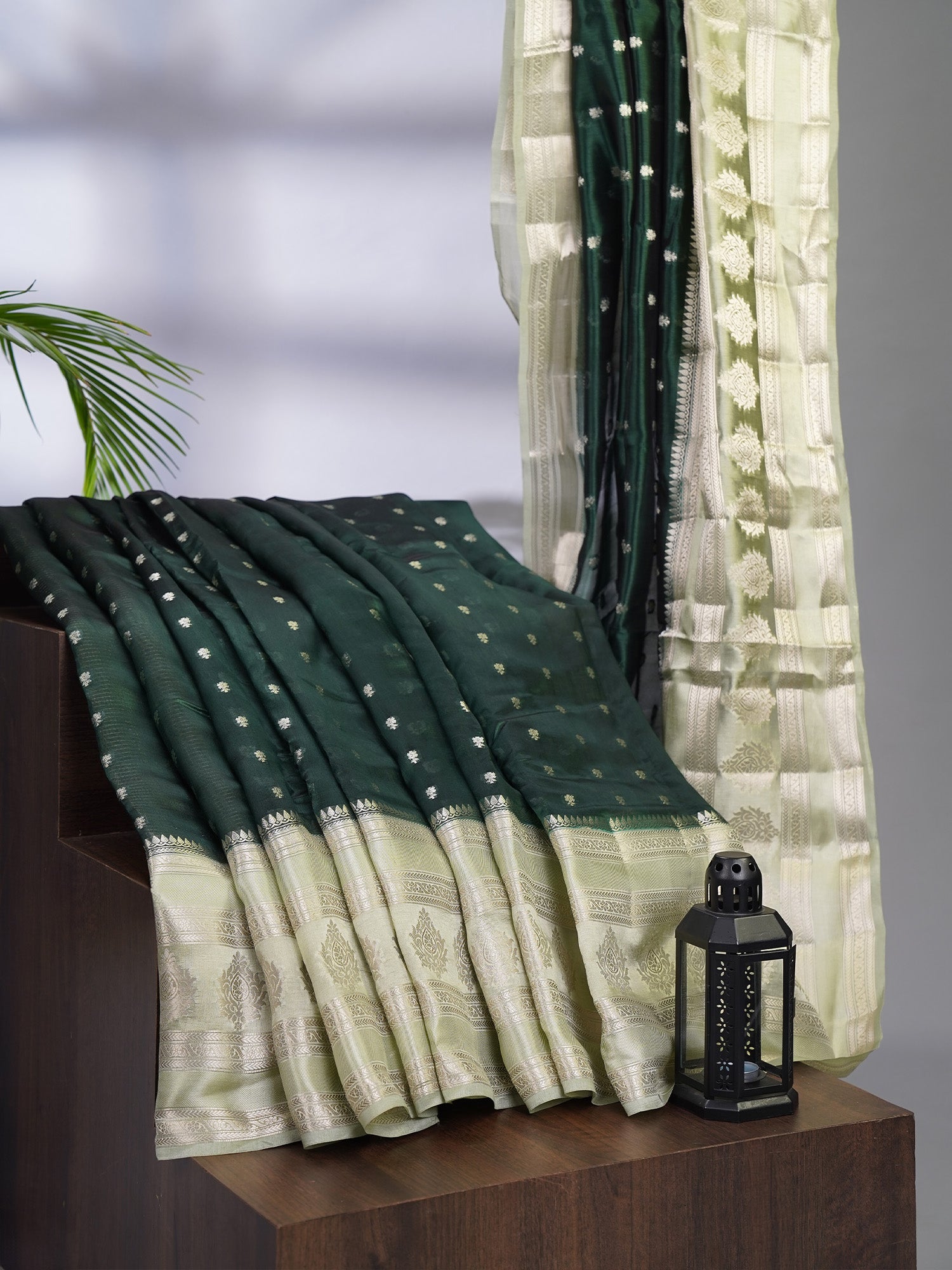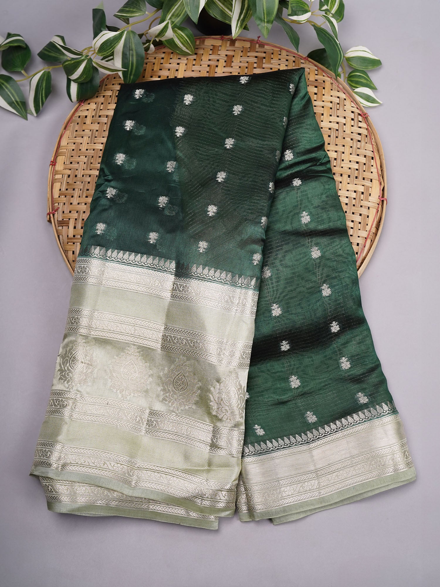 Drape yourself in pure elegance with this stunning Chiniya Silk saree, adorned with shimmering silver butties that catch the light with every movement. The delicate silk fabric flows effortlessly, offering a luxurious feel against your skin, while the intricate silver embellishments add a touch of sparkle and sophistication. Perfect for celebrations, weddings, or those moments when you want to feel absolutely radiant. A timeless piece that transforms any occasion into something truly special.