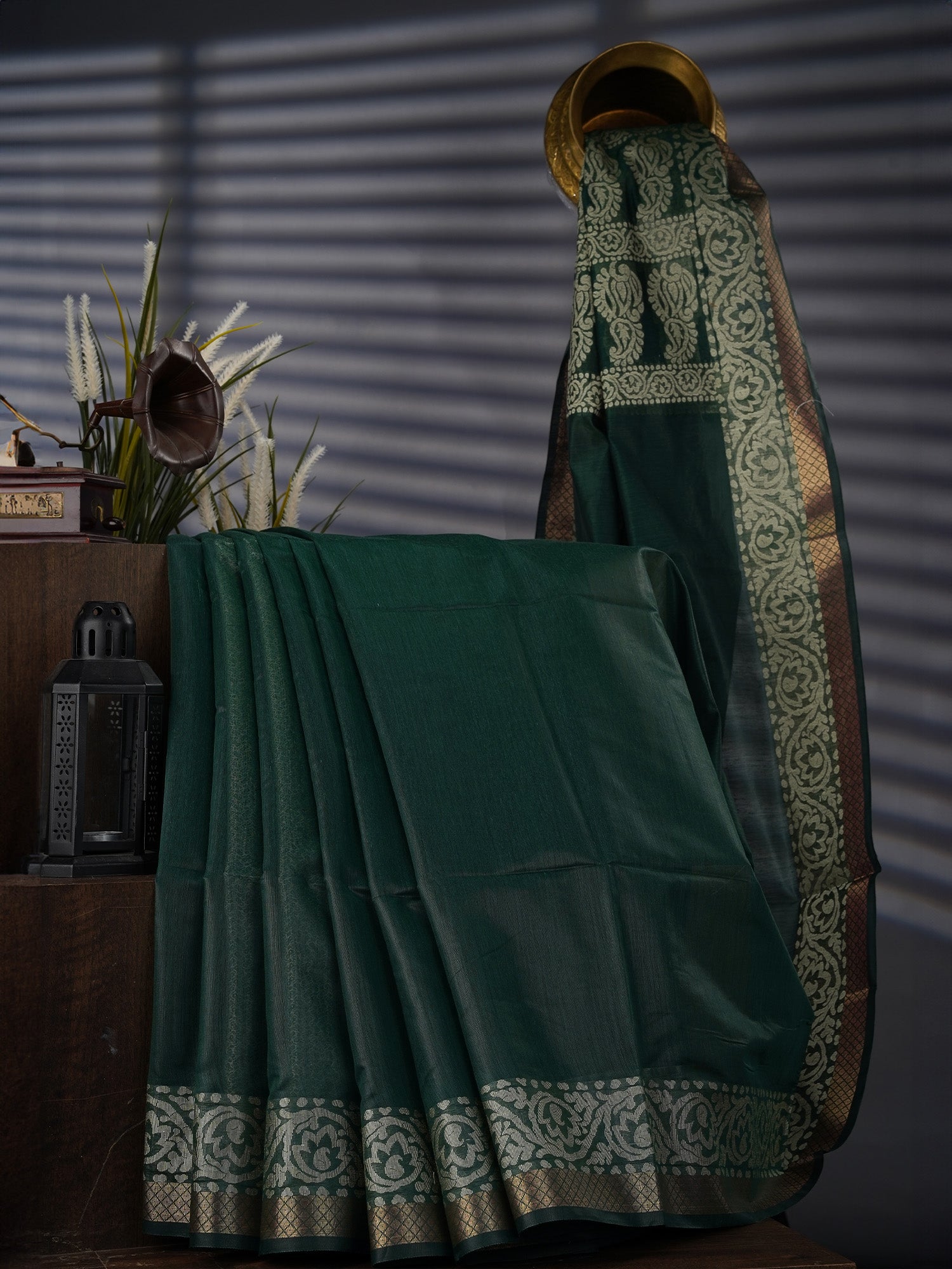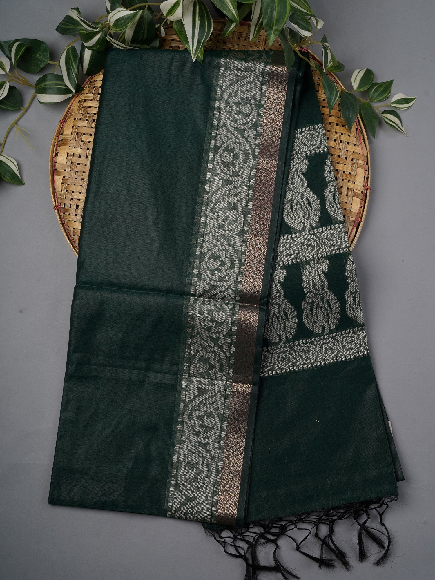 Chanderi Silk with Thread Weaving and Golden Border- Green