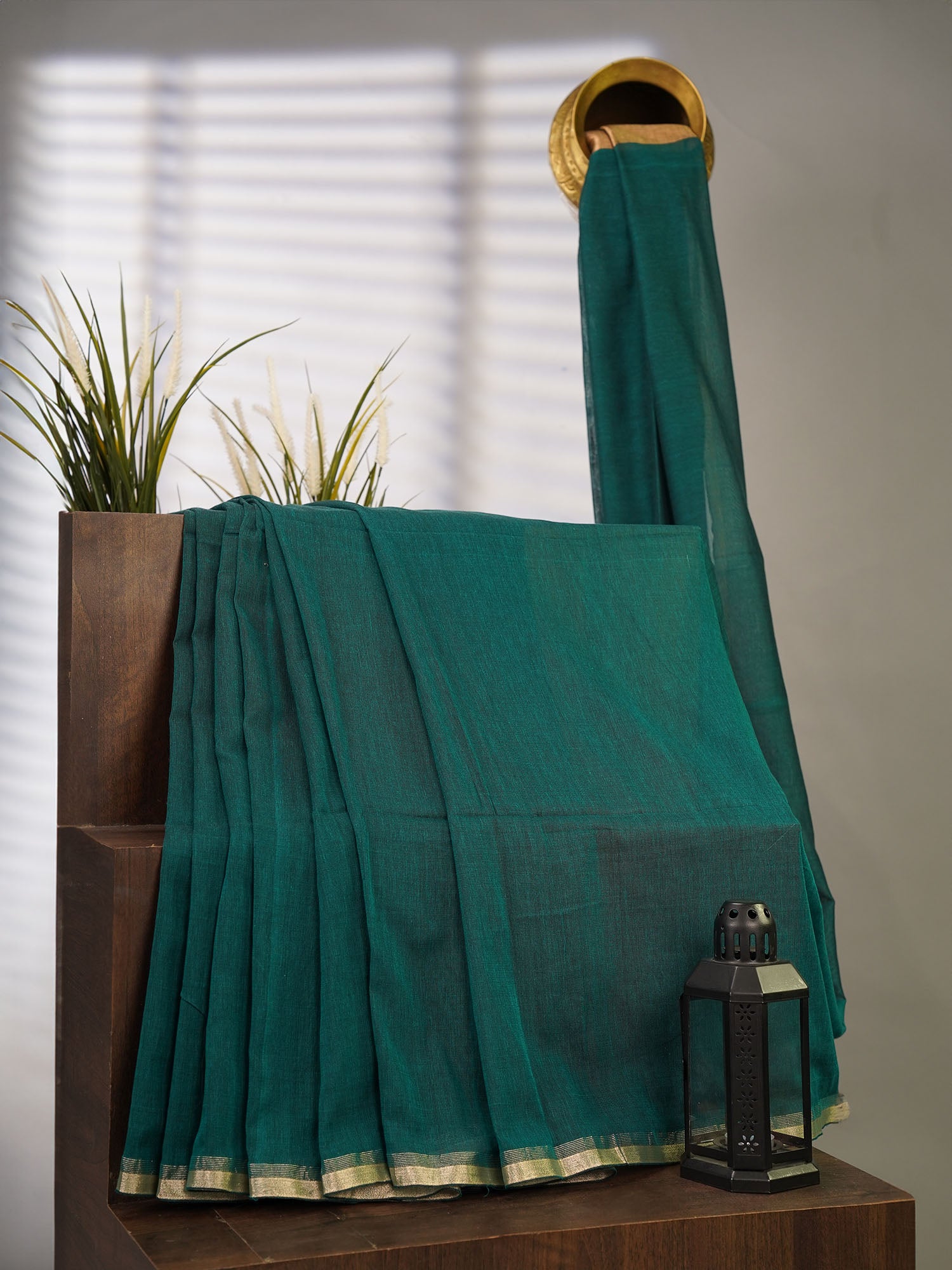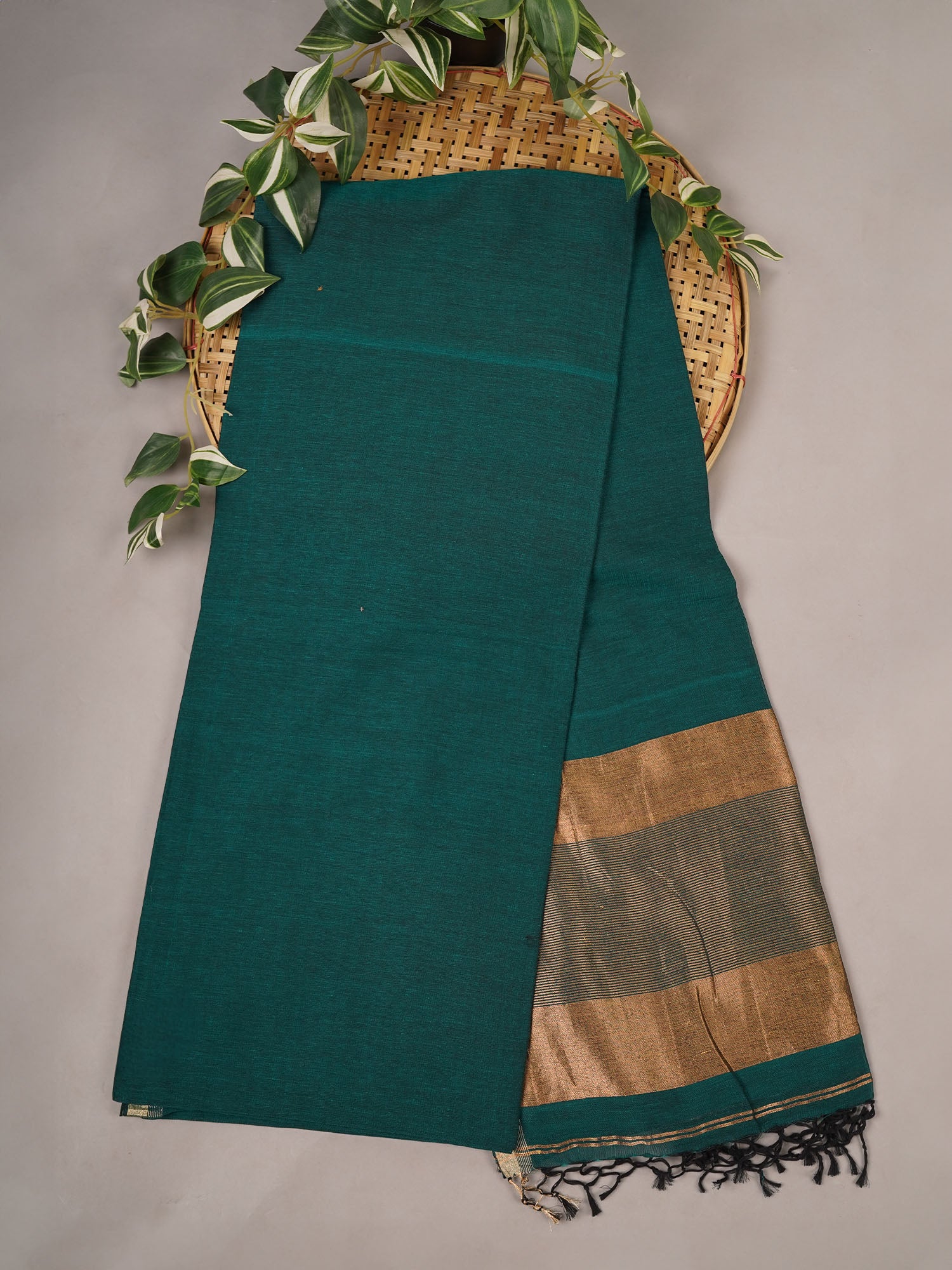Cotton Antique Gold Zari Border - B Green