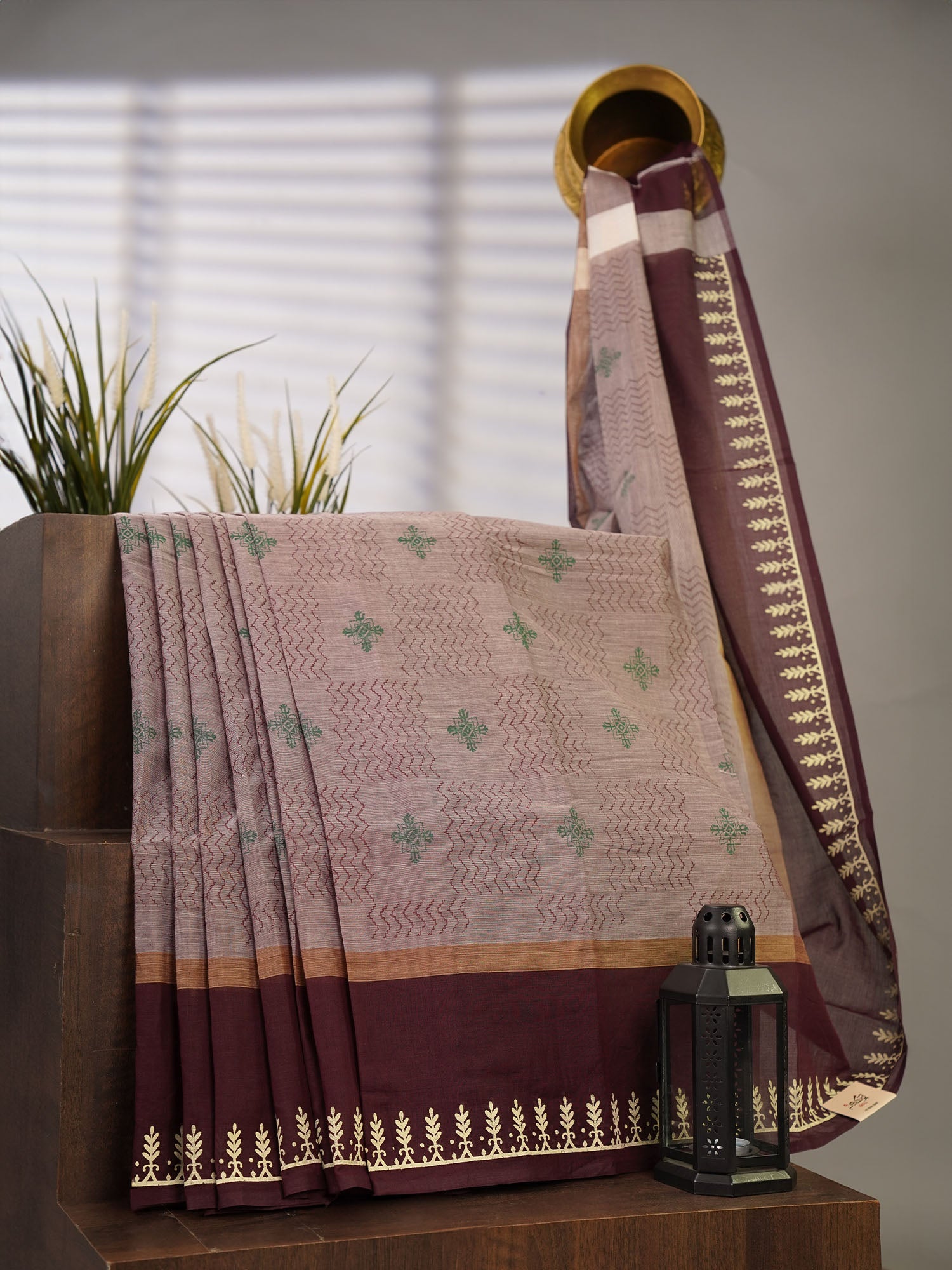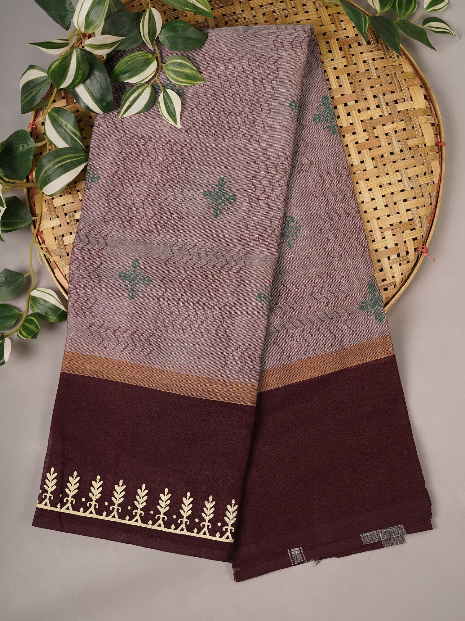 This Cotton Block Print Contrast Border in rich chocolate showcases expertly crafted traditional block printing on breathable cotton fabric. The...