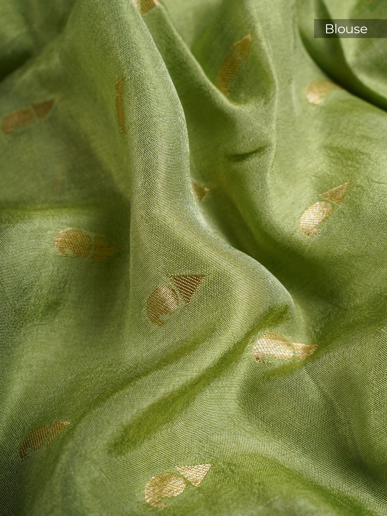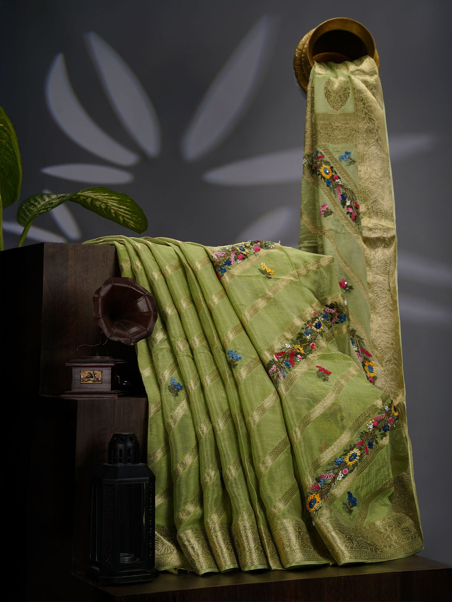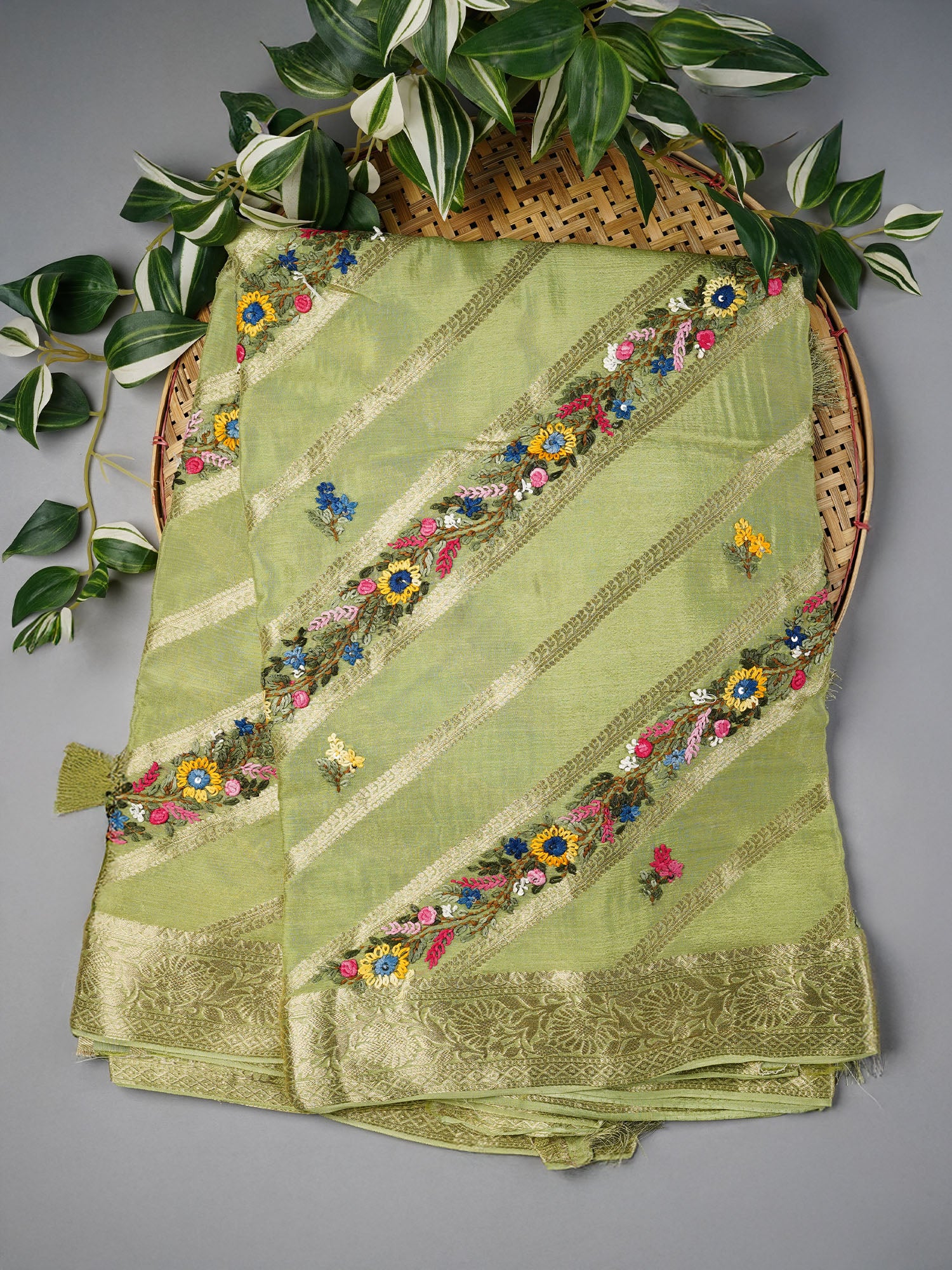 Crepe Saree with Thread Embroidery Work with Banaras Border- Green