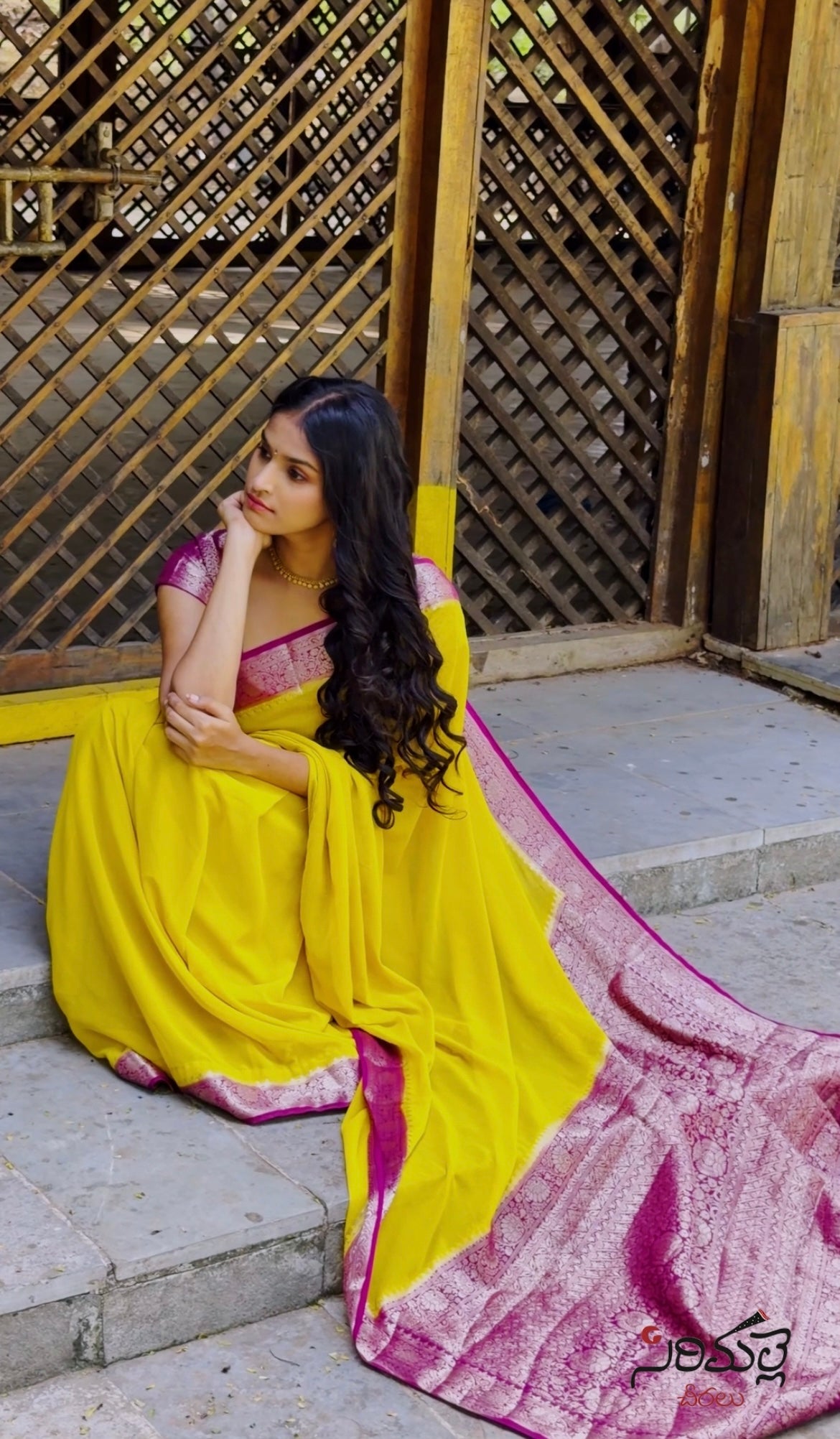 Drape yourself in sunshine with this stunning yellow georgette saree, where golden zari flowers dance along the border like tiny celebrations. The lightweight georgette fabric flows effortlessly, perfect for those days when you want comfort without compromising on elegance. Those intricate golden zari details catch the light beautifully, adding just the right amount of sparkle to elevate your everyday look or make a statement at special occasions. Versatile, graceful, and absolutely radiant—this saree is your go-to for looking fabulous.