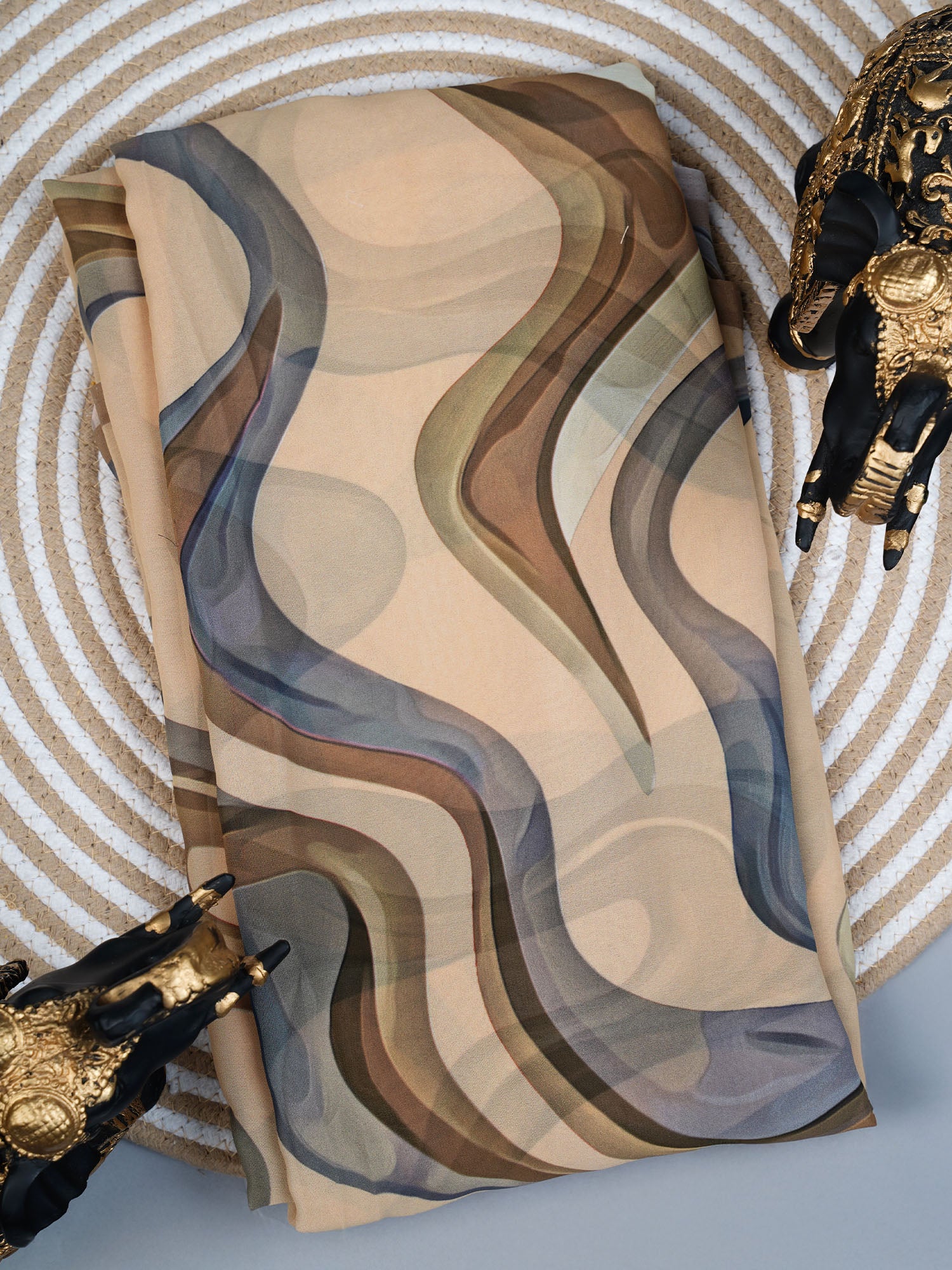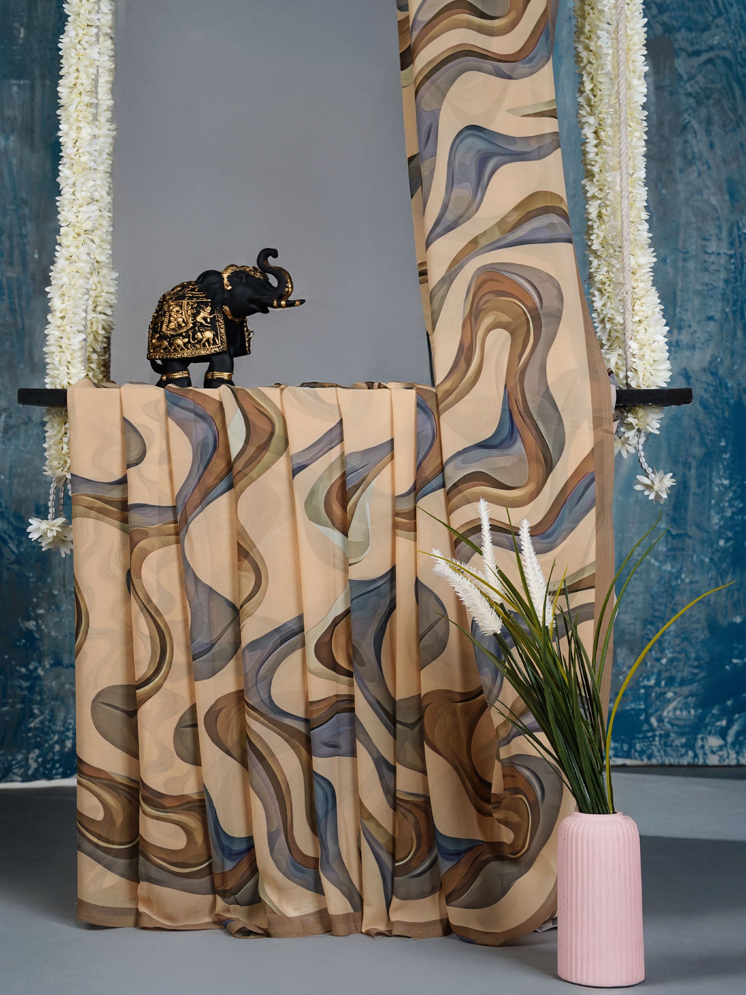 Slip into effortless elegance with this stunning brown georgette saree, where modern digital prints meet timeless drape. The lightweight georgette...