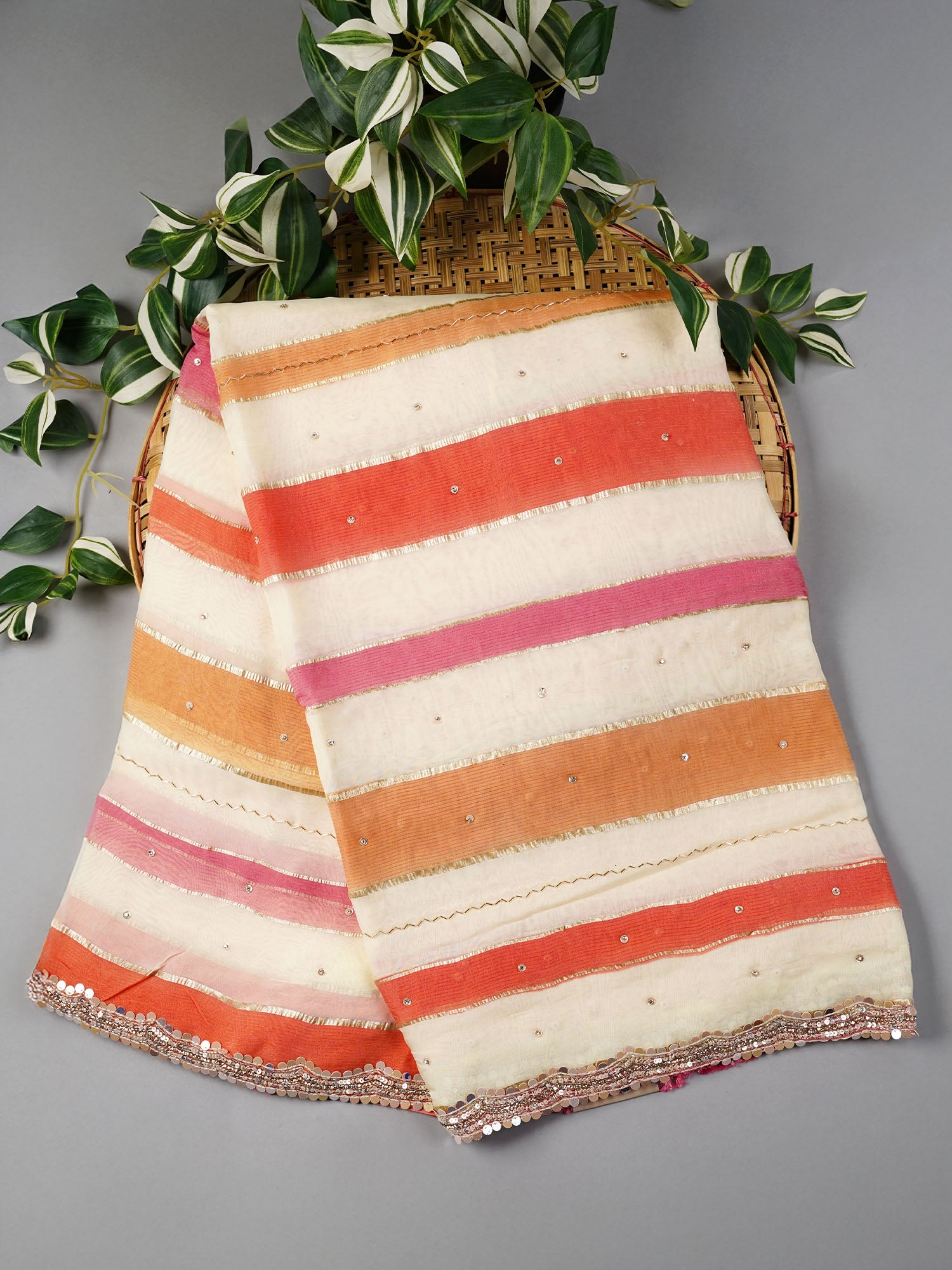 Georgette Saree With Scallop Border Kardhana Sequence Work - Beige