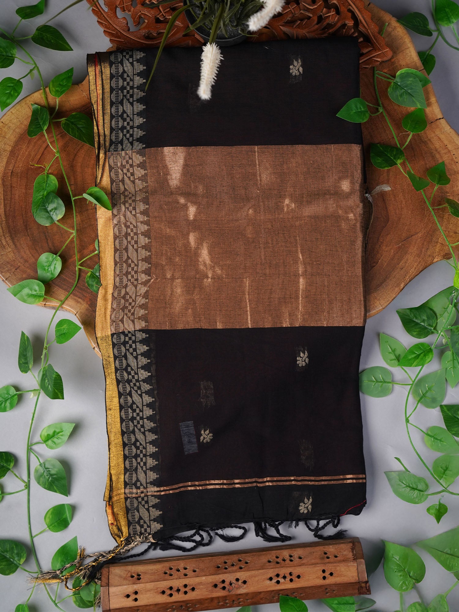 Handloom Cotton Saree with Thread Weaving Border- Black