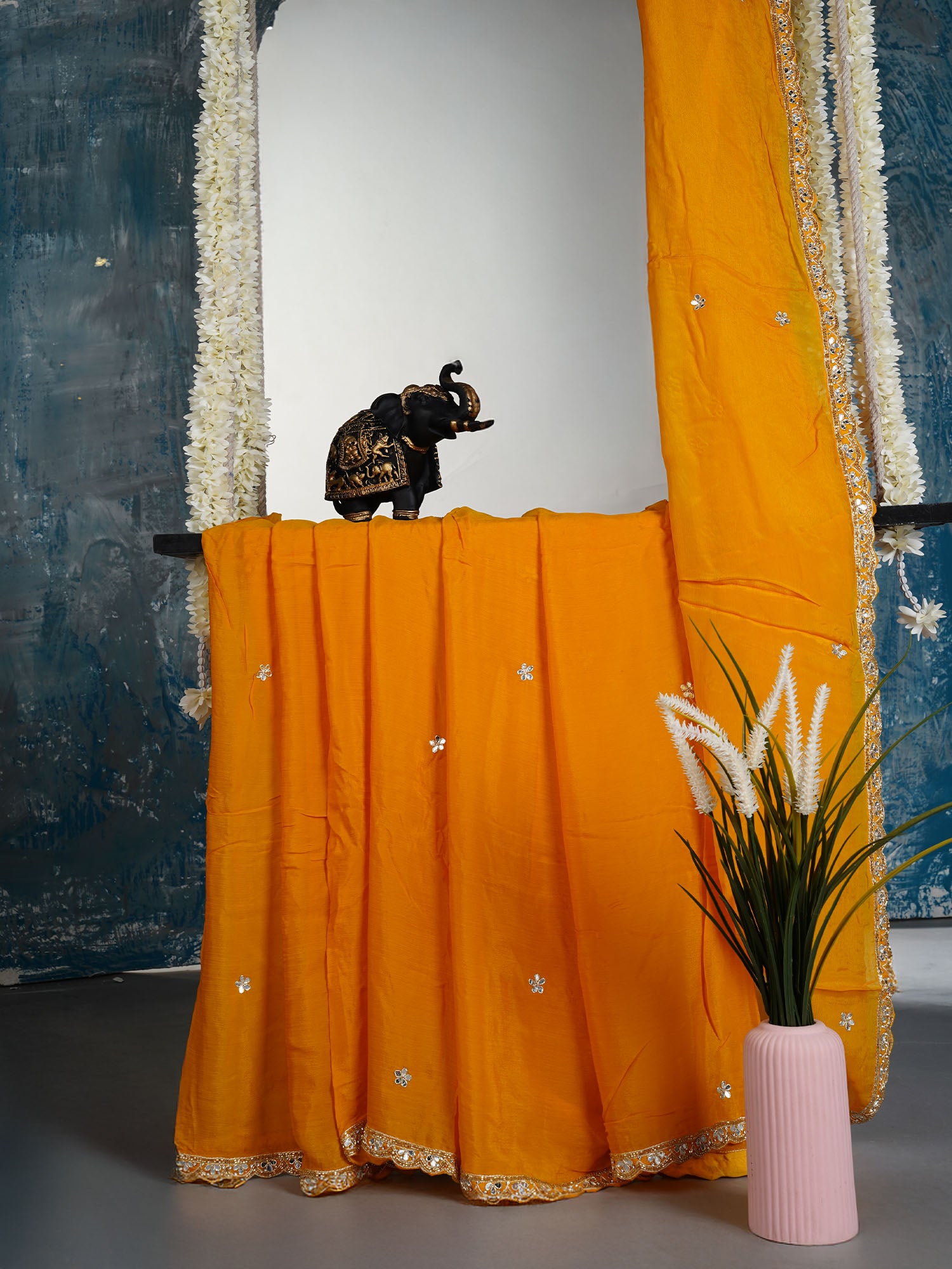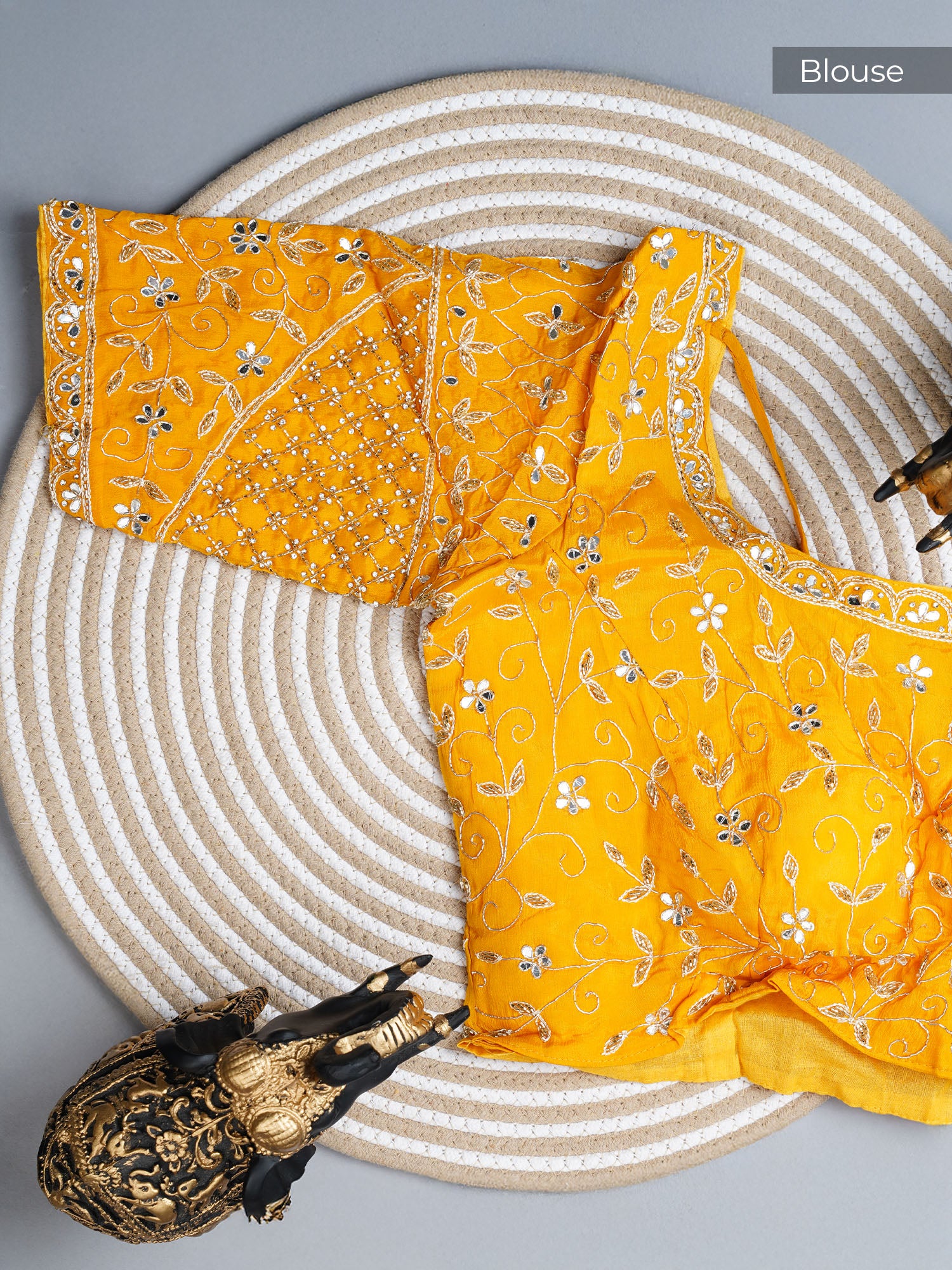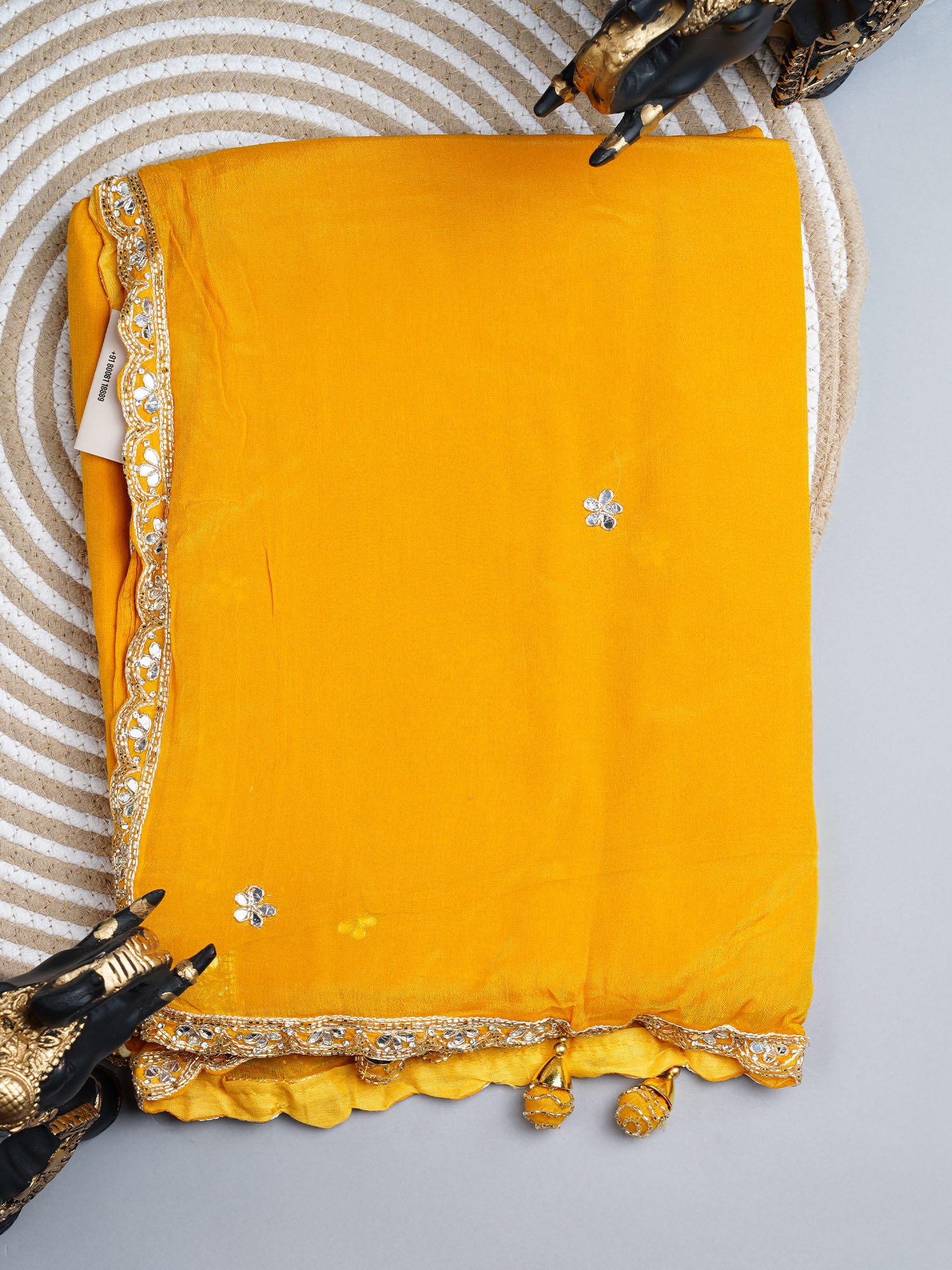 Italian Crape Mirror Work Booties With Kardhana Work in vibrant yellow—where traditional craftsmanship meets contemporary flair! These stunning booties feature...
