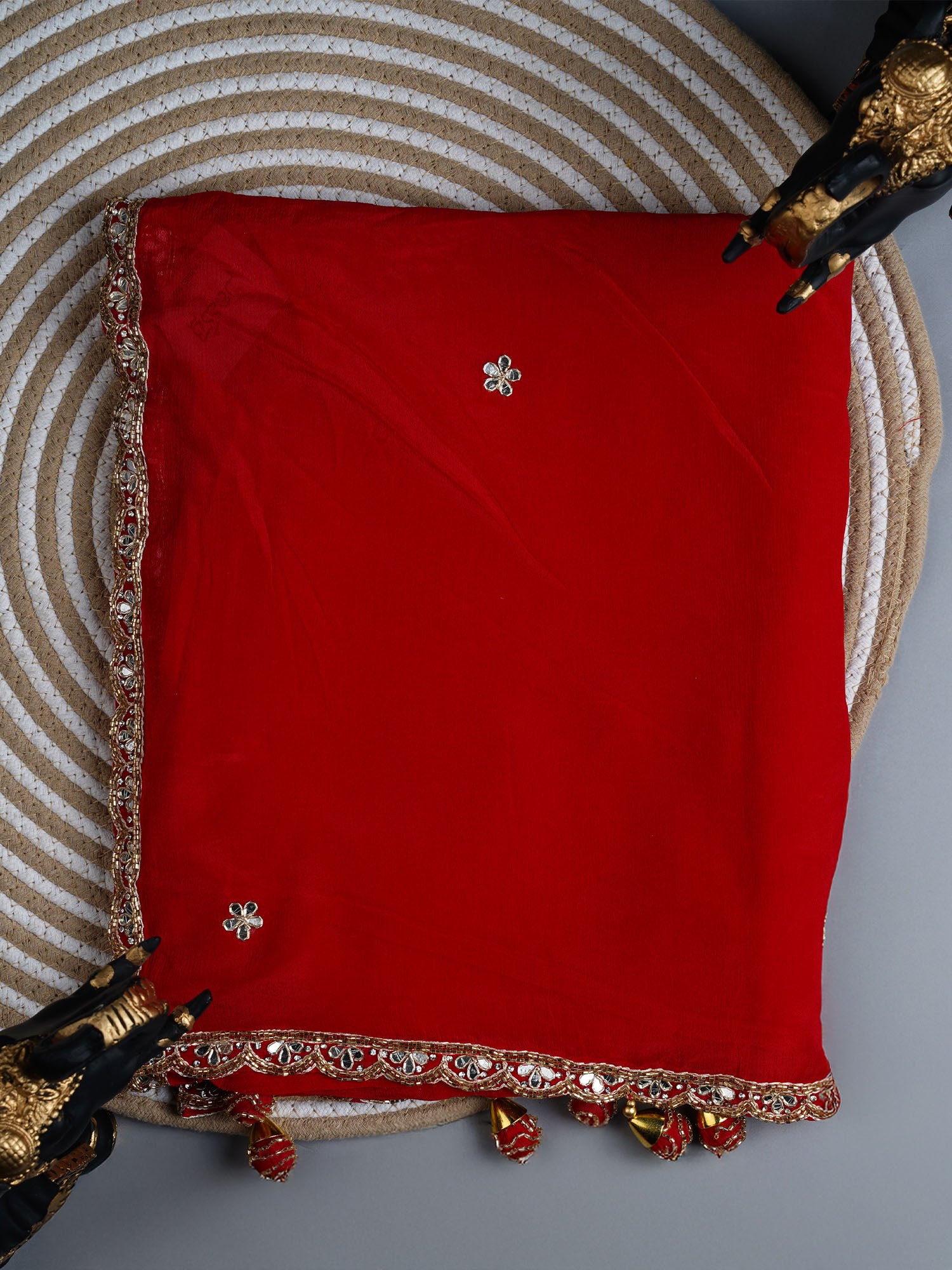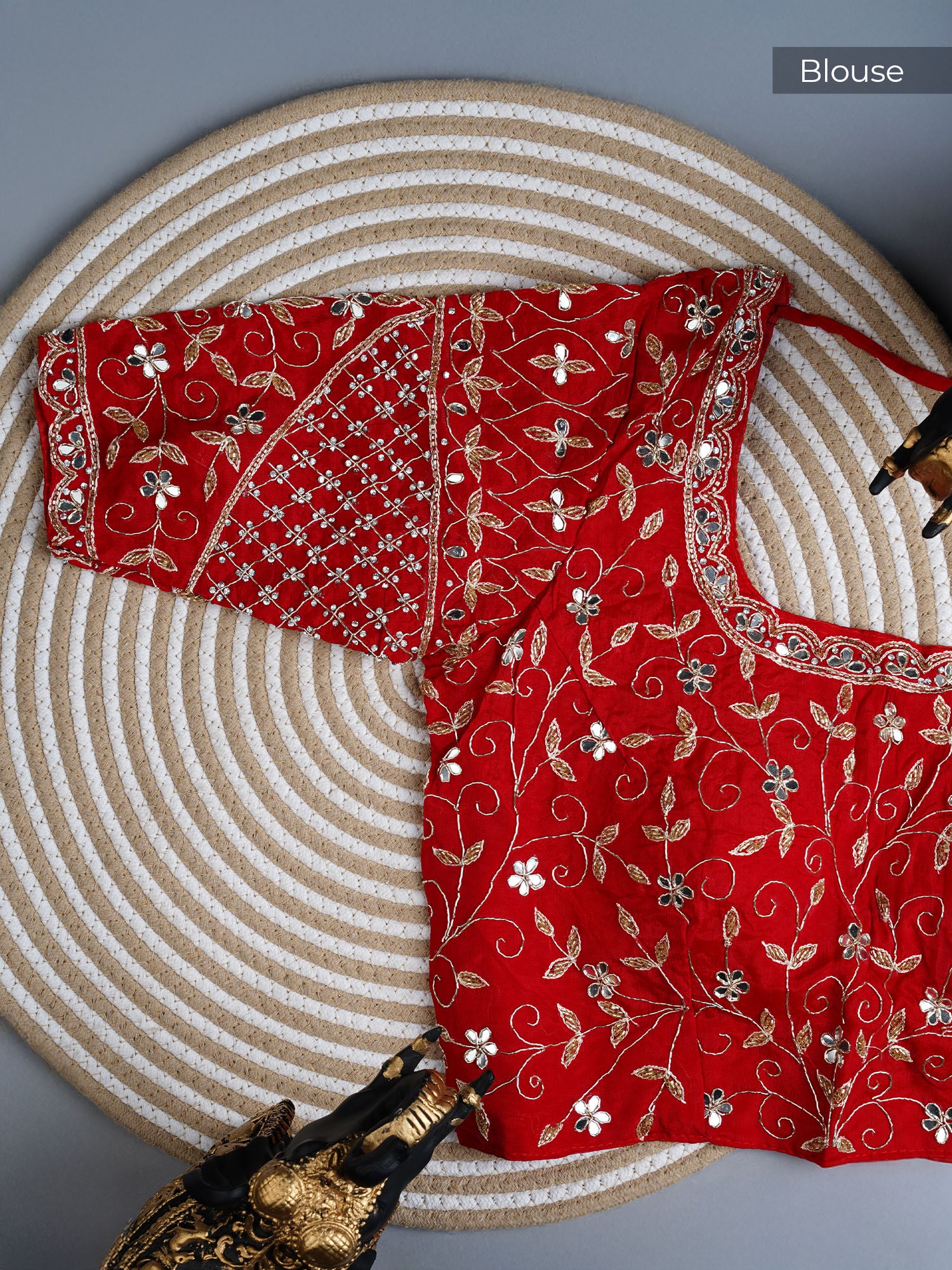 Italian Crape Mirror Work Botties With Kardhana Work - Red Elevate your ethnic wardrobe with these stunning red botties that blend timeless tradition with contemporary flair. Crafted from luxurious Italian crape fabric, these beauties feature intricate mirror work that catches the light beautifully, paired with delicate kardhana embroidery for added sophistication. Perfect for pairing with your favorite saree, these botties bring that perfect pop of color and sparkle to complete your festive or everyday look. The premium fabric ensures comfort while the detailed embellishments make a bold statement. A must-have accessory for the modern Indian woman who loves her roots!