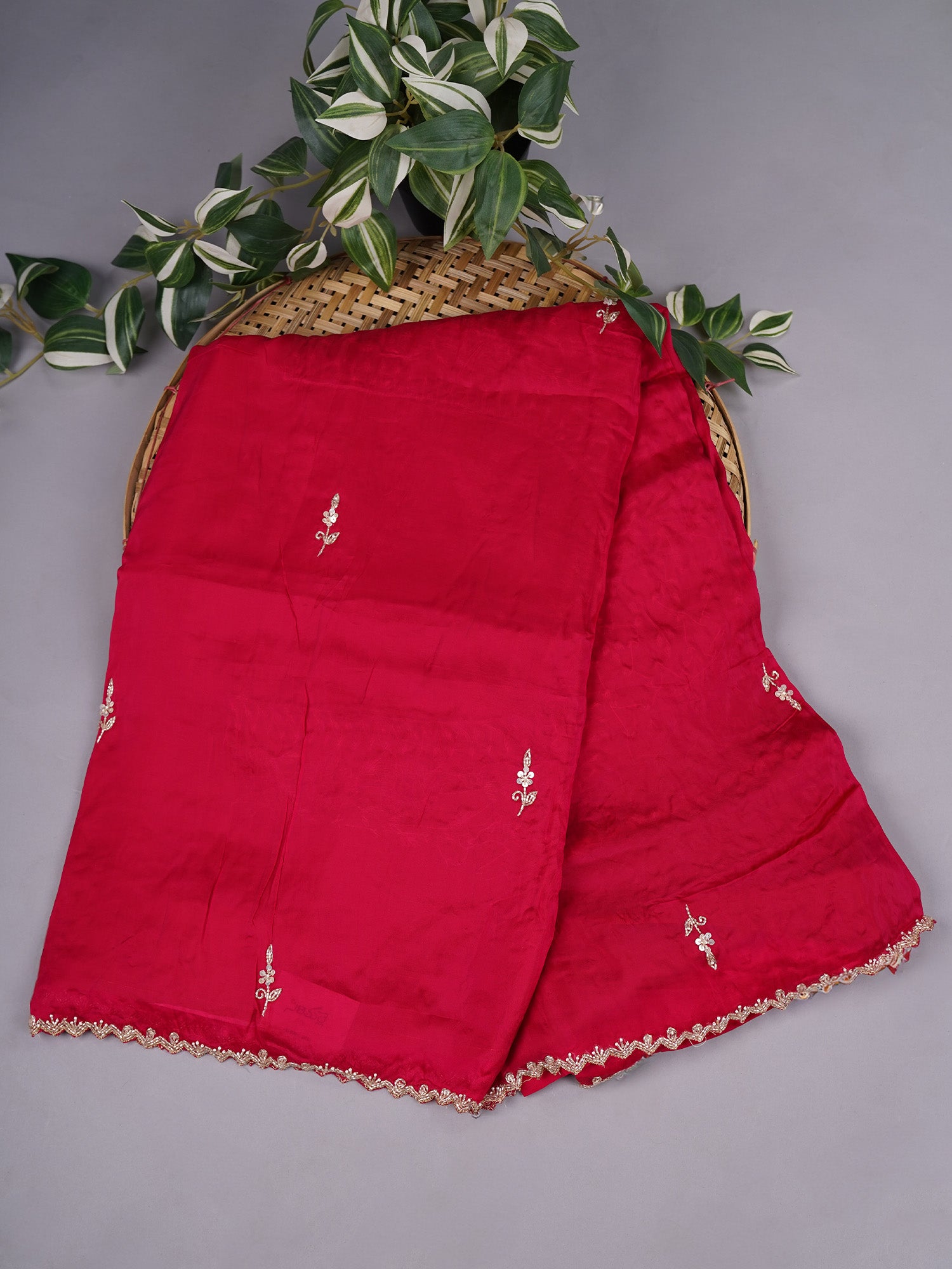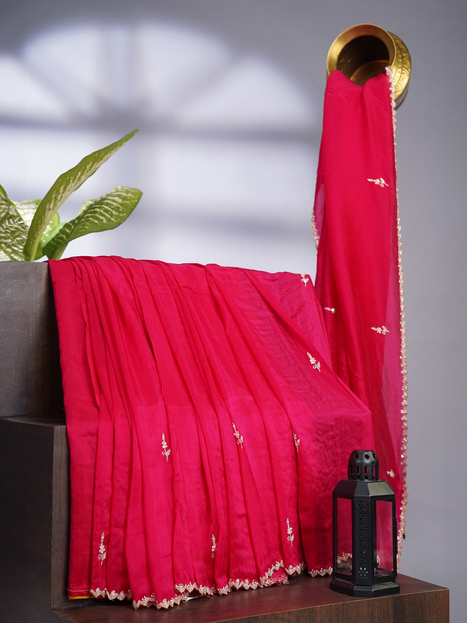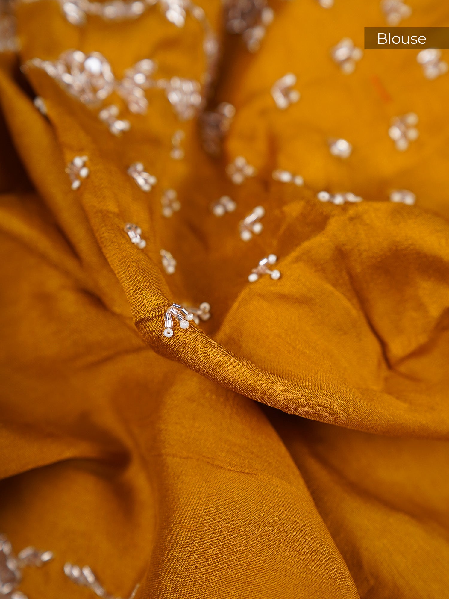 Crafted from premium Italian crepe, this saree features exquisite Kardana sequence and butti embellishments that add refined shimmer and texture....