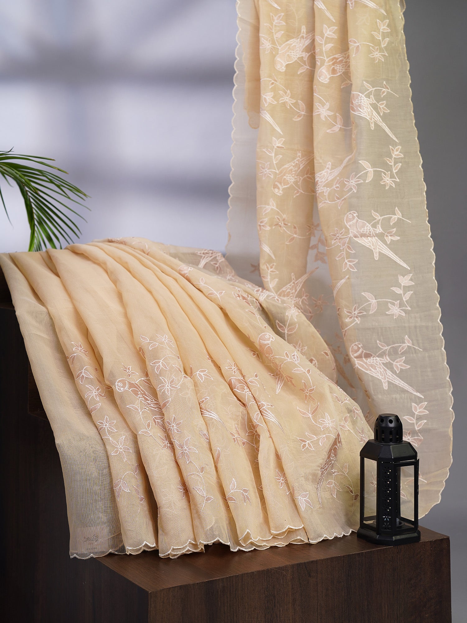 Crafted from premium Jute Lenin fabric, this piece showcases exquisite applique work that enhances its natural texture with refined artistry....
