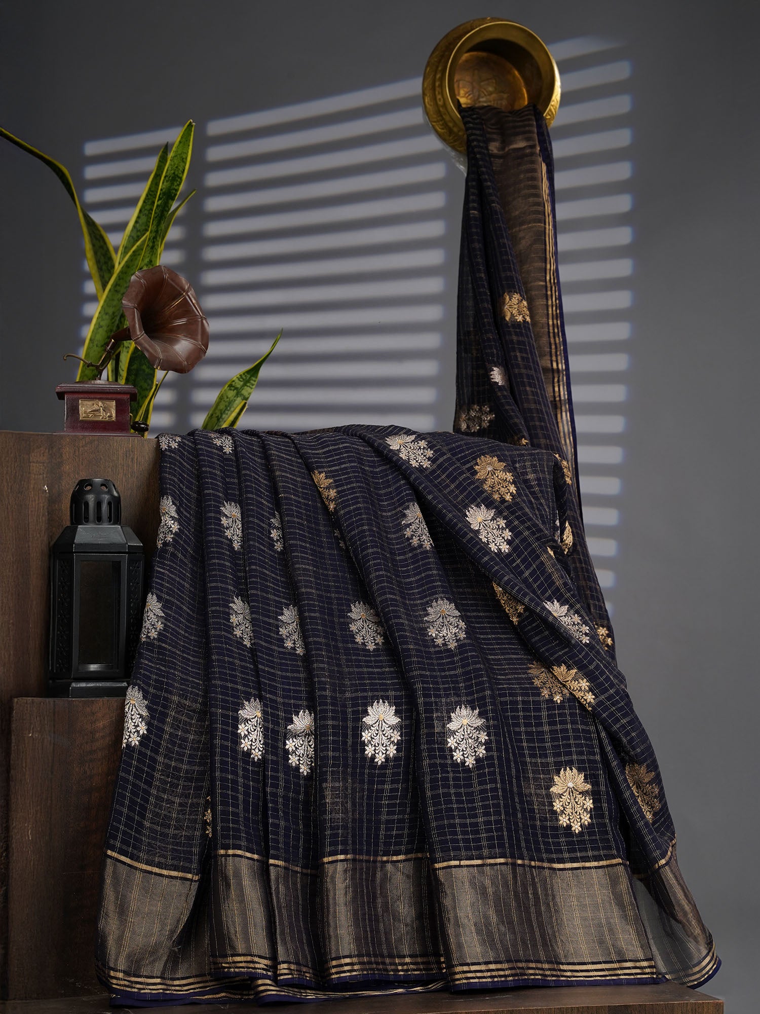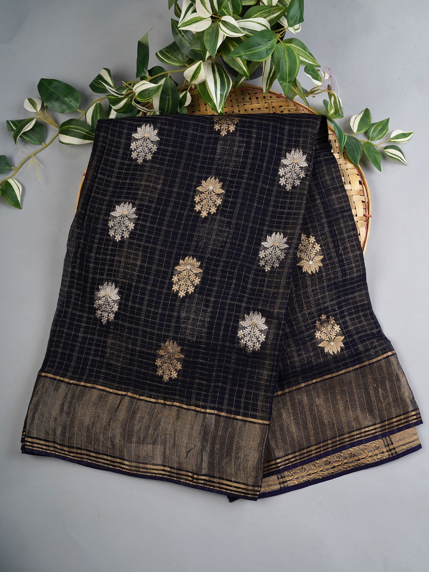 Kaddi Georgette Saree With Gold Butties And Kaddi Border - Black