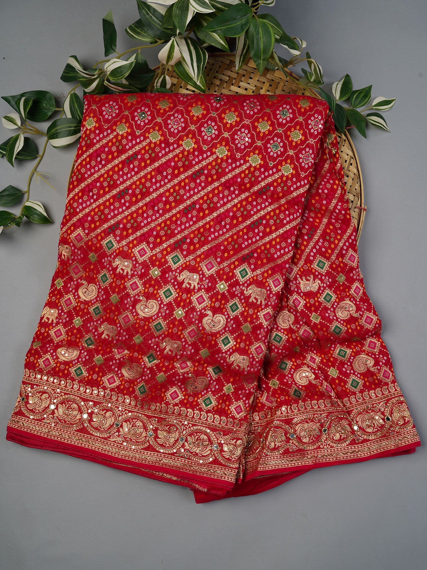 Kaddi Georgette With Banaras Border Kardhana Hand Work - Pink