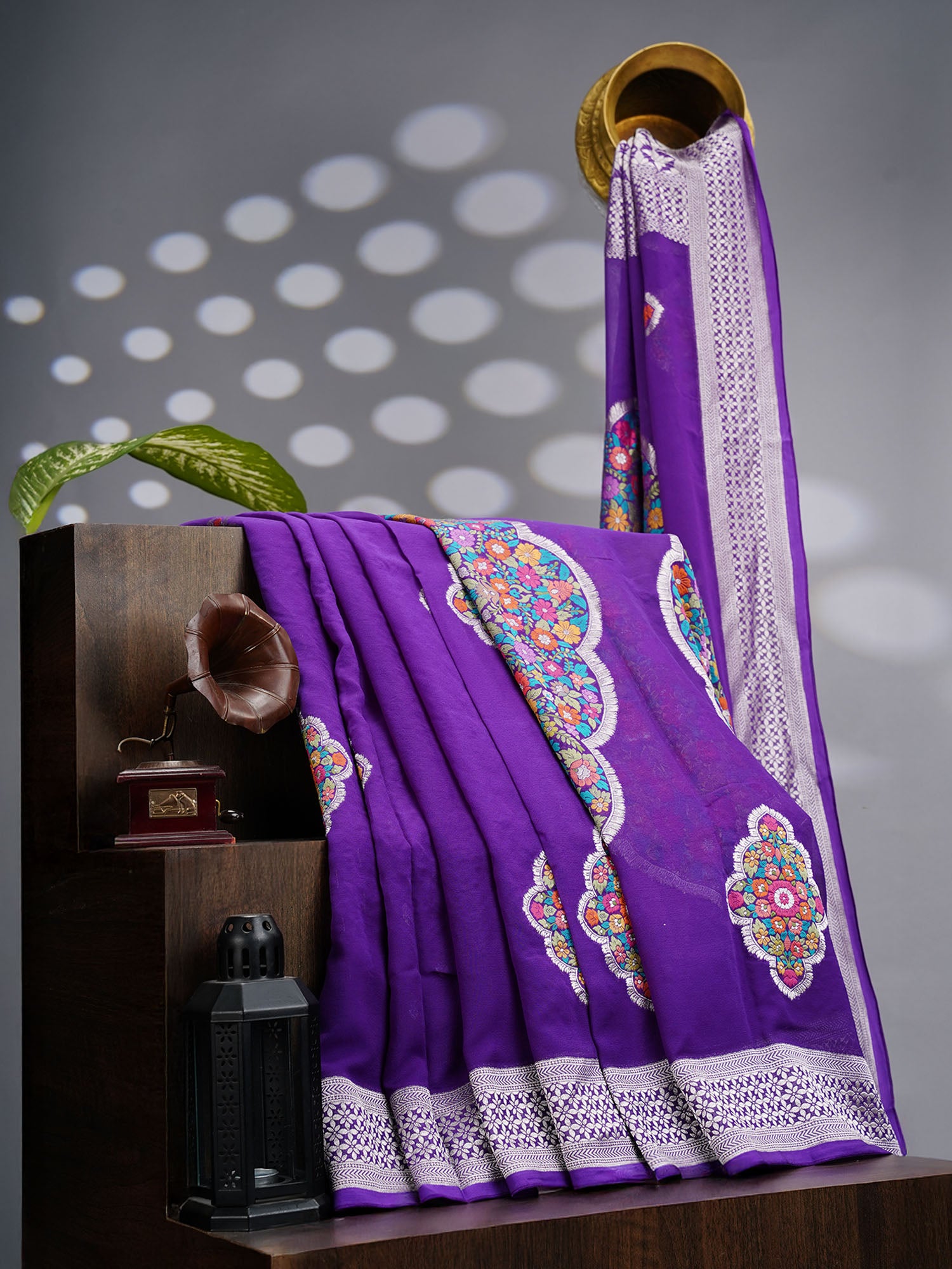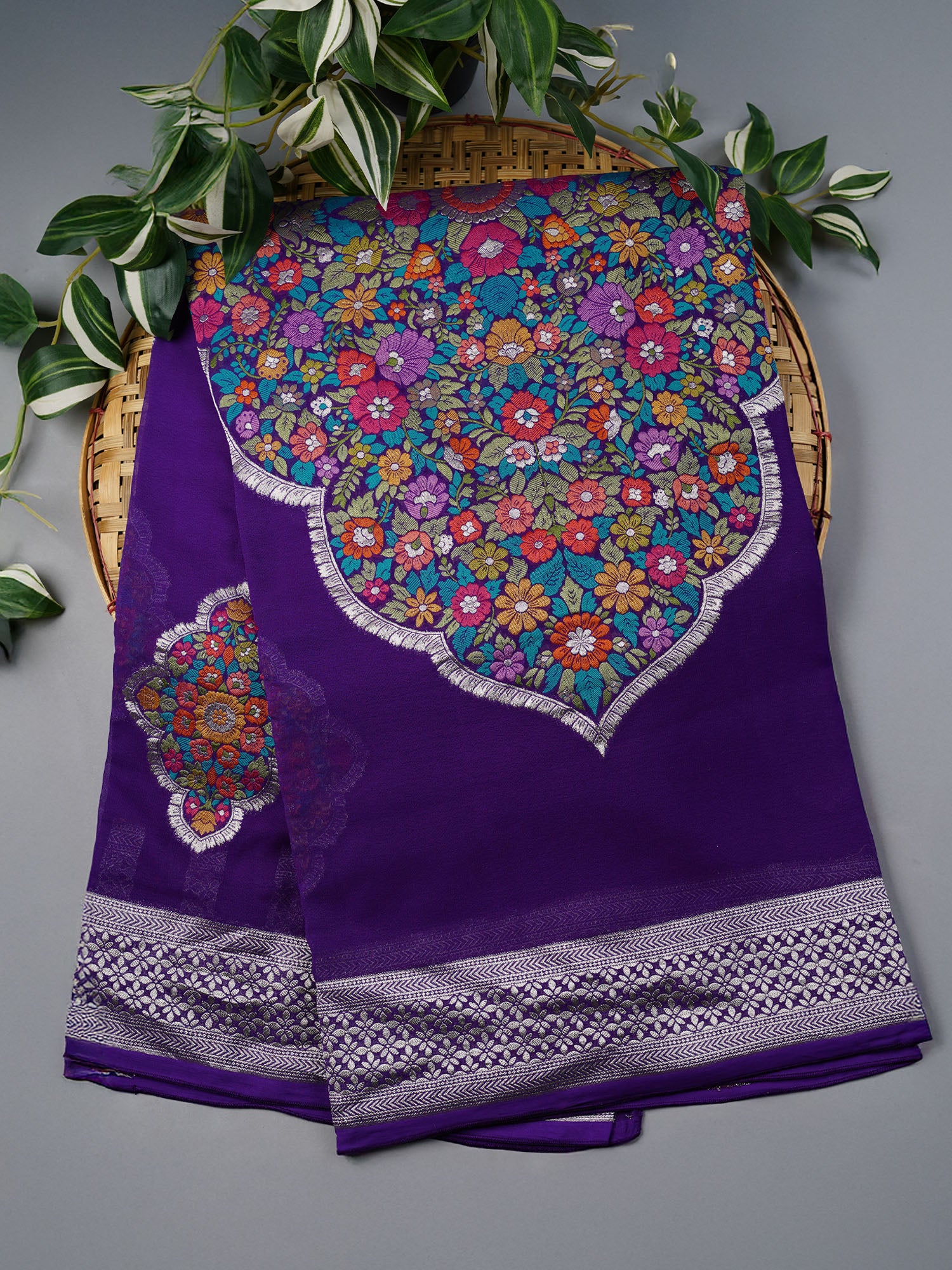 Drape yourself in elegance with this stunning Kadi Georgette saree, where delicate meenakari butties dance across violet silk like tiny jewels catching the light. The lightweight georgette fabric flows effortlessly, perfect for all-day comfort without compromising on grace. Each intricate buttie is a testament to traditional craftsmanship, adding that perfect pop of color and detail to elevate your ethnic wardrobe. Whether it's a festive celebration or a special occasion, this violet beauty promises to turn heads and make you feel absolutely radiant.