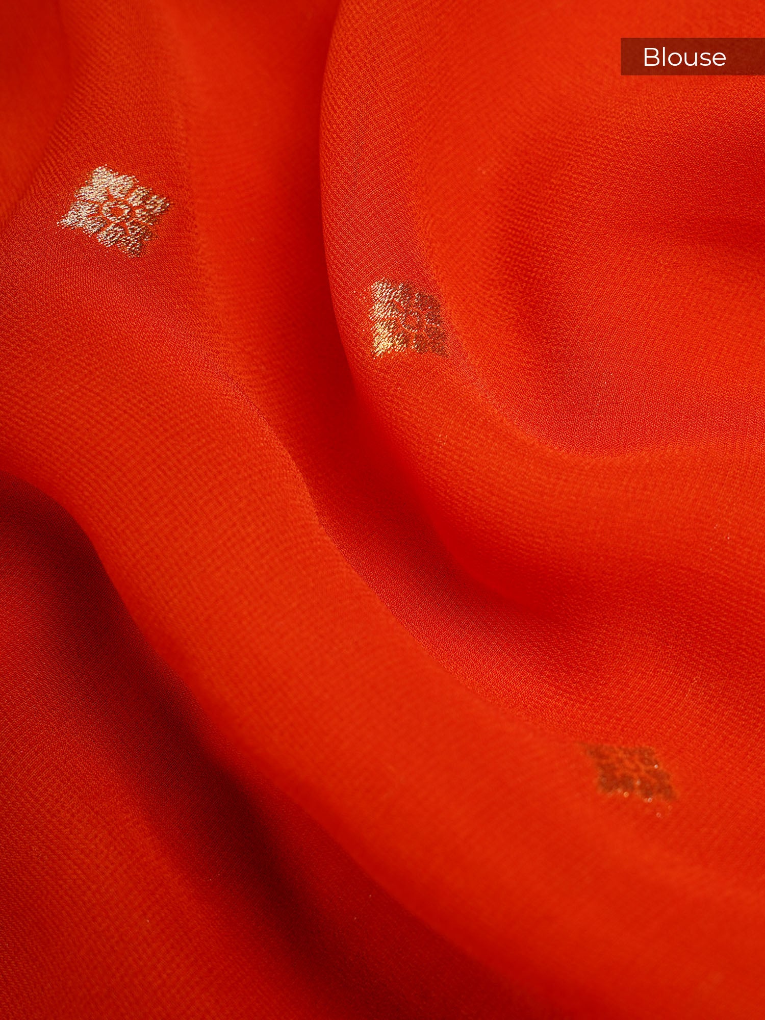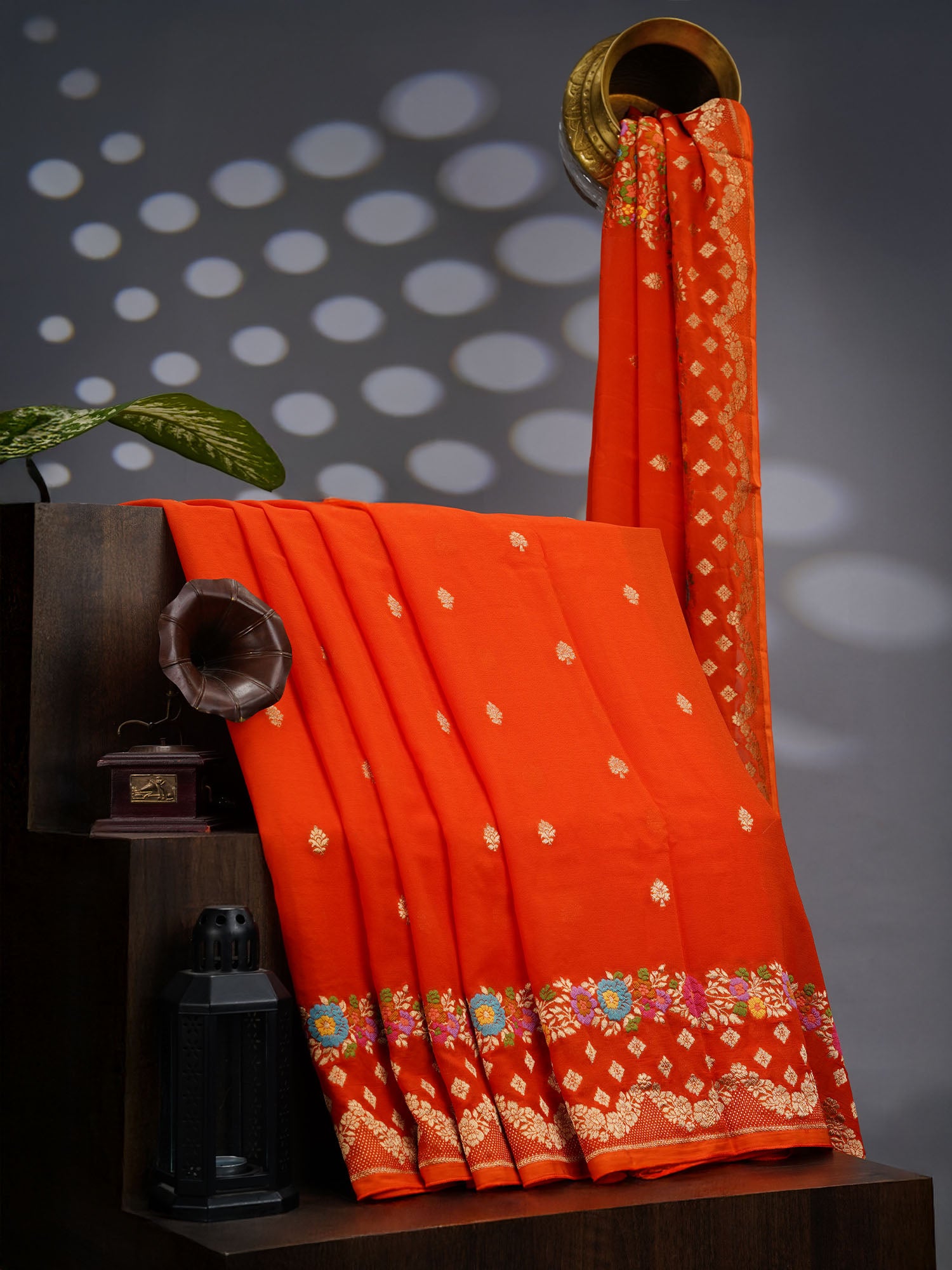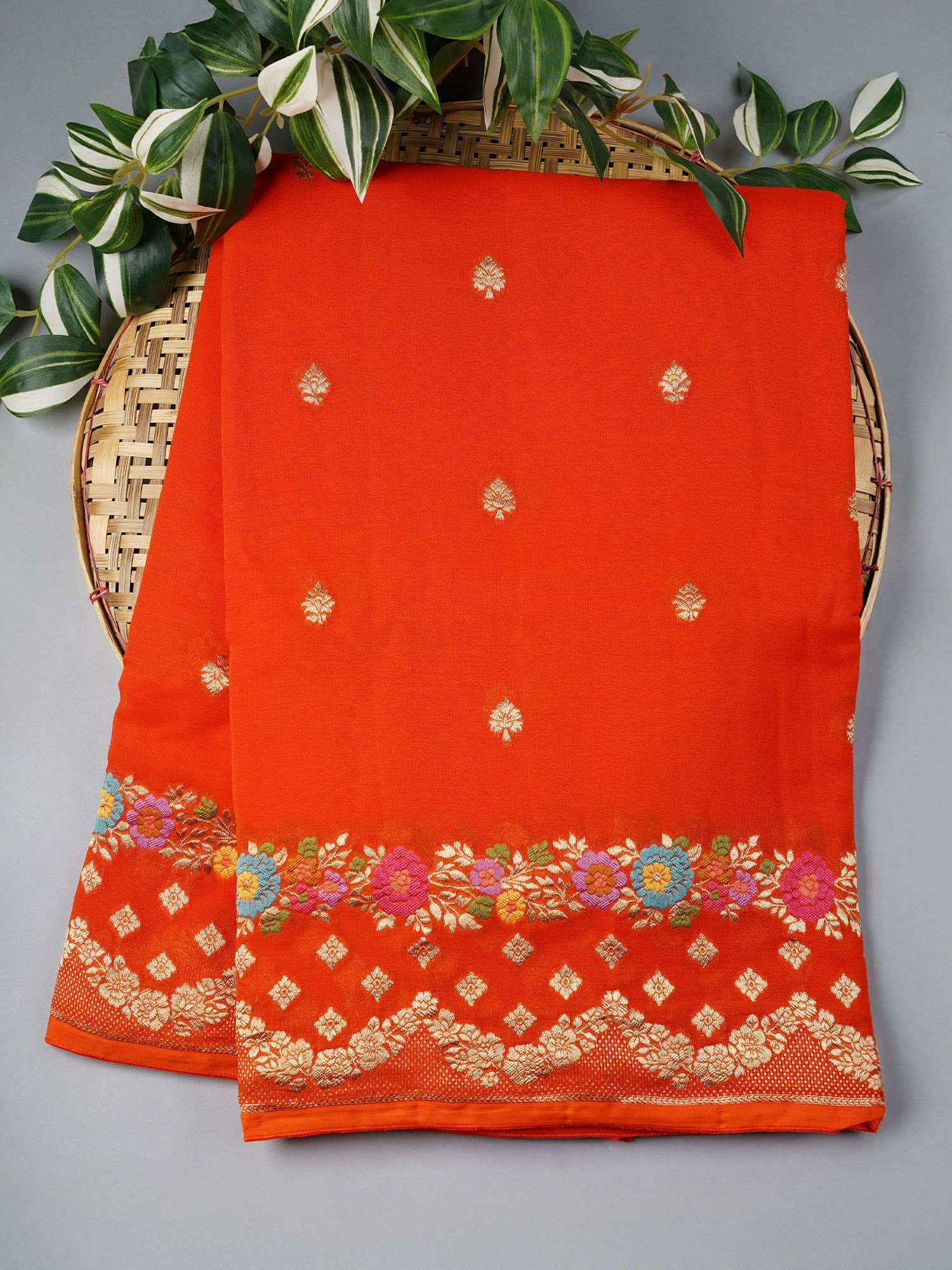 Kadi Georgette With Golden Butties Meenakari Border - Orange