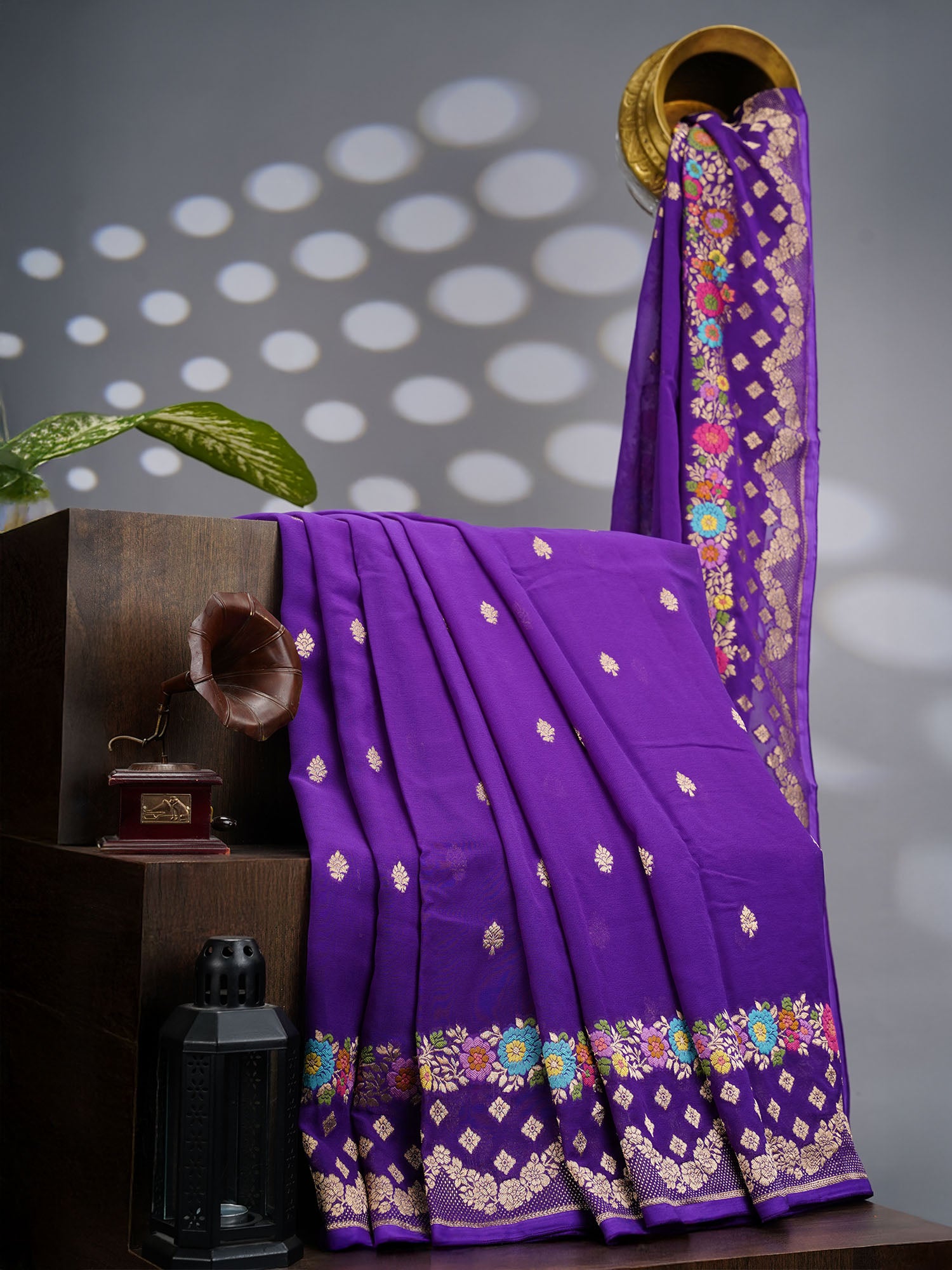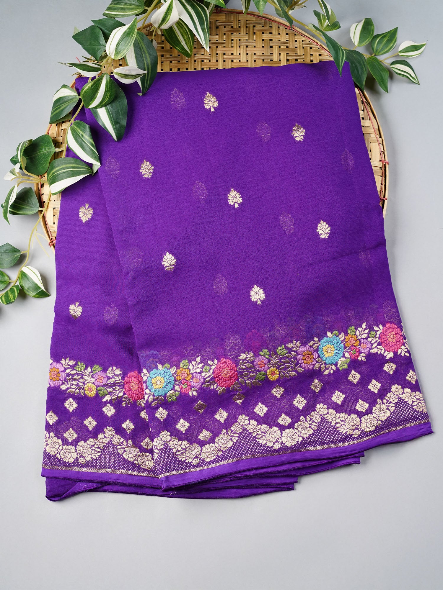 Kadi Georgette With Golden Butties Meenakari Border - Violet