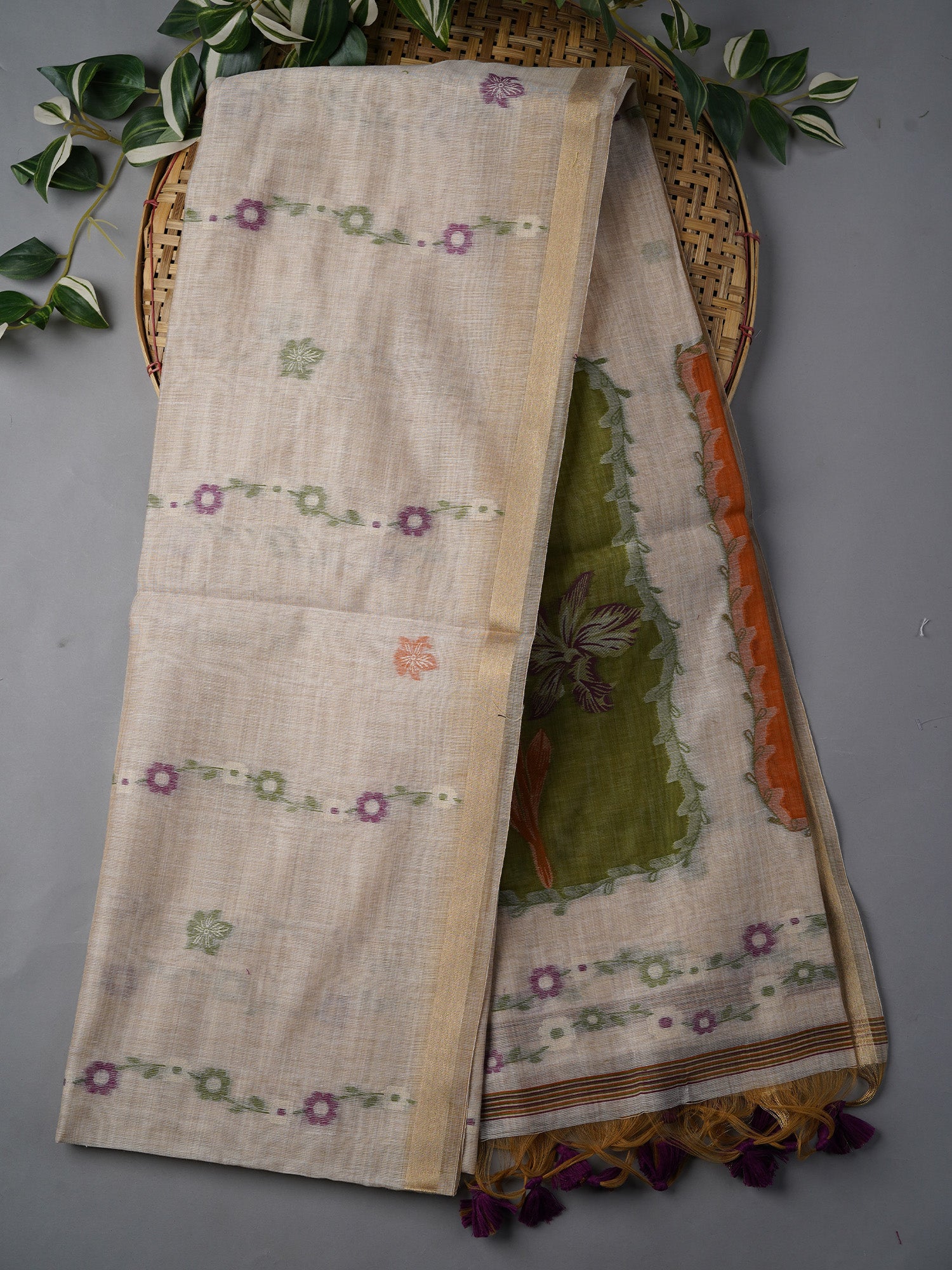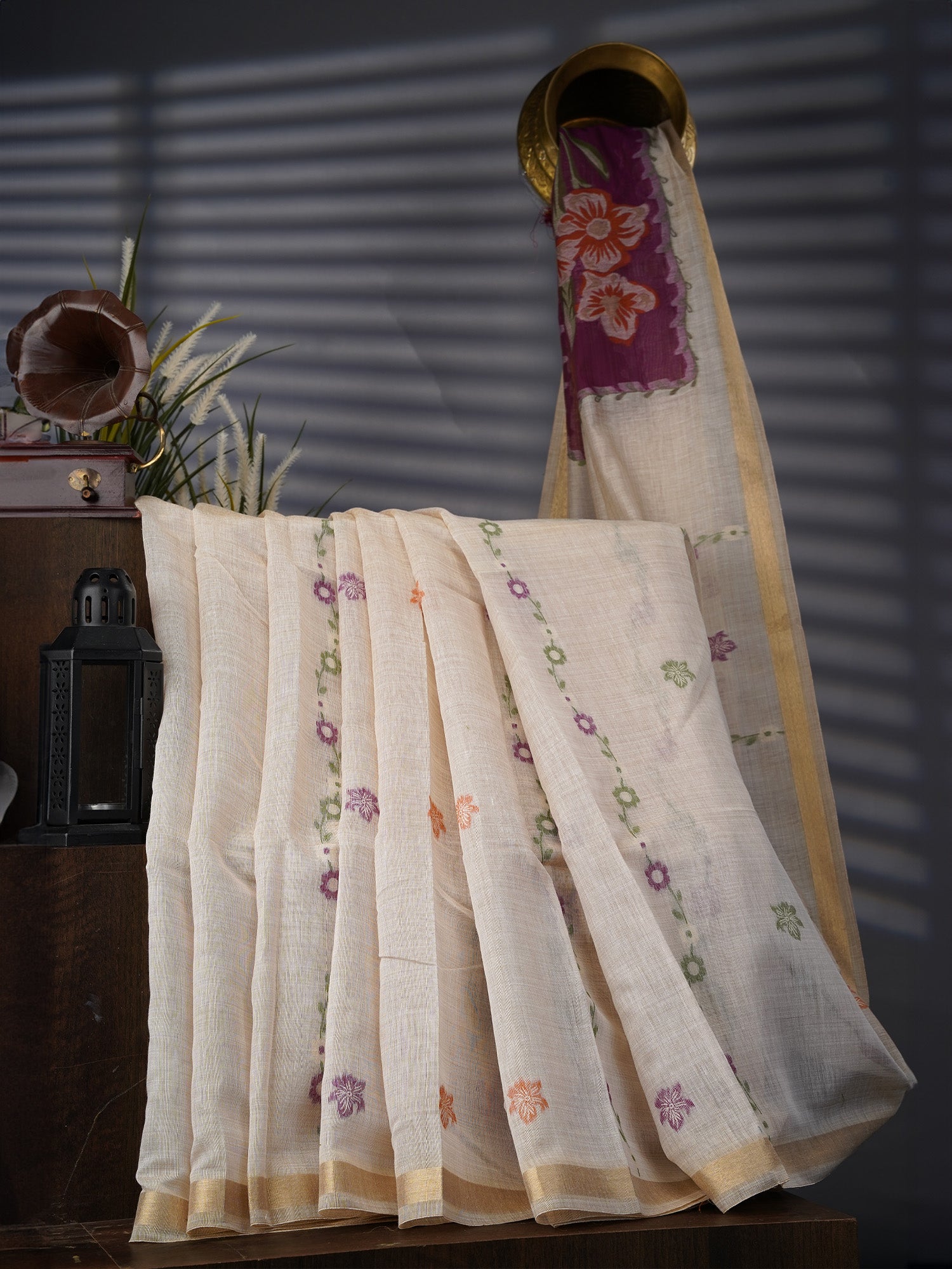 Kanchi Cotton Jamdani Weaving - Cream & Violet