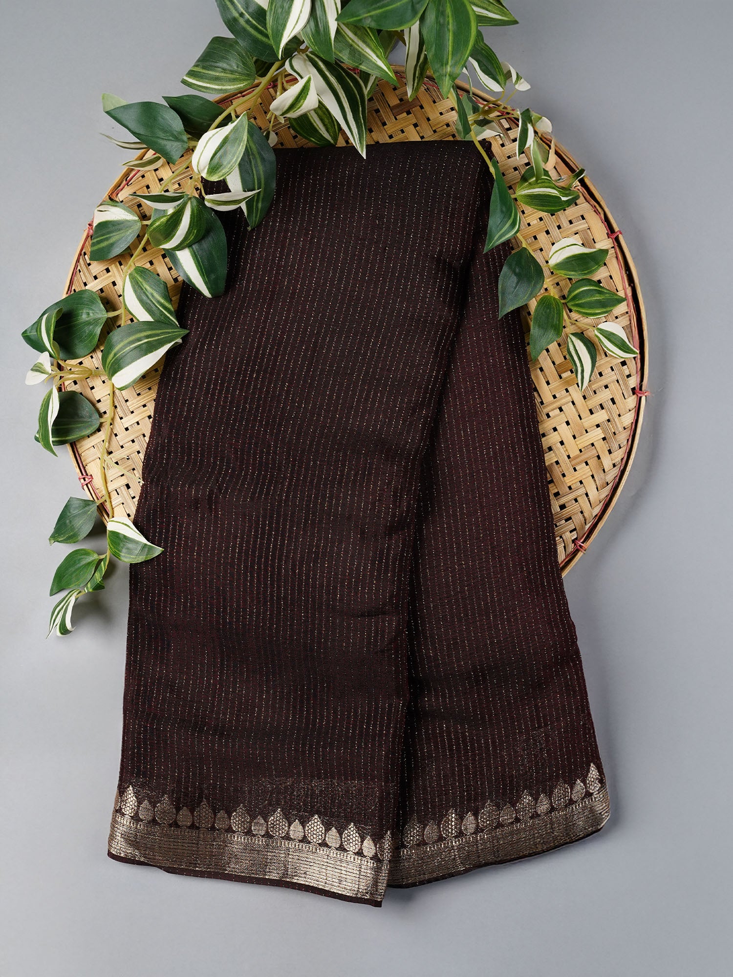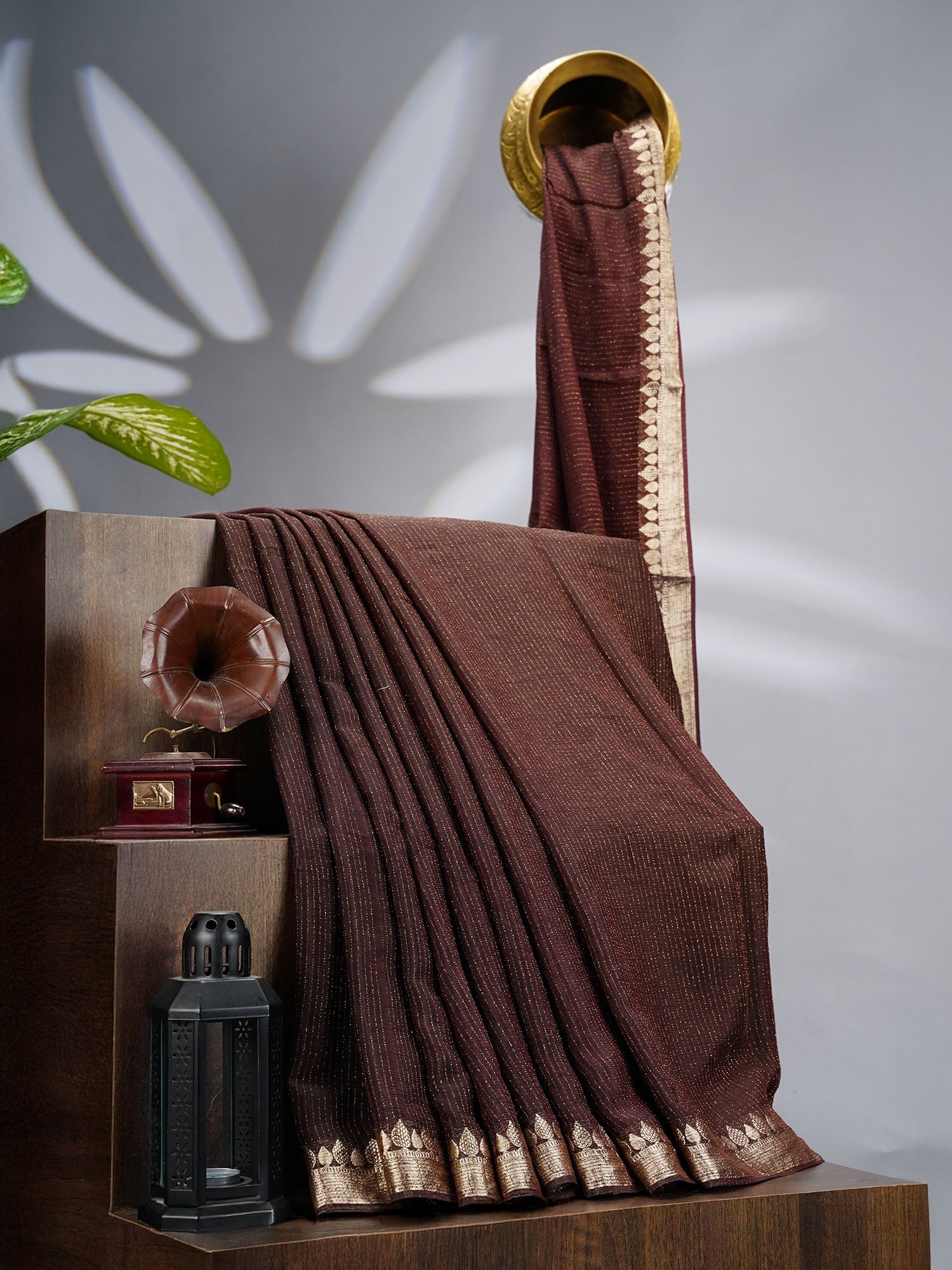 Korean Crepe Saree with Golden Zari Border- Coffee Brown