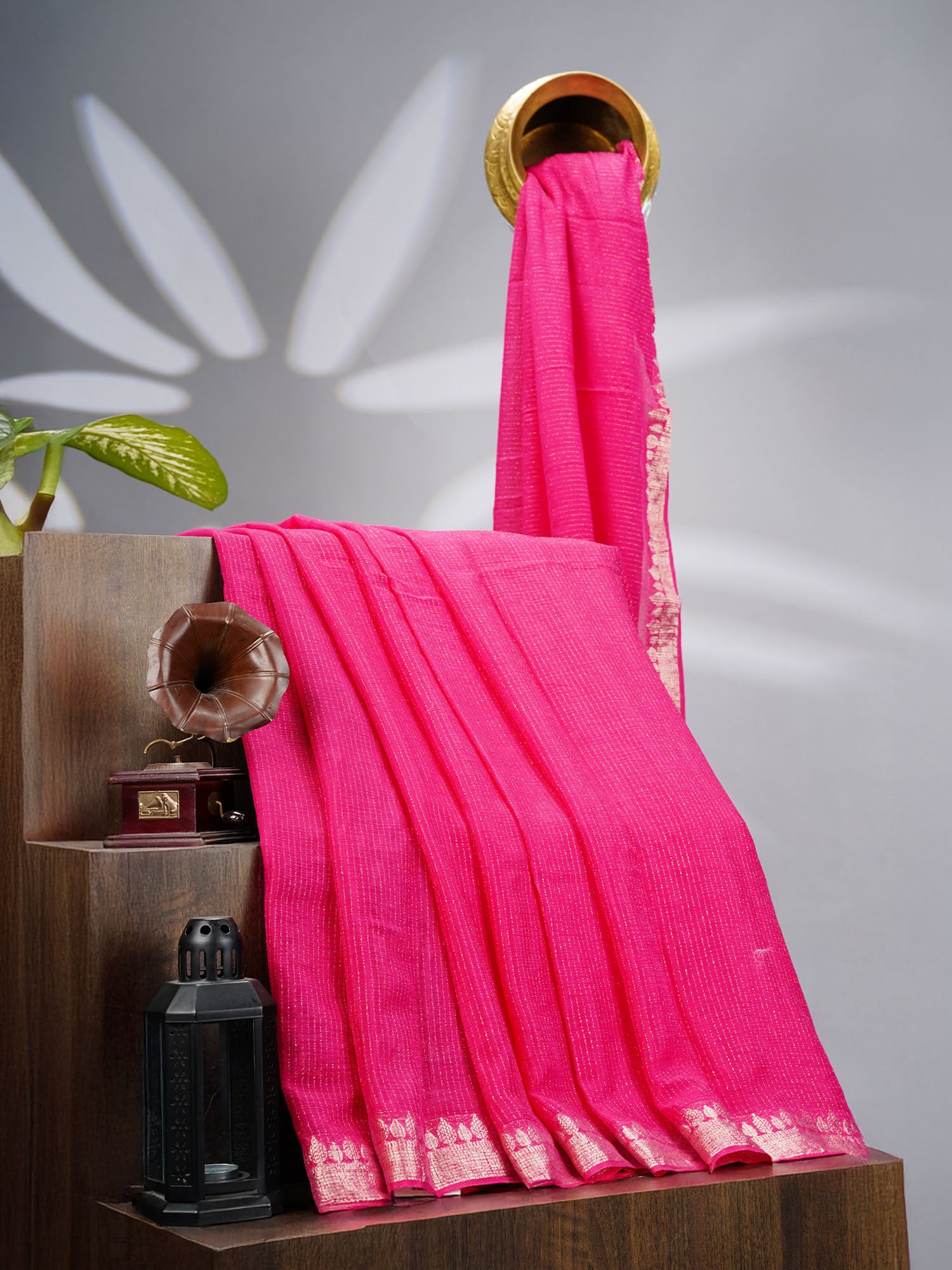 Drape yourself in pure elegance with this stunning Korean Crepe Saree featuring a mesmerizing magenta hue. The luxurious crepe fabric offers a graceful drape that flatters every silhouette, while the intricate golden zari border adds a touch of regal glamour. Perfect for weddings, festivals, or those moments when you want to turn heads and steal the spotlight. Lightweight yet sophisticated, this saree effortlessly transitions from traditional celebrations to modern occasions. Embrace timeless beauty with a contemporary twist!