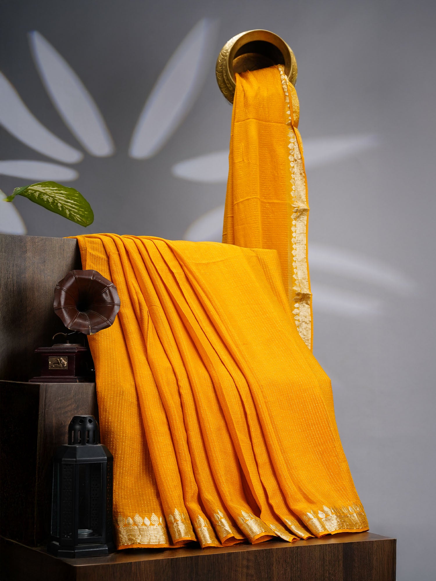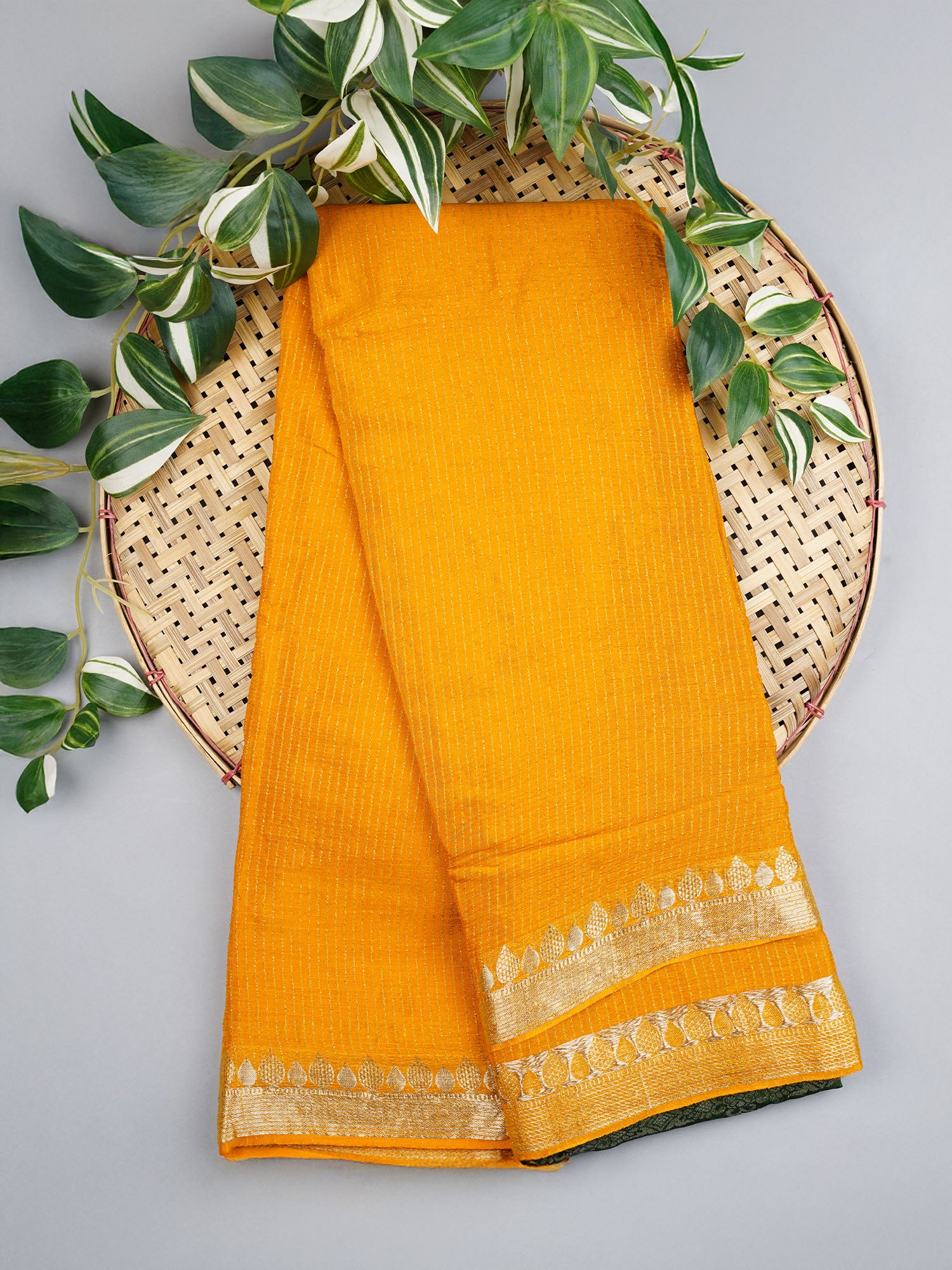 Korean Crepe Saree with Golden Zari Border- Mustard