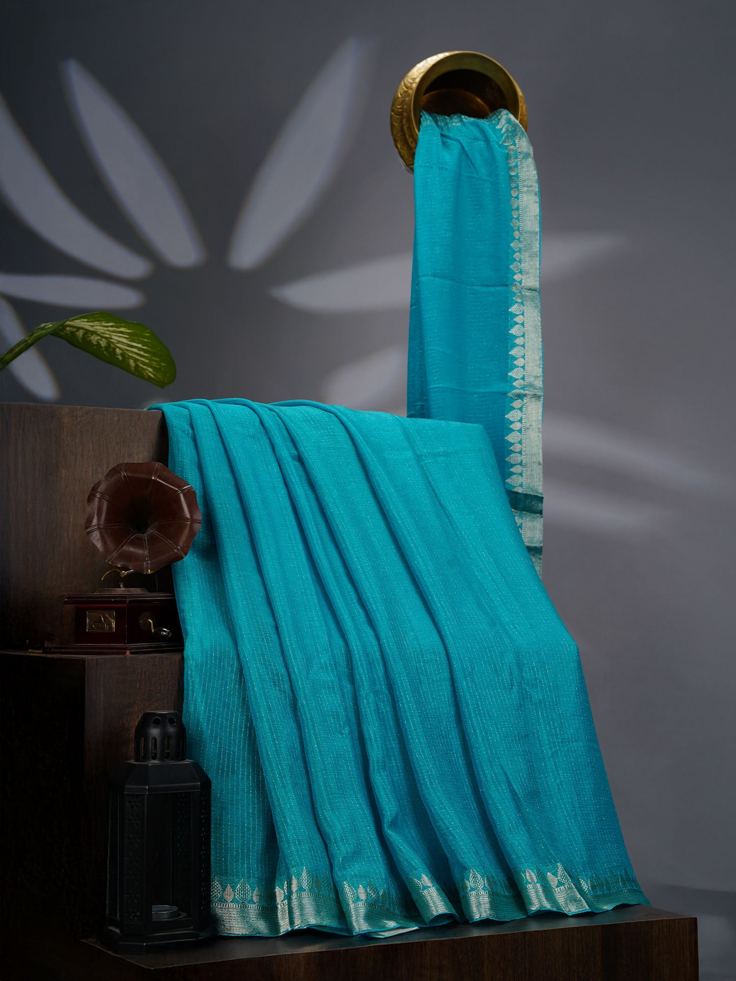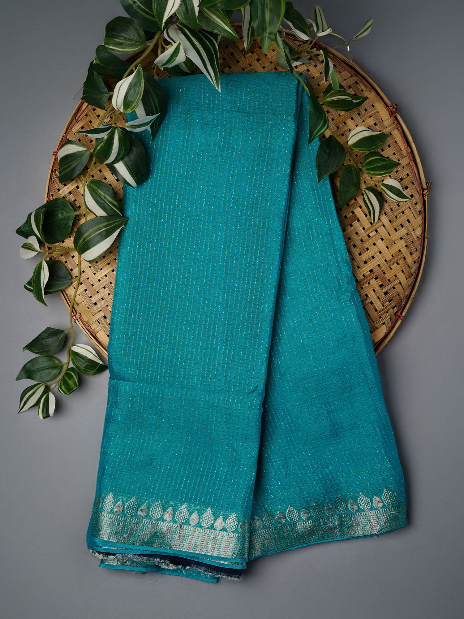 Korean Crepe Saree with Golden Zari Border- Tiffany Blue