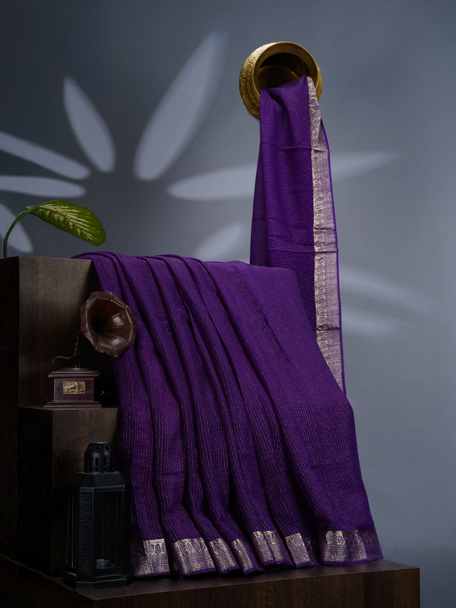 Drape yourself in elegance with this stunning Korean Crepe Saree featuring a mesmerizing violet hue. The luxuriously soft crepe fabric...