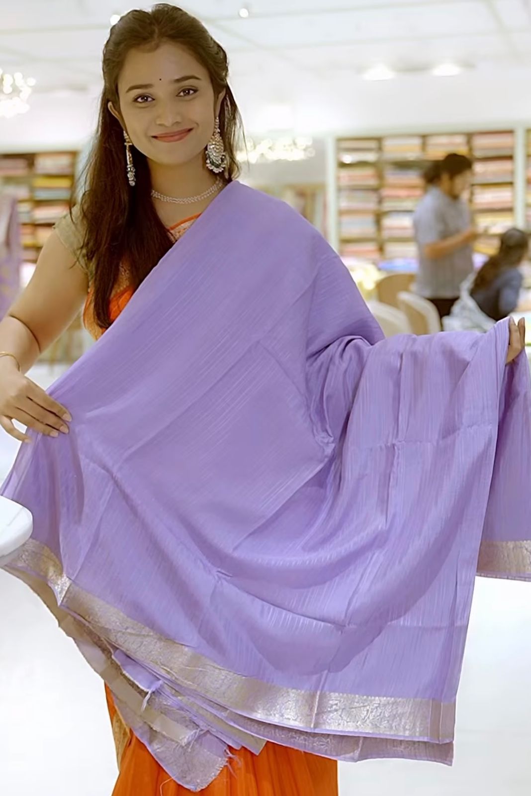 Koren Crepe Saree With All Over Checks Design and Flower Design Border - Lavender