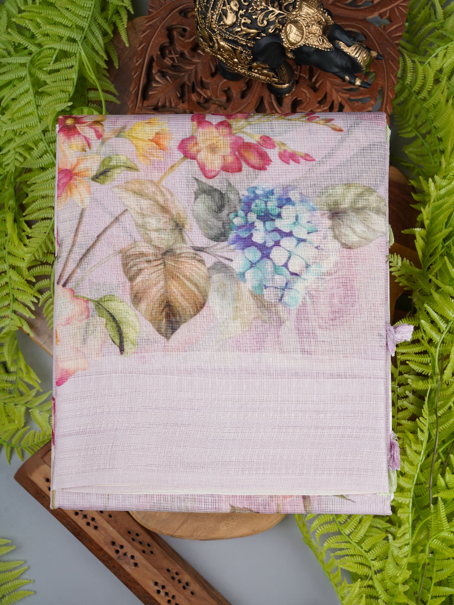 Embrace effortless elegance with this charming Kota cotton saree in light pink, adorned with delicate floral prints that dance across the fabric. Kota cotton's signature lightweight weave makes it perfect for warm weather, offering breathability without compromising on style. The intricate floral design adds a touch of whimsy and femininity, while the soft pink hue flatters all skin tones. Ideal for casual gatherings, festive occasions, or everyday wear, this saree brings together comfort and grace in one stunning piece. Drape it, twirl it, and let the florals do the talking!