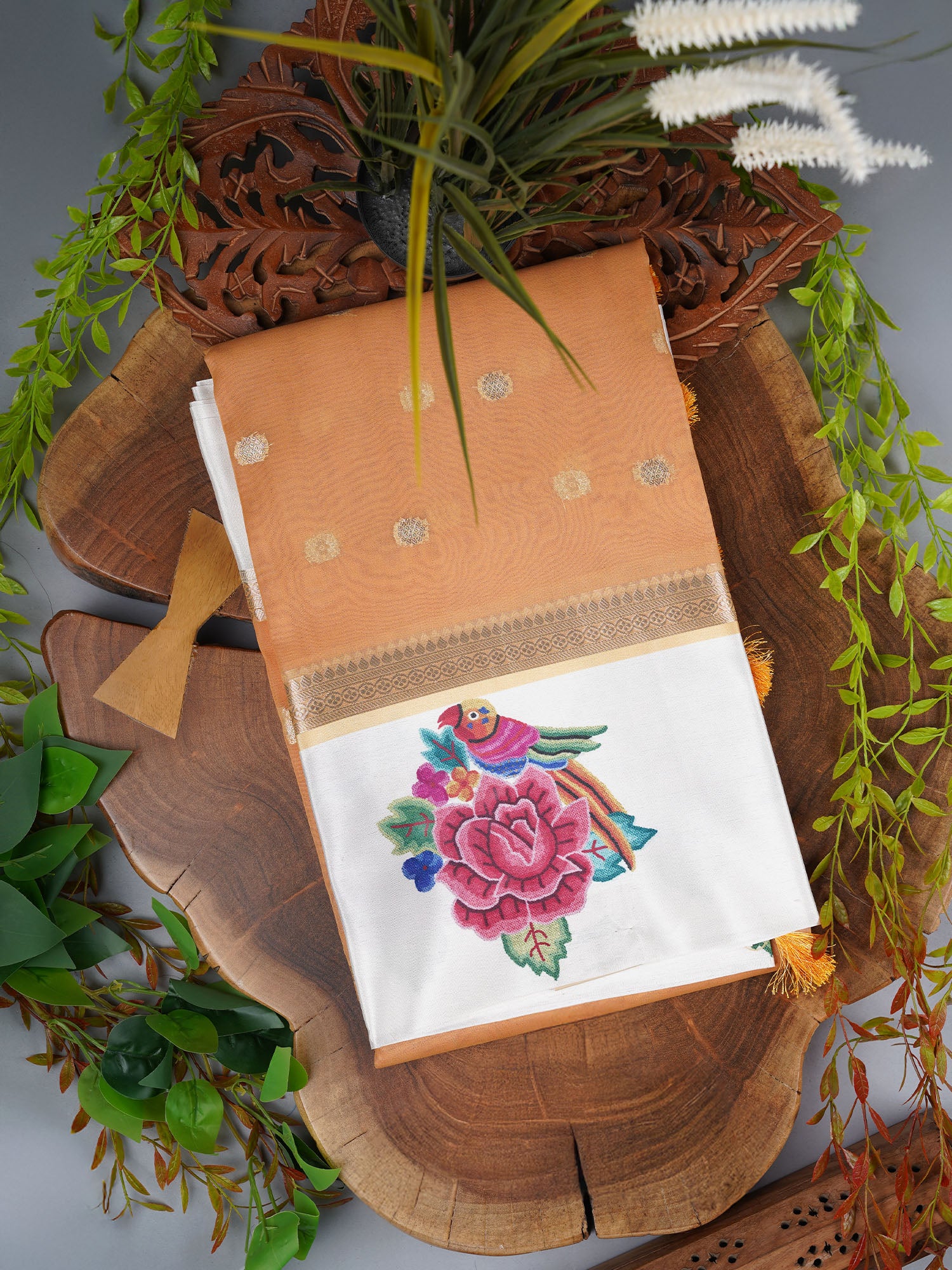 Drape yourself in sunshine with this stunning Kota Organza saree that's equal parts elegant and fun. Golden butties dance across...