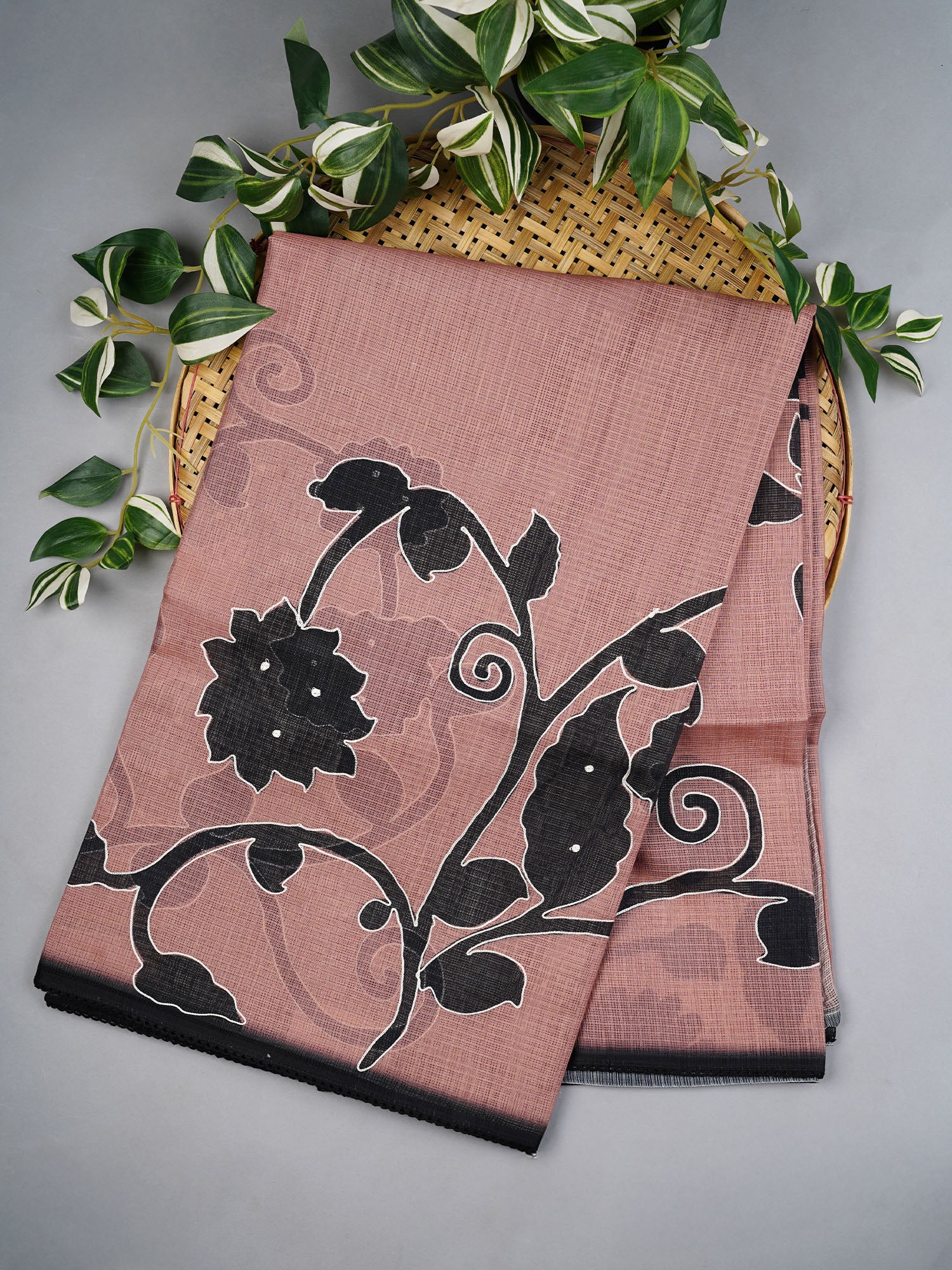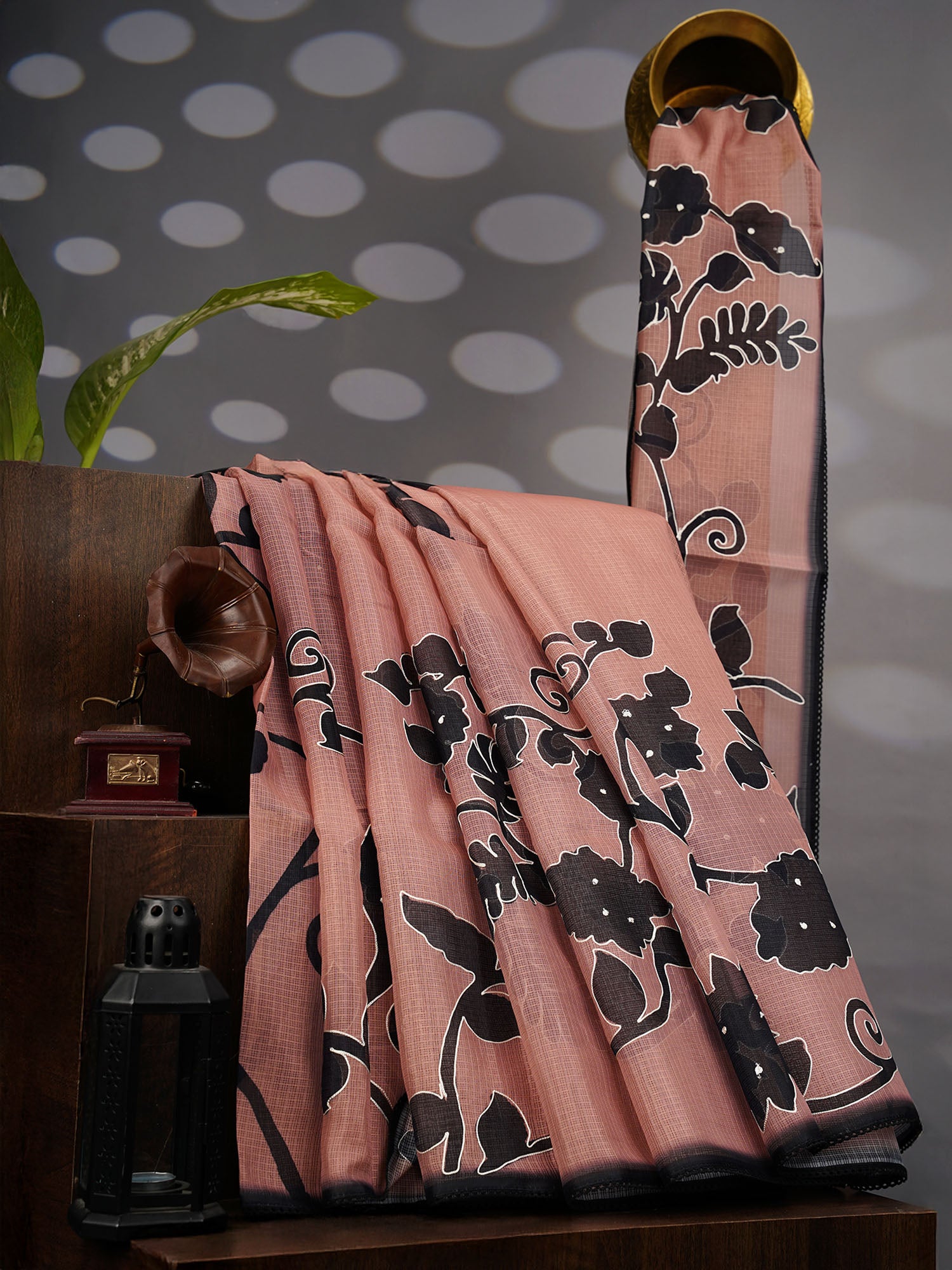 Elevate your ethnic wardrobe with this stunning Kota silk saree that's pure magic! Featuring delicate floral prints paired with intricate ari embroidery work, this beauty is a showstopper. The graceful lace border adds that extra touch of elegance, while the rich brown hue complements all skin tones beautifully. Perfect for festivals, celebrations, or whenever you want to turn heads. Lightweight and breathable Kota silk keeps you comfortable all day long, making this saree your new go-to for effortless sophistication.