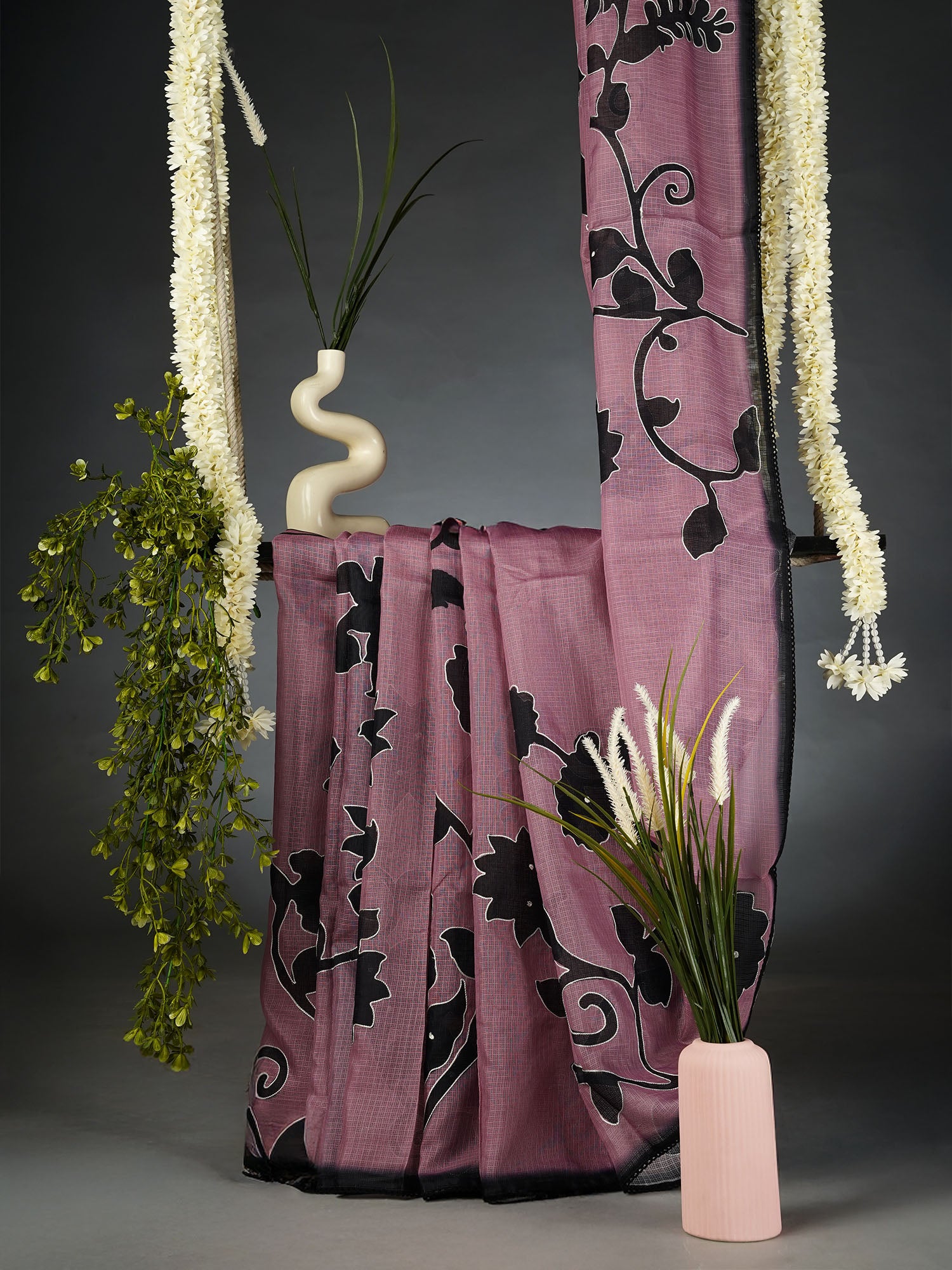 Discover the perfect blend of tradition and contemporary charm with this stunning Kota Silk saree in soft onion pink. Delicate...