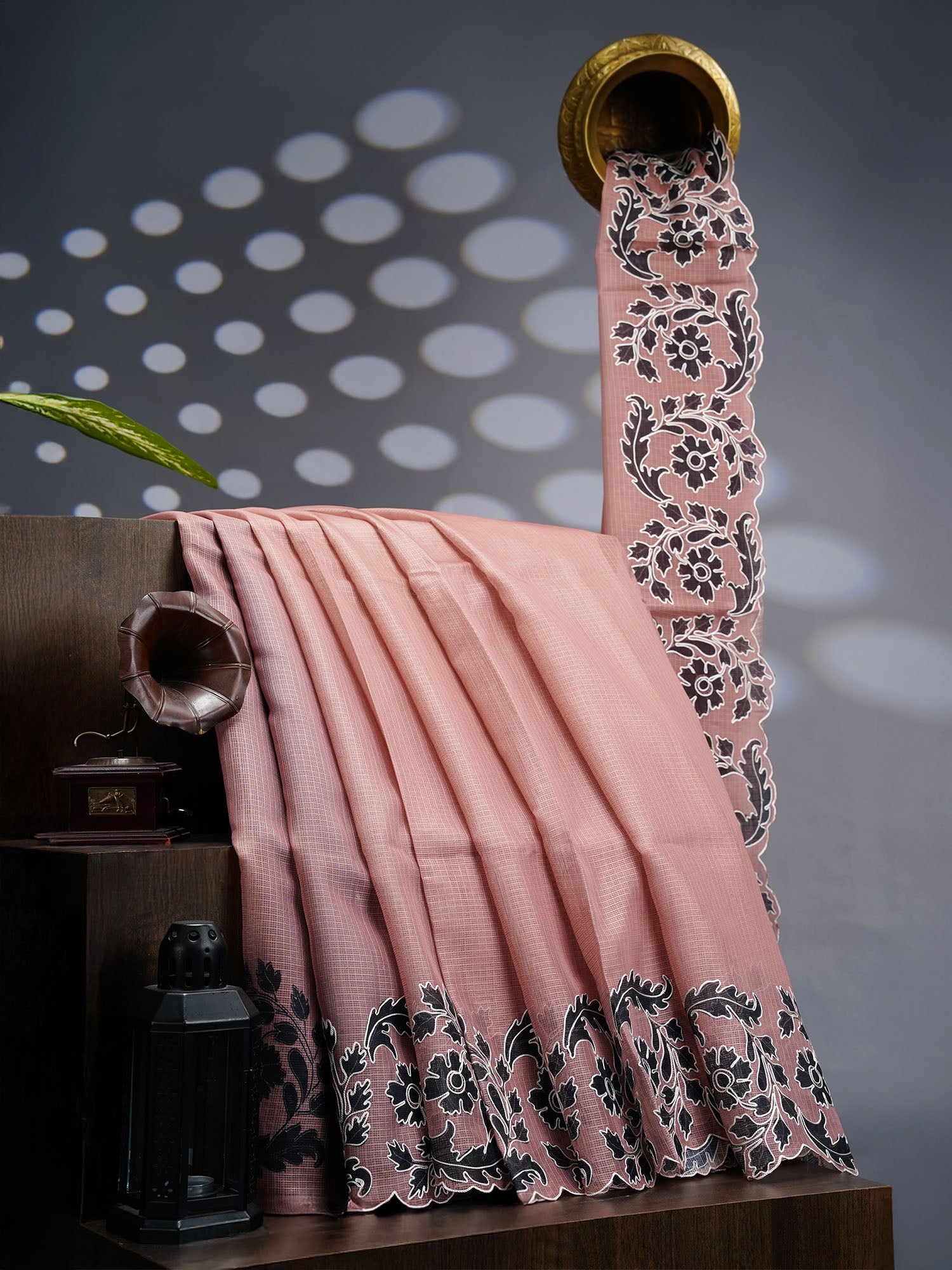 Elevate your ethnic wardrobe with this stunning Kota silk saree that's pure magic! Featuring delicate floral prints paired with intricate ari work along the scallop border, this light brown beauty strikes the perfect balance between traditional charm and contemporary elegance. The lightweight Kota silk fabric drapes beautifully, making it ideal for festivals, celebrations, or those days when you want to feel effortlessly graceful. Whether you're attending a wedding or a casual gathering, this saree promises comfort without compromising on style. A timeless piece that deserves a spot in every saree lover's collection!