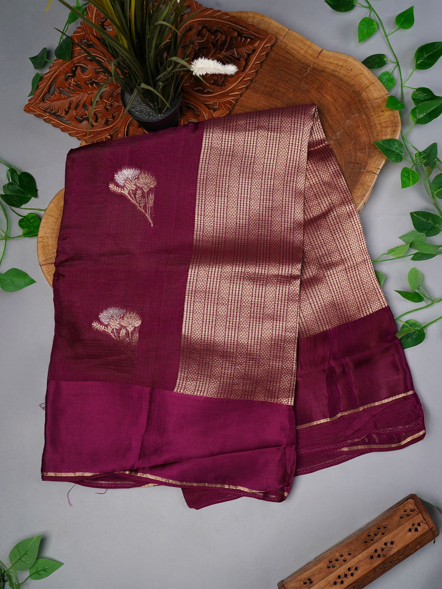 Kota Silk Saree with Golden Butties and Satin Border- Purple